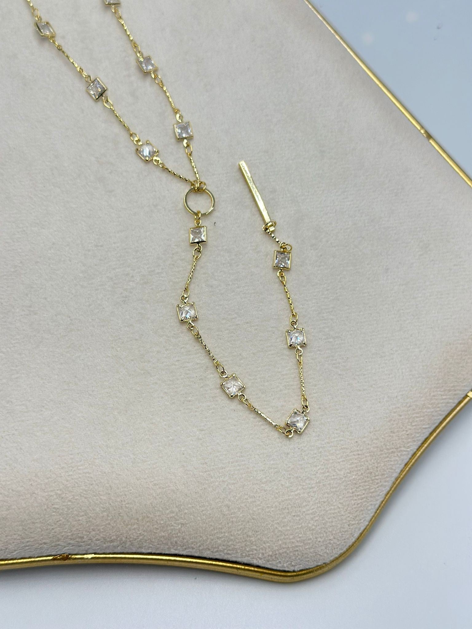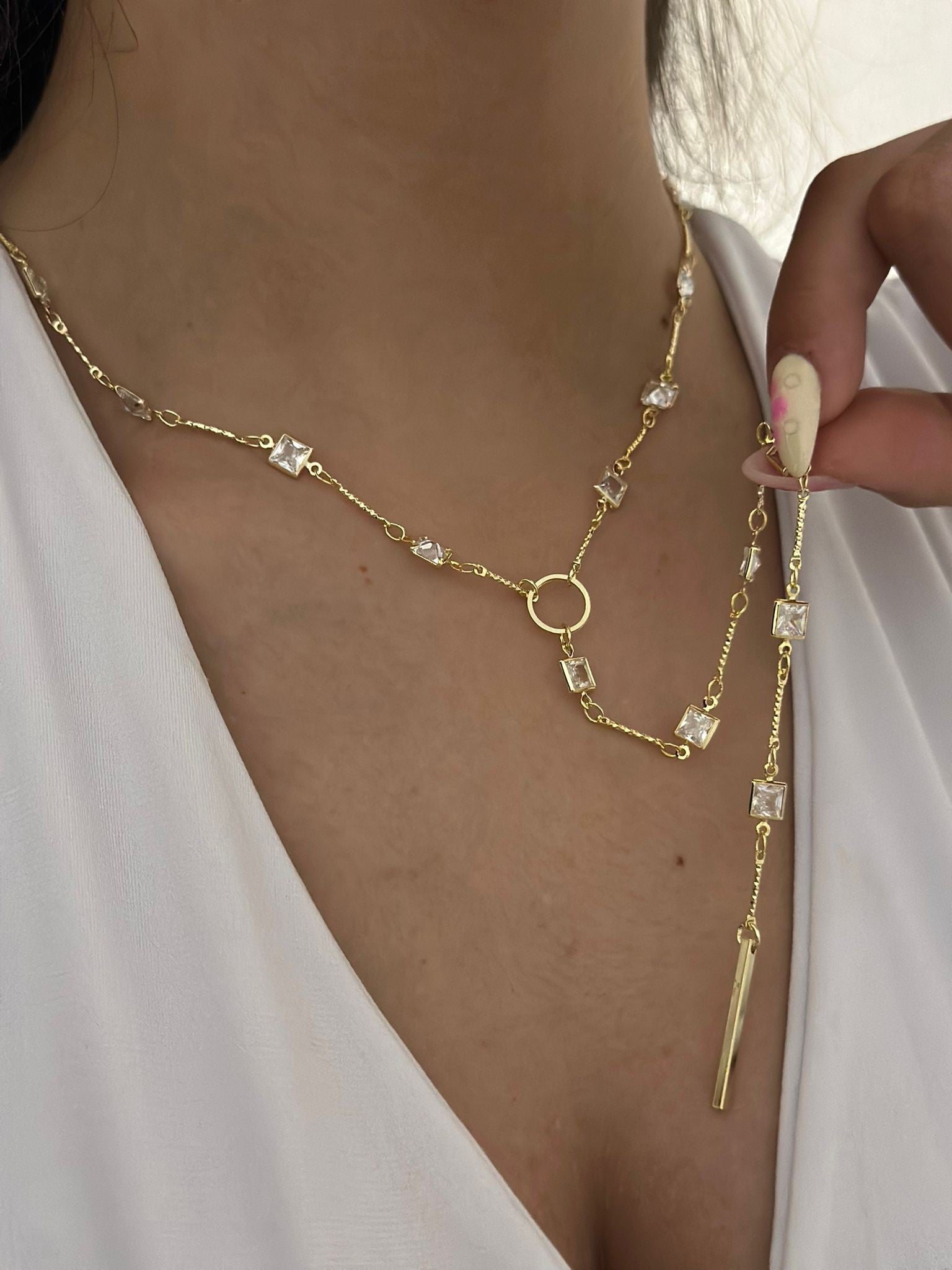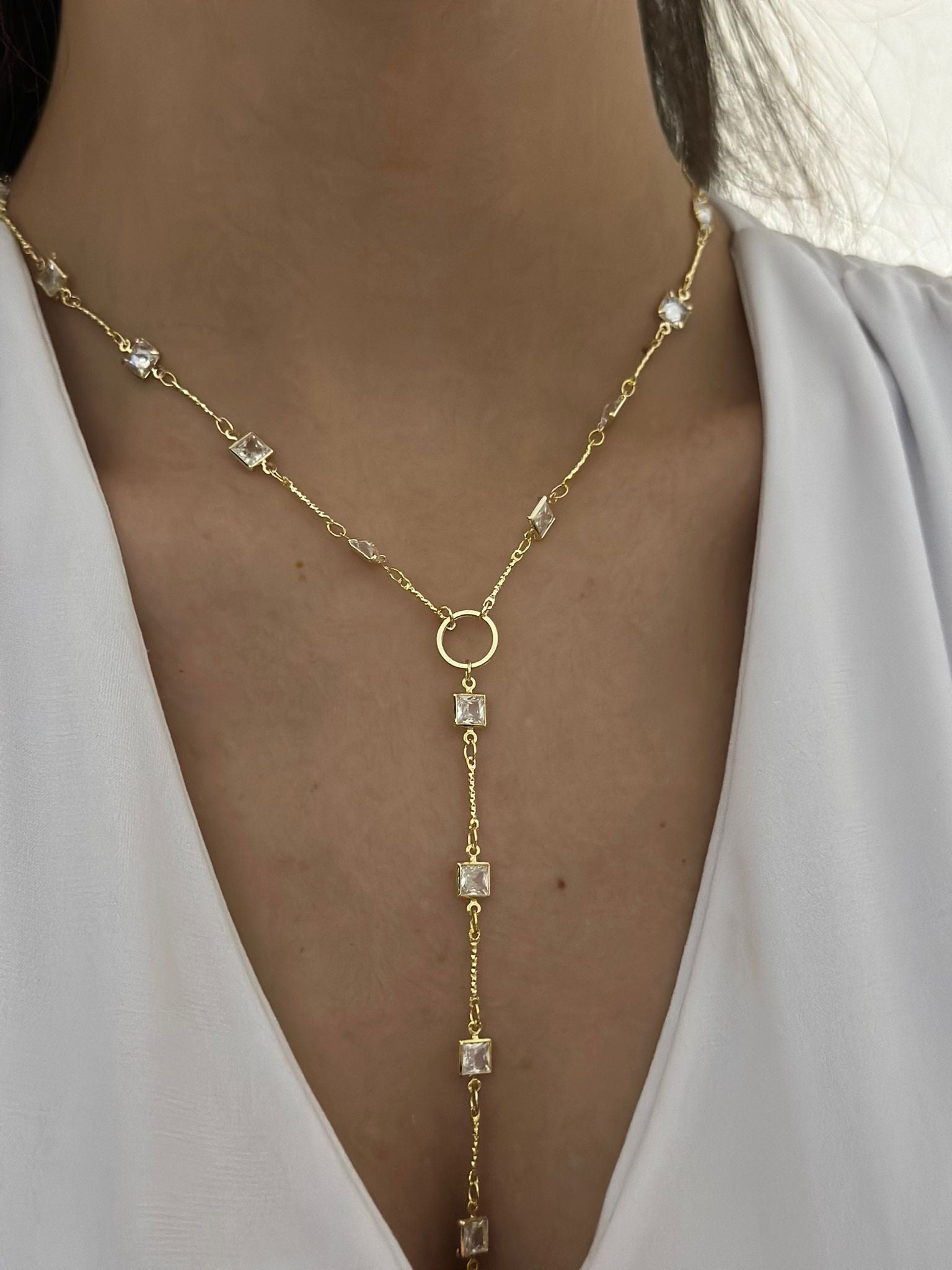 Sıralı Baget Taş Detaylı Y Çelik Kolye