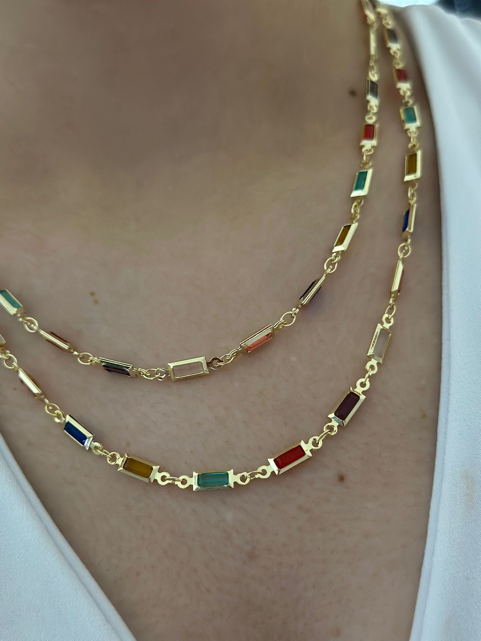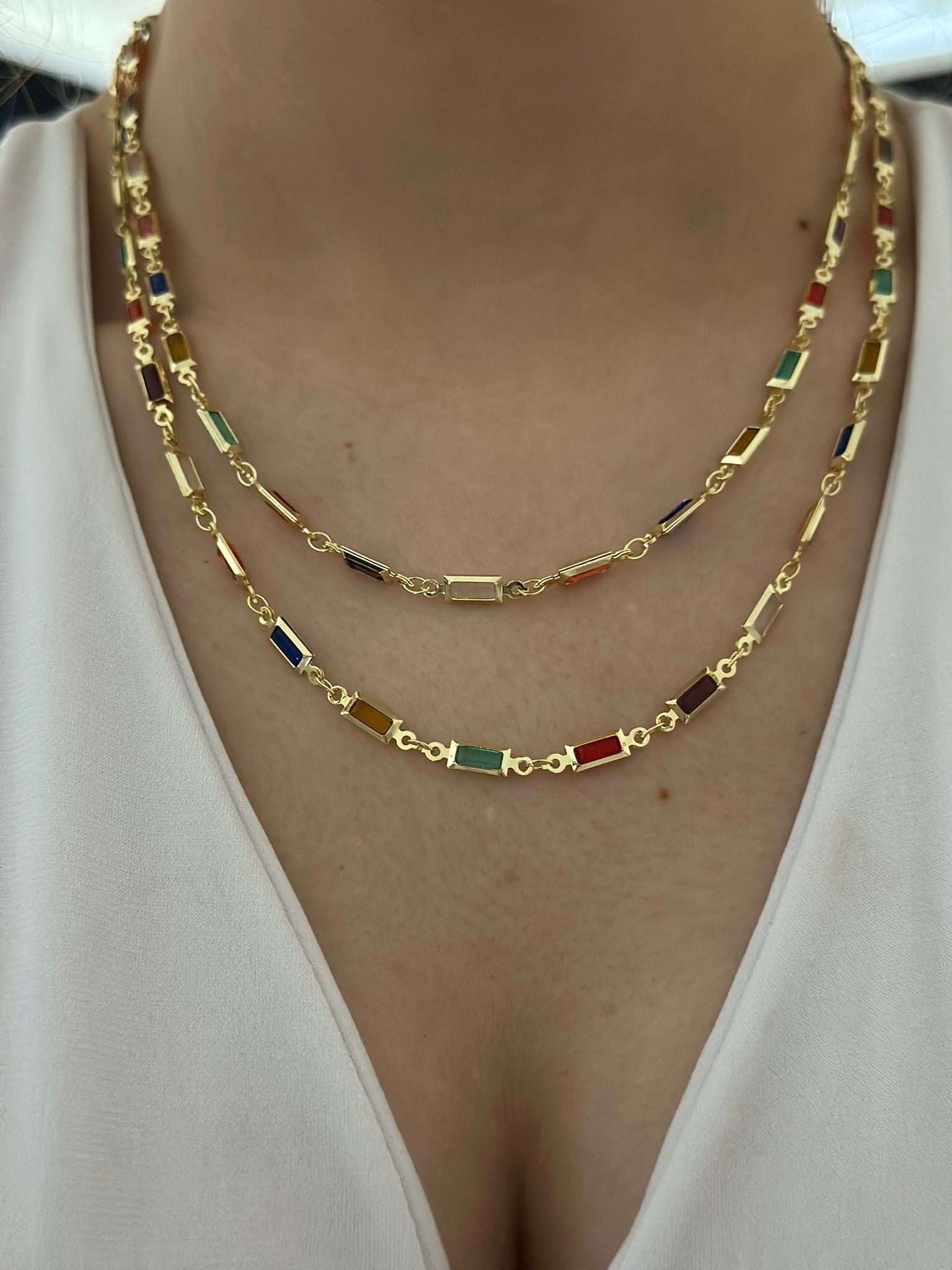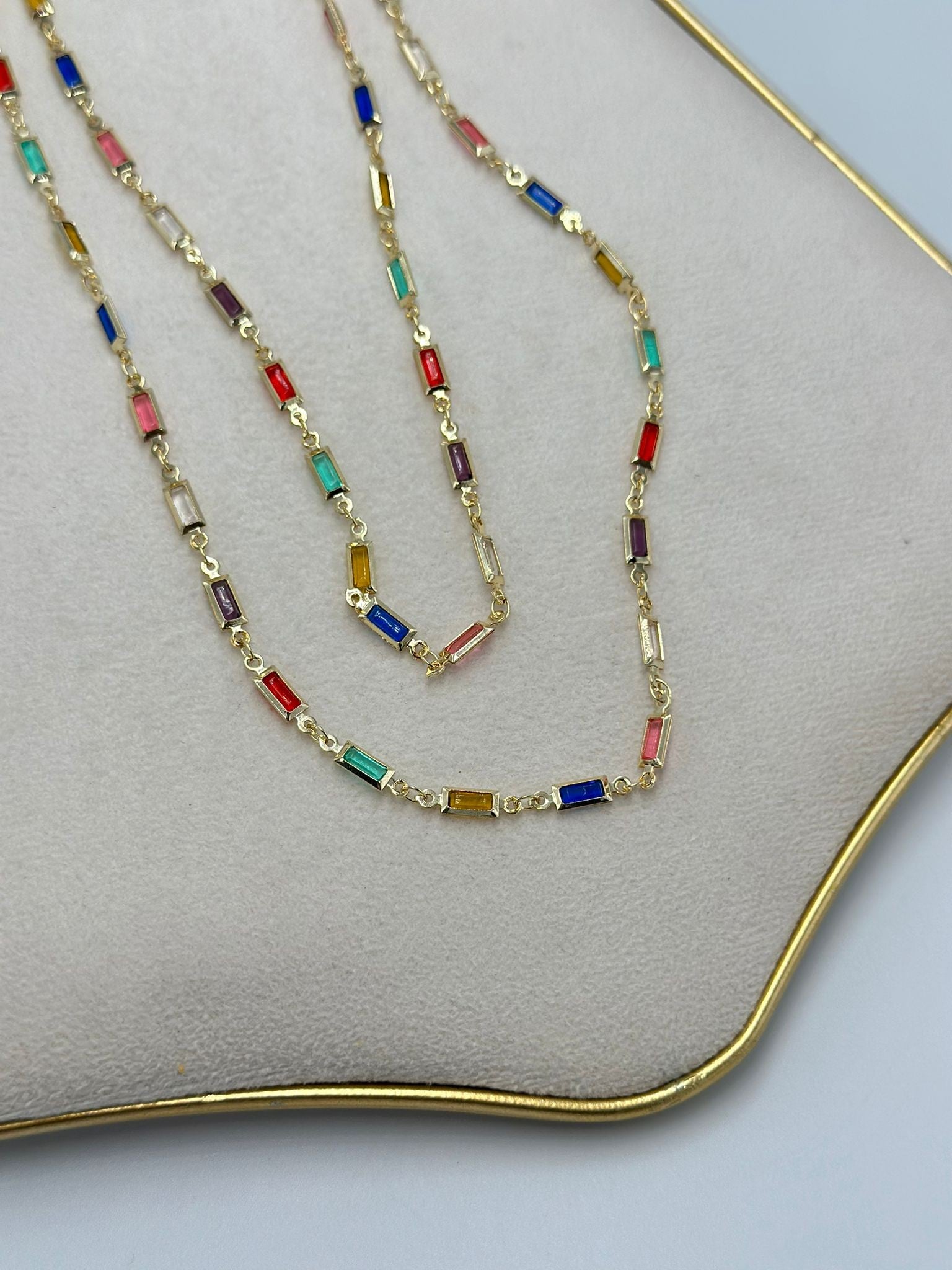 Sıralı Renkli Baget Taş Dolamalı Çelik Kolye