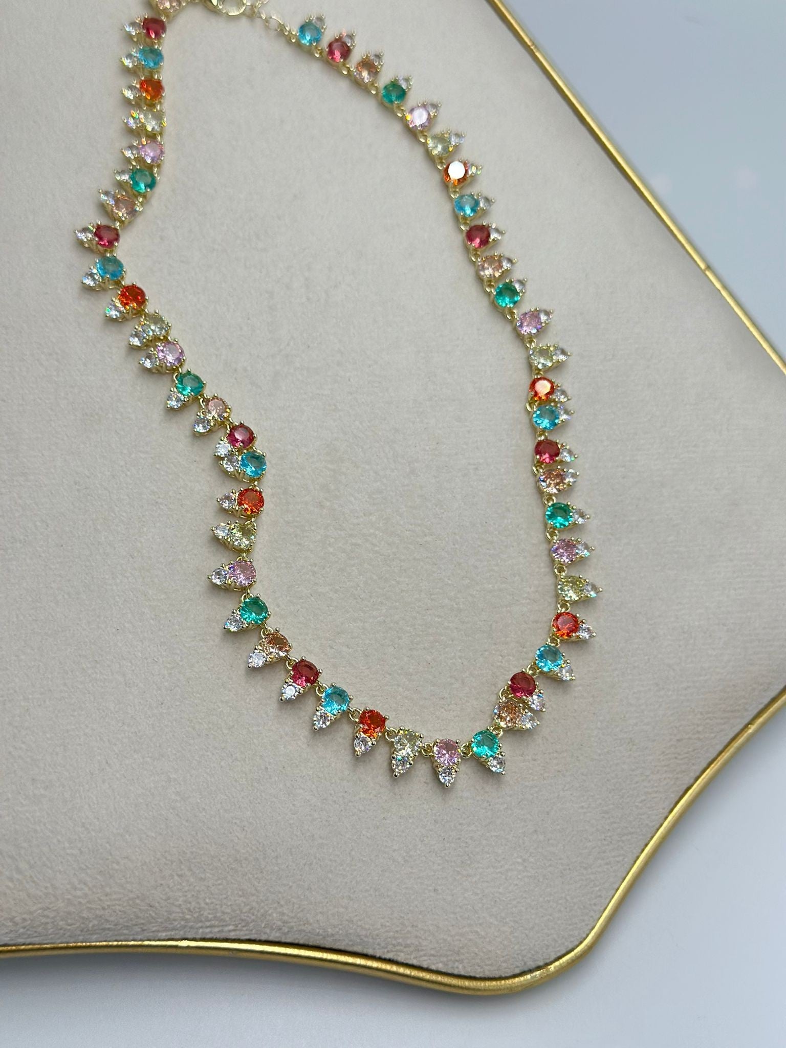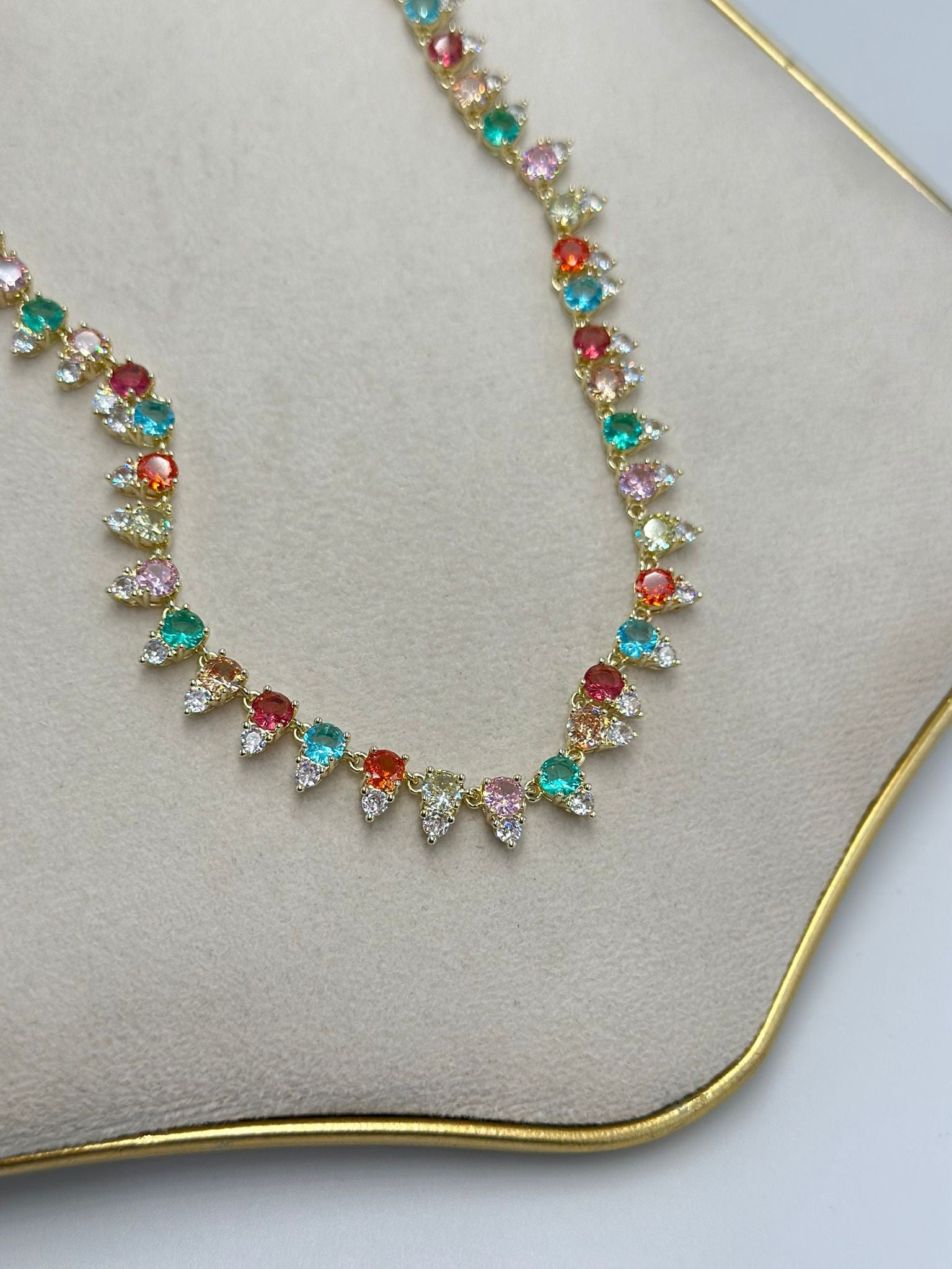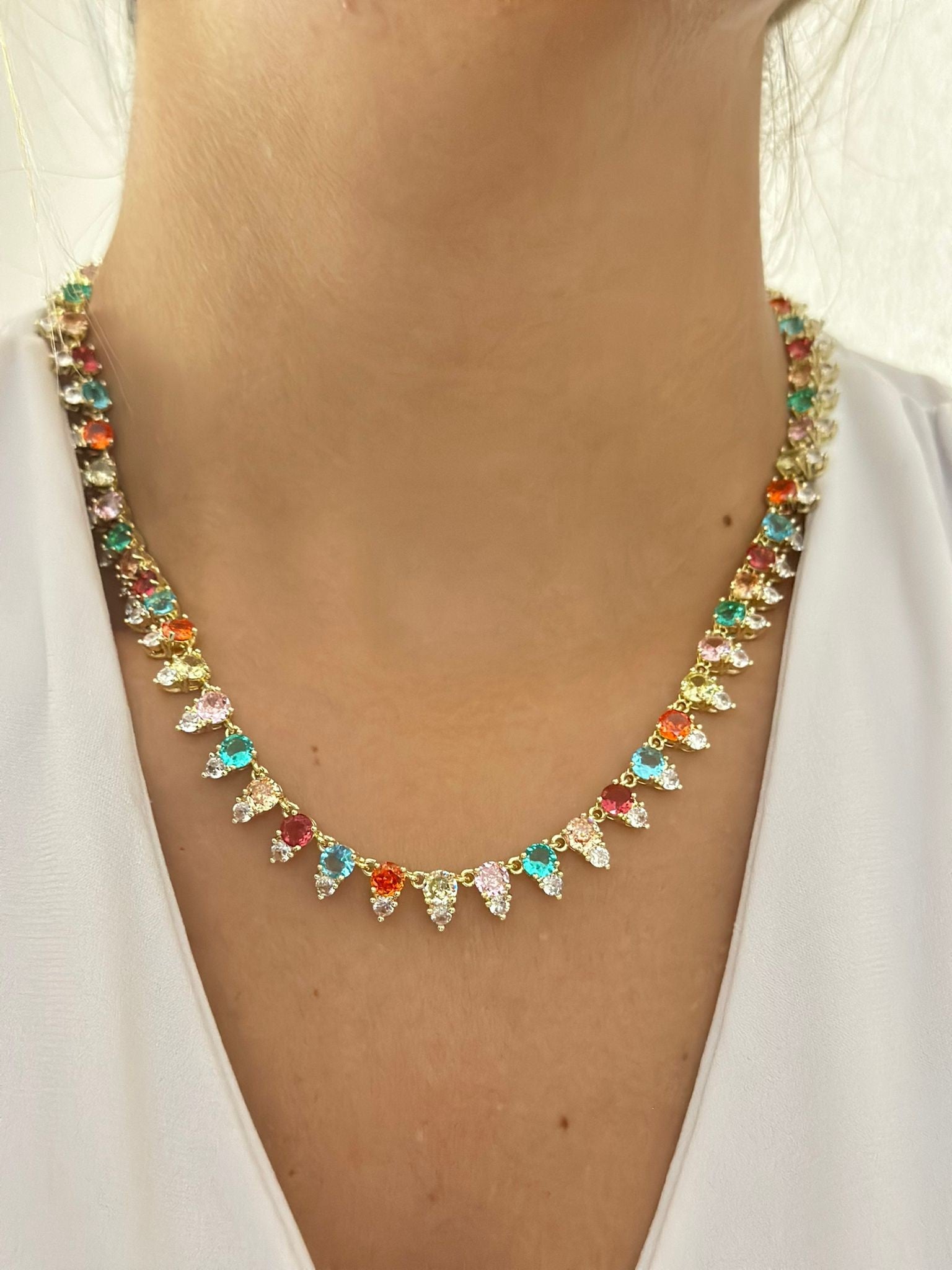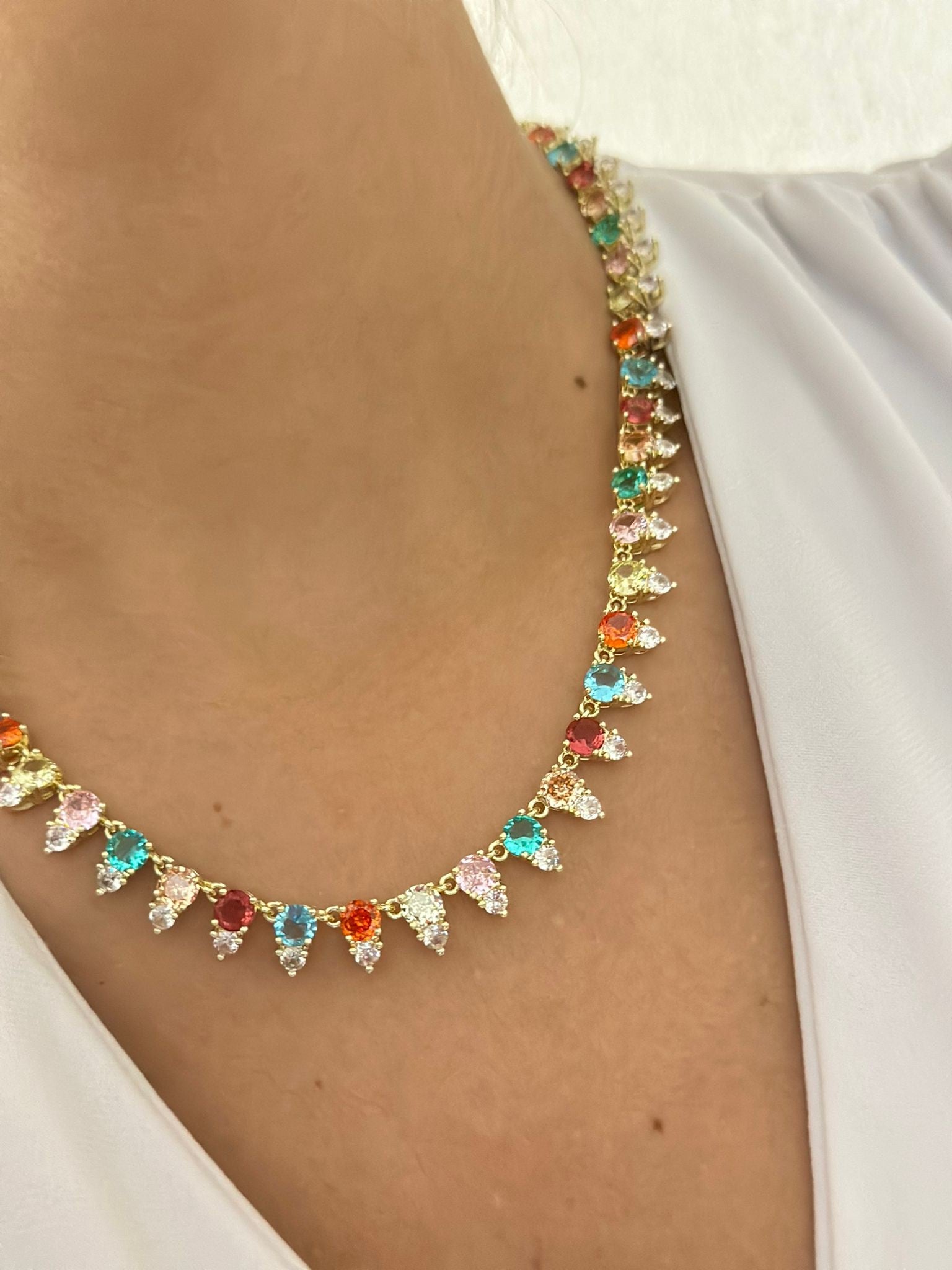 Sıralı Renkli Tek Taş Detay Kolye (Çelik)