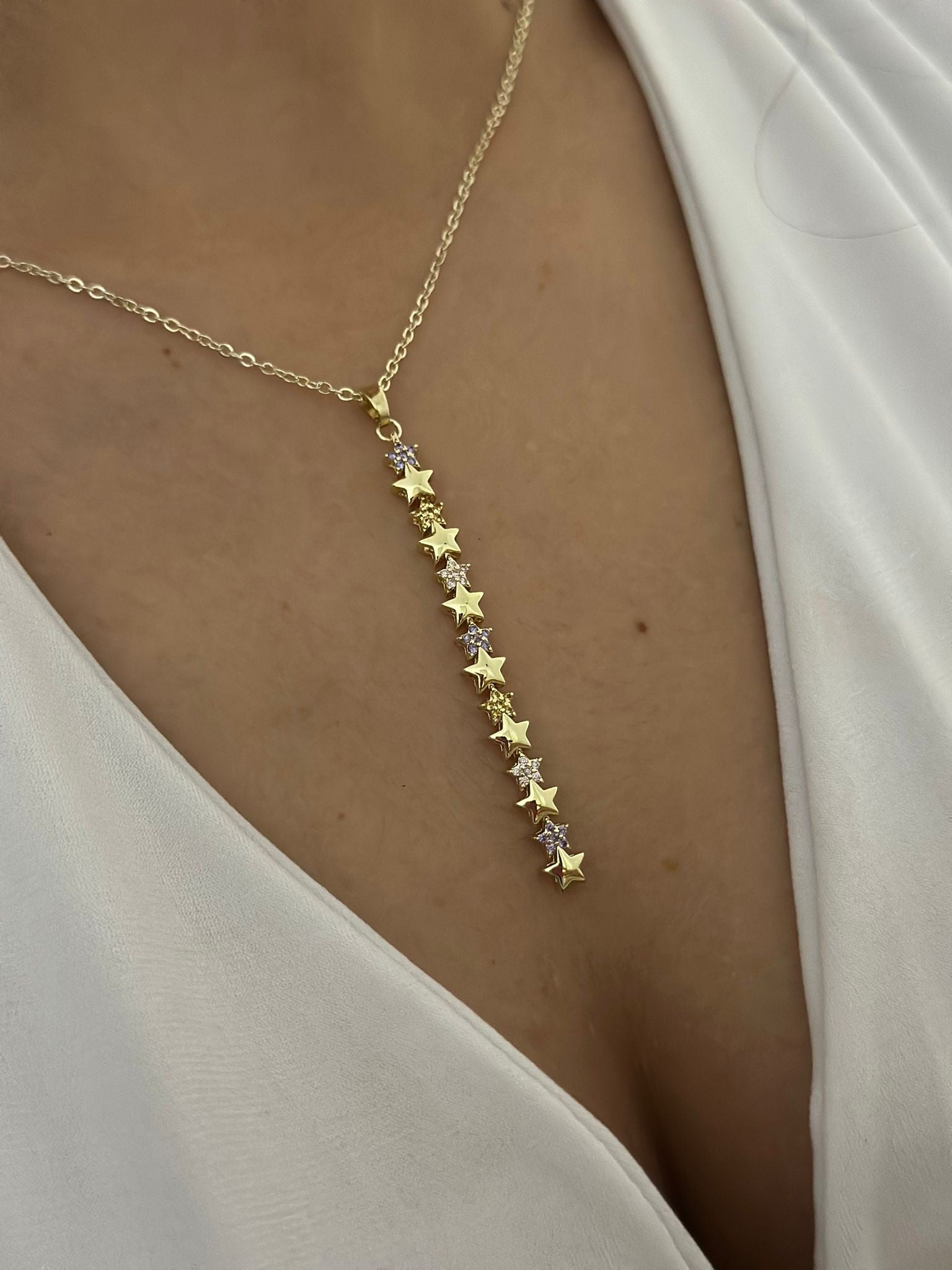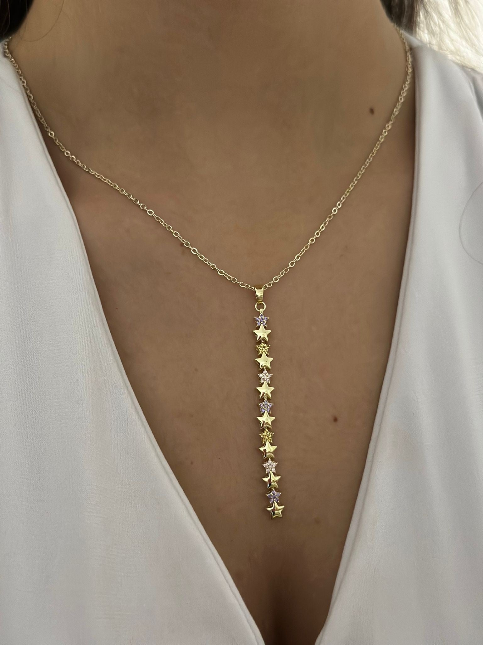 Sıralı Renkli Zirkon Taş Detay Yıldız Kolye