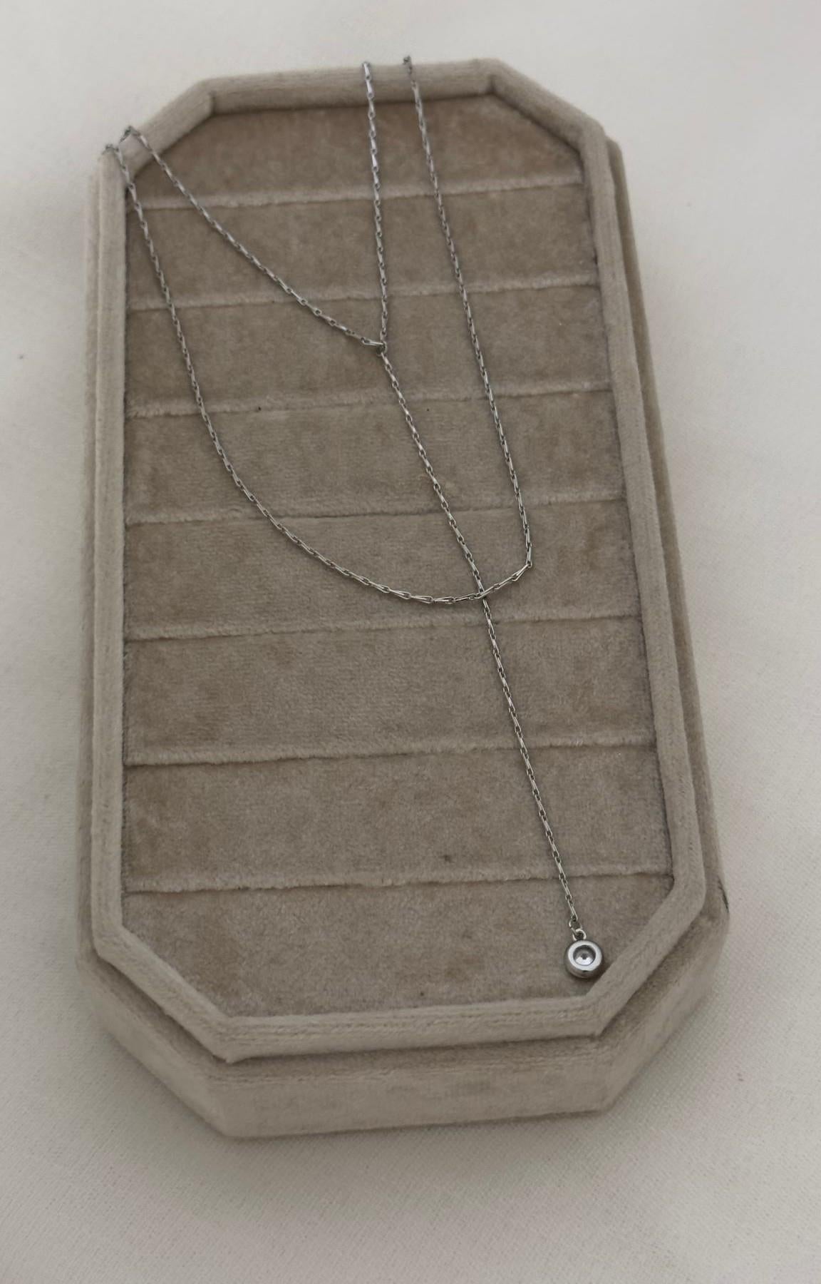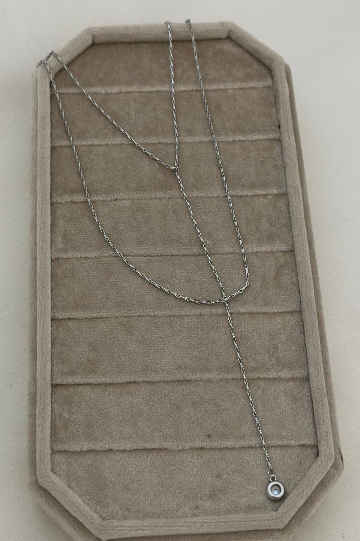 Tek Taş Detaylı İkli Zincir Çelik Kolye