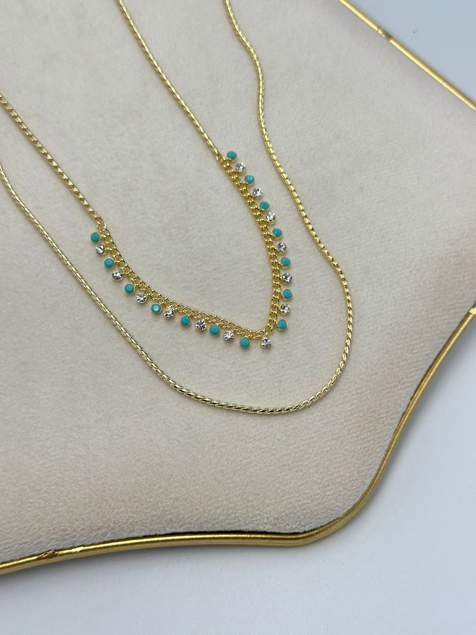 Tek Taş Ve Mavi Taş Detay İkili Çelik Kolye