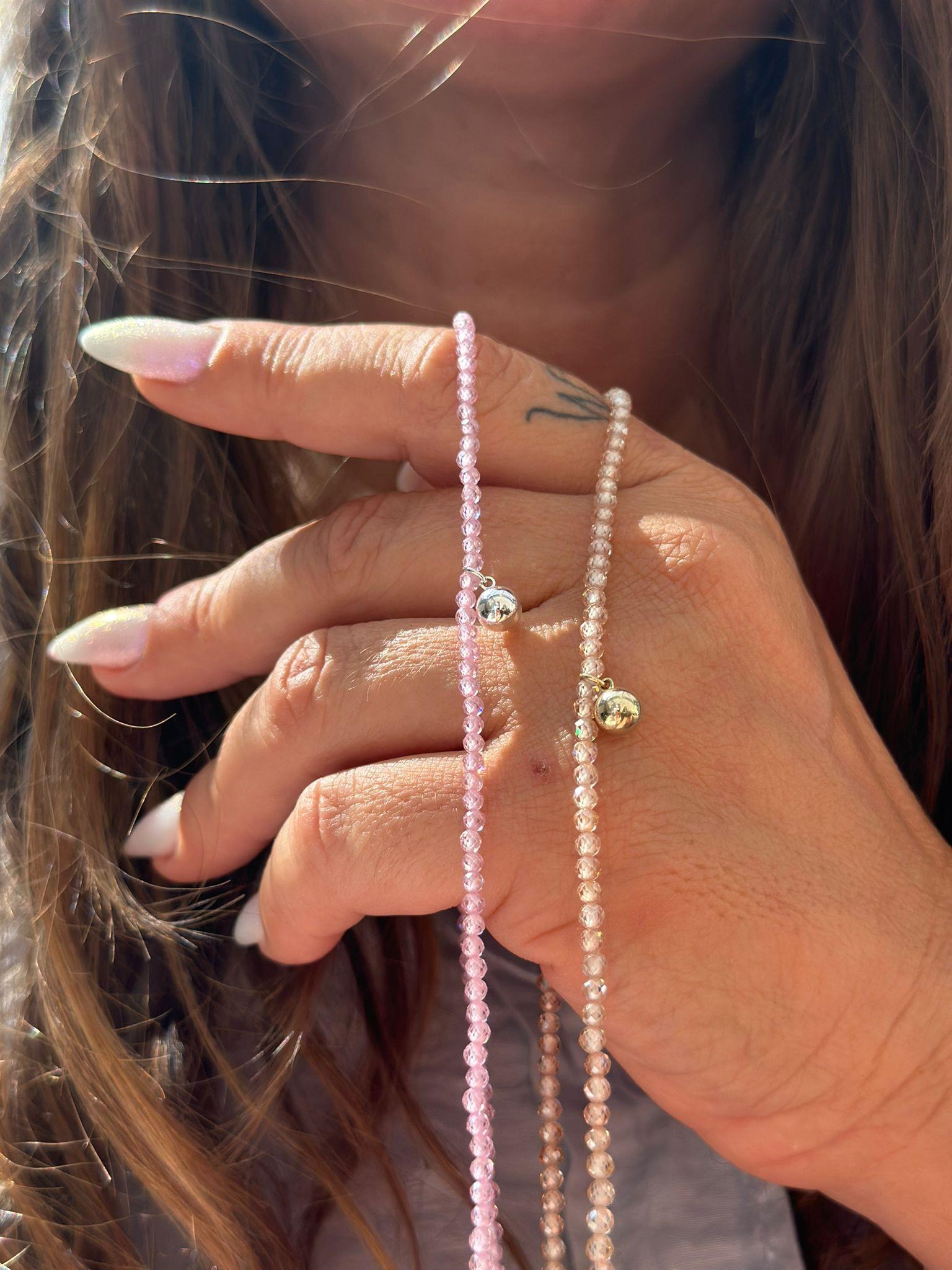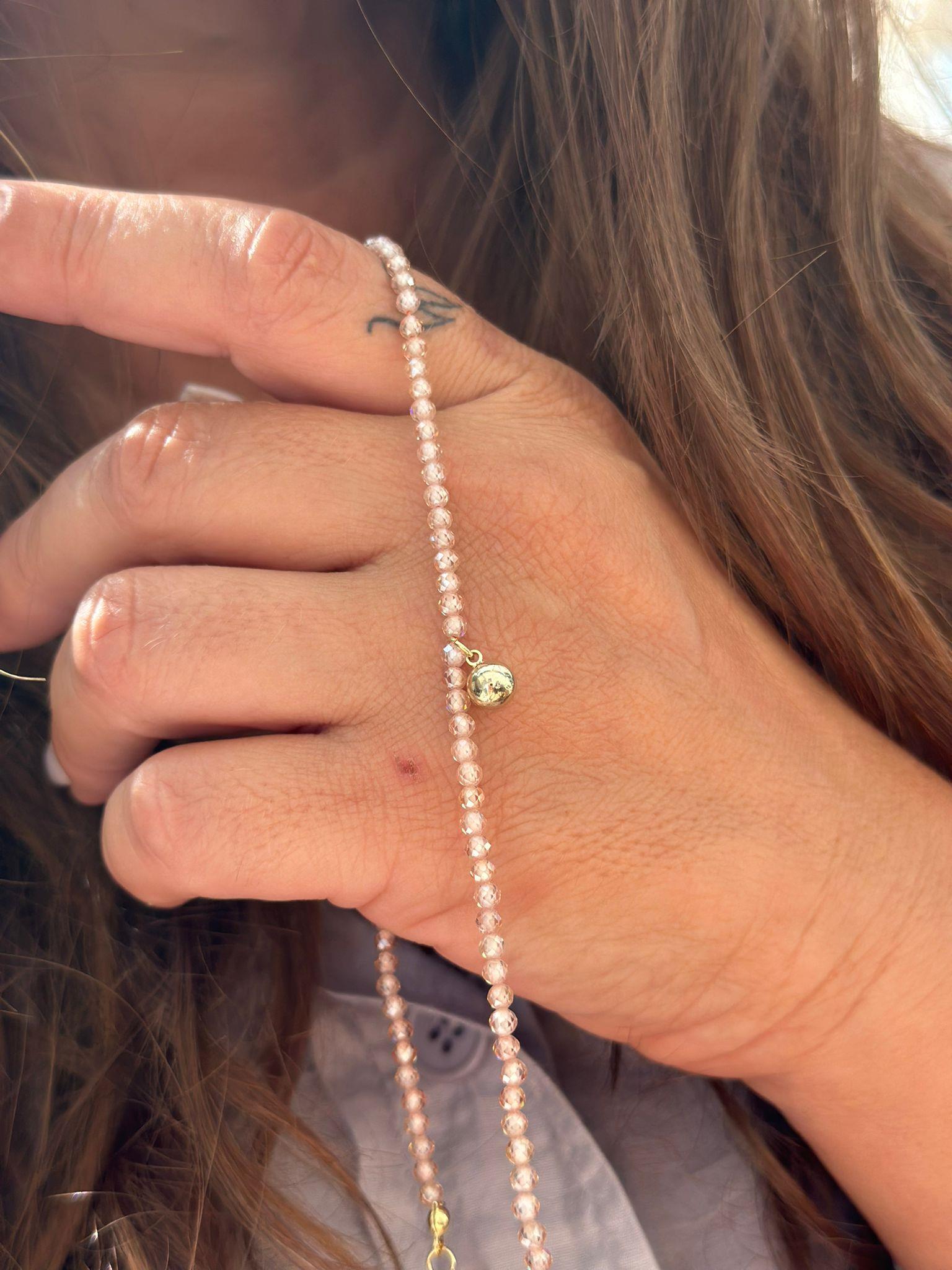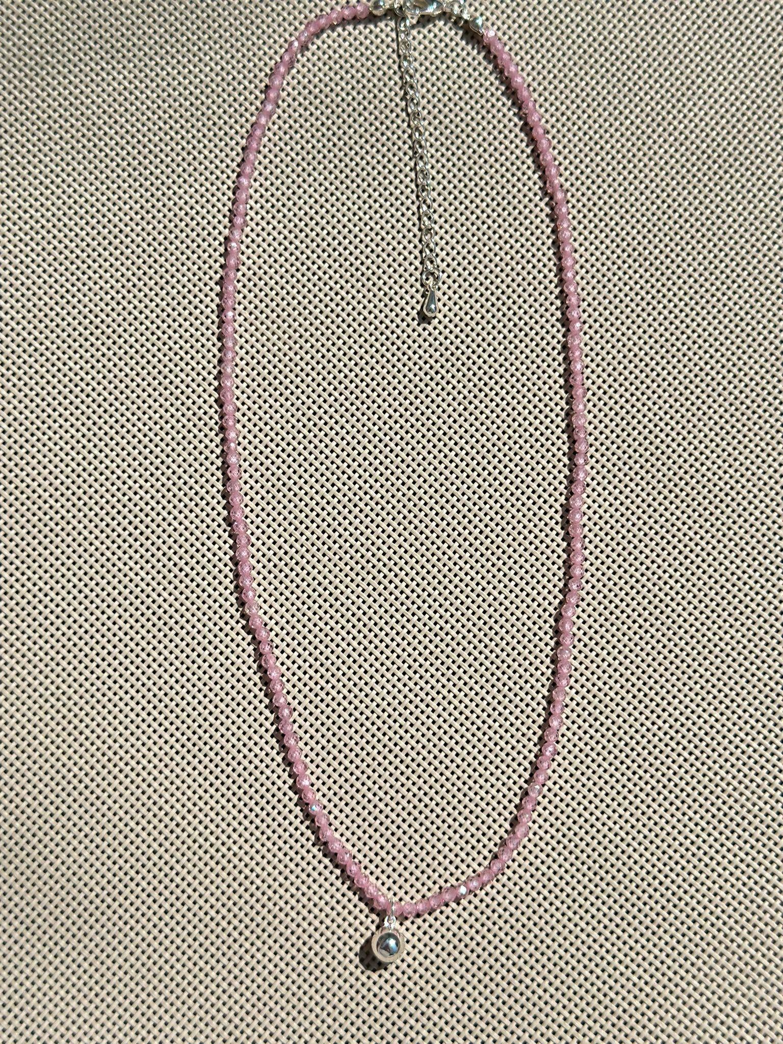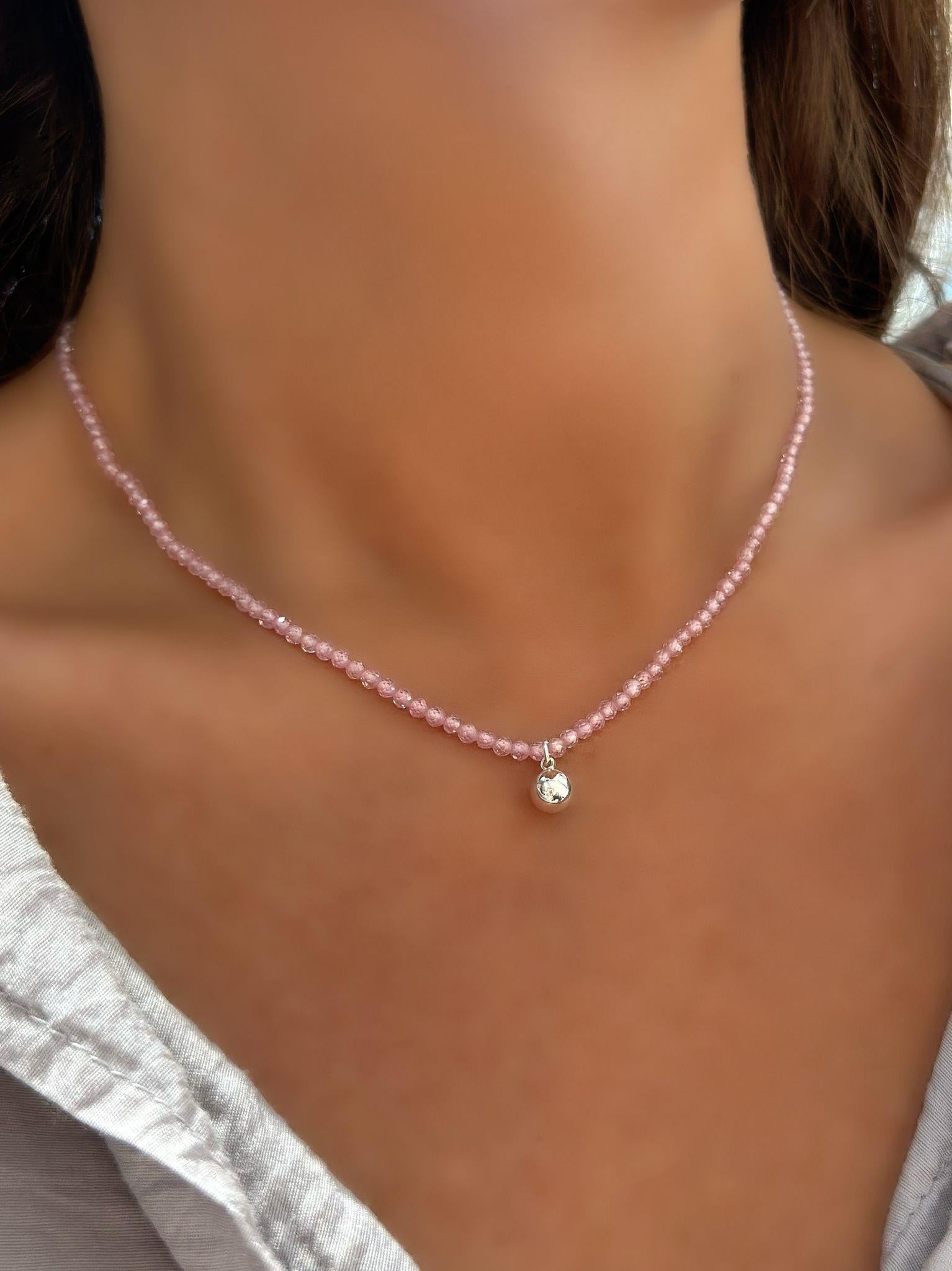 Topçuk Detaylı Kristal Boncuk Taş Çelik Kolye