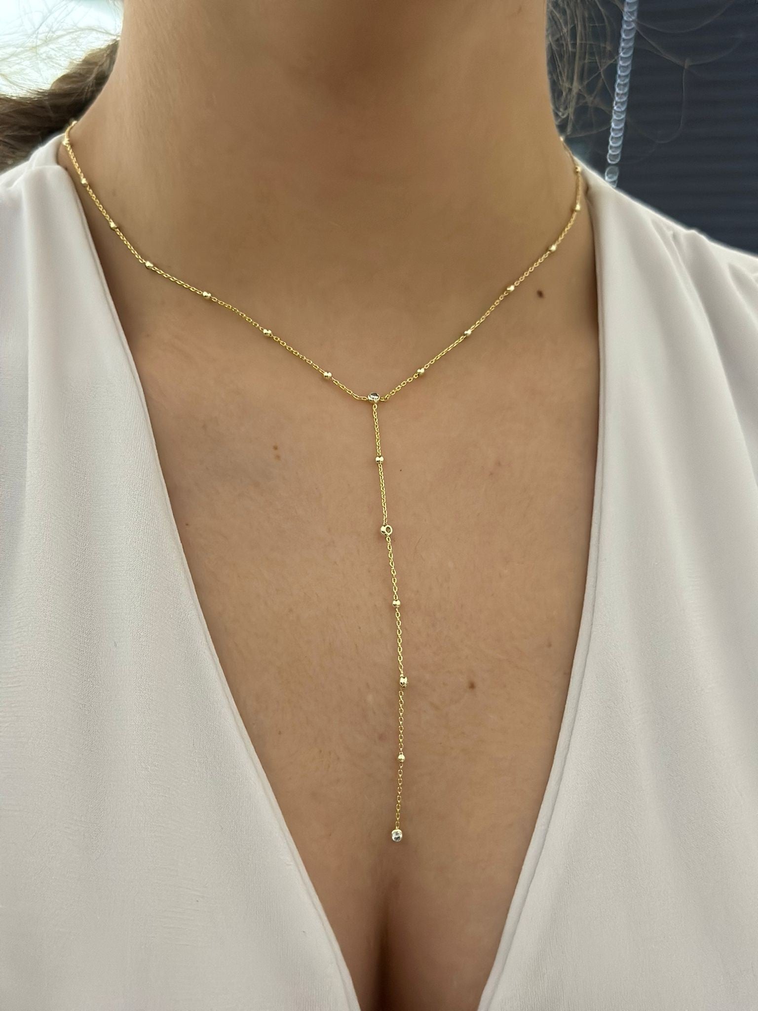 Topçuk Detaylı Y Çelik Kolye