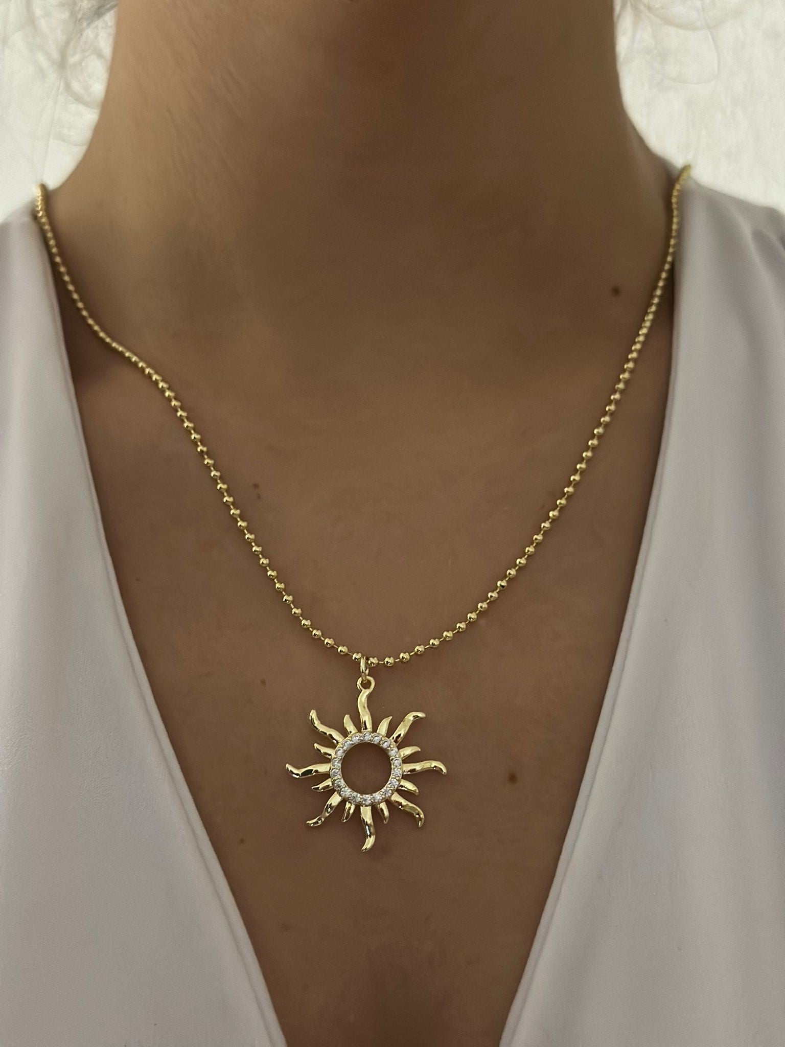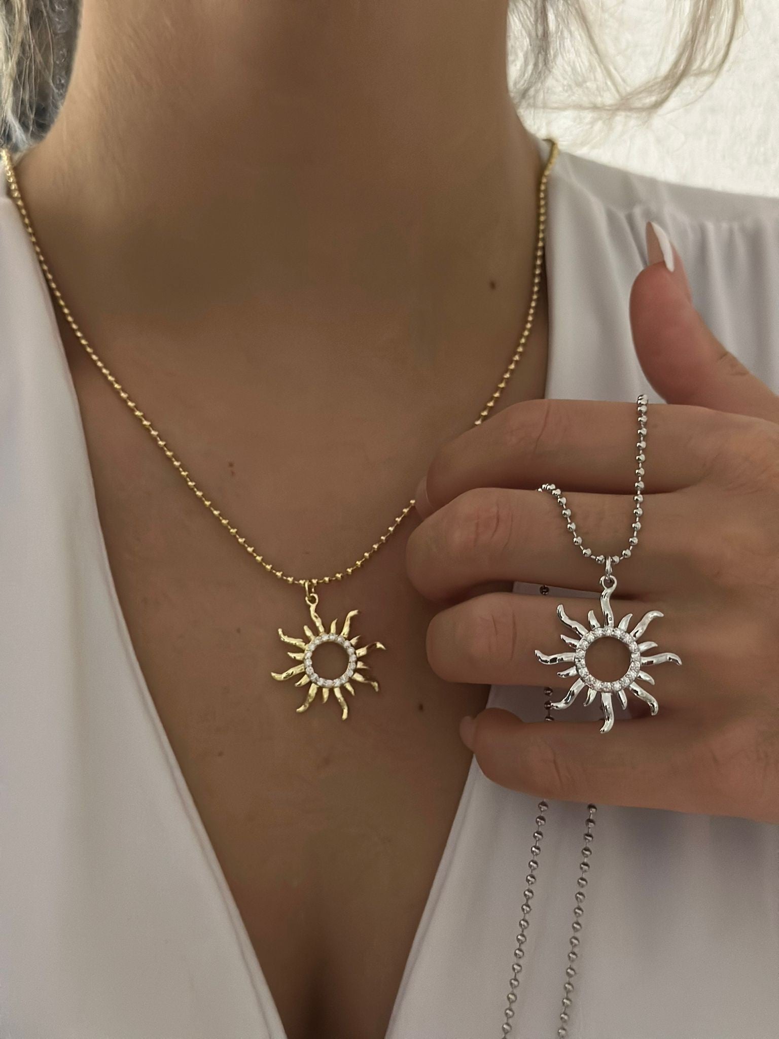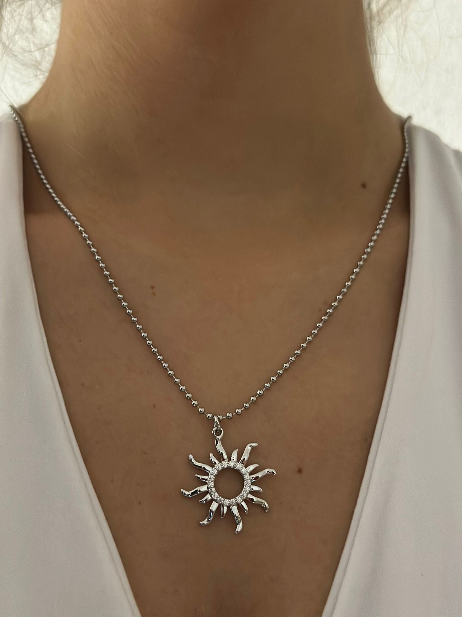 Topçuk Zincir Detaylı Güneş Kolye (Çelik)