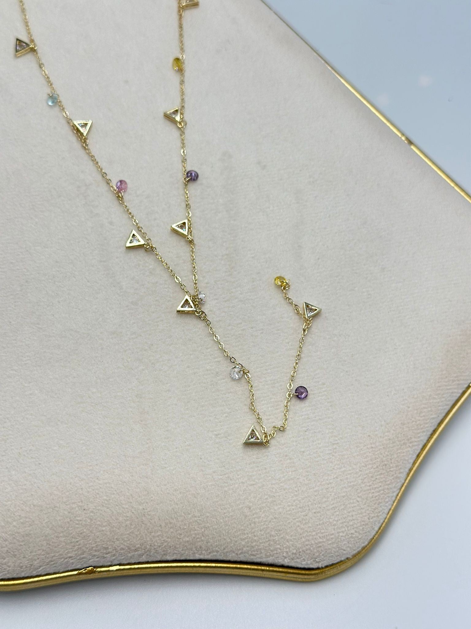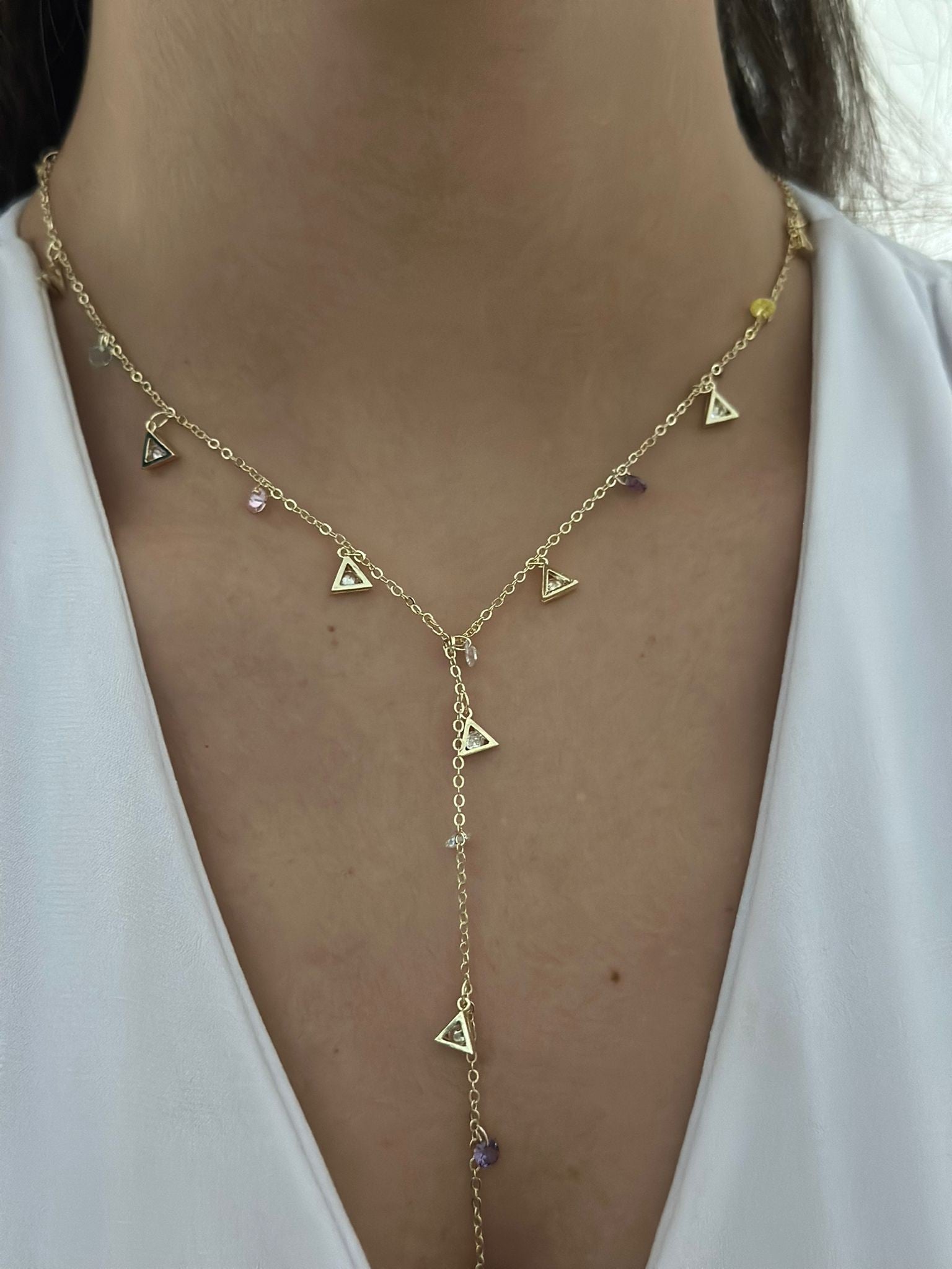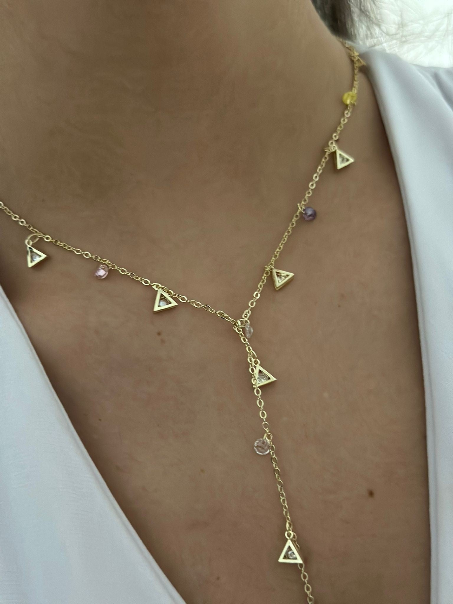 Üçgen Ve Renkli Taş Detay Y Kolye (Çelik)