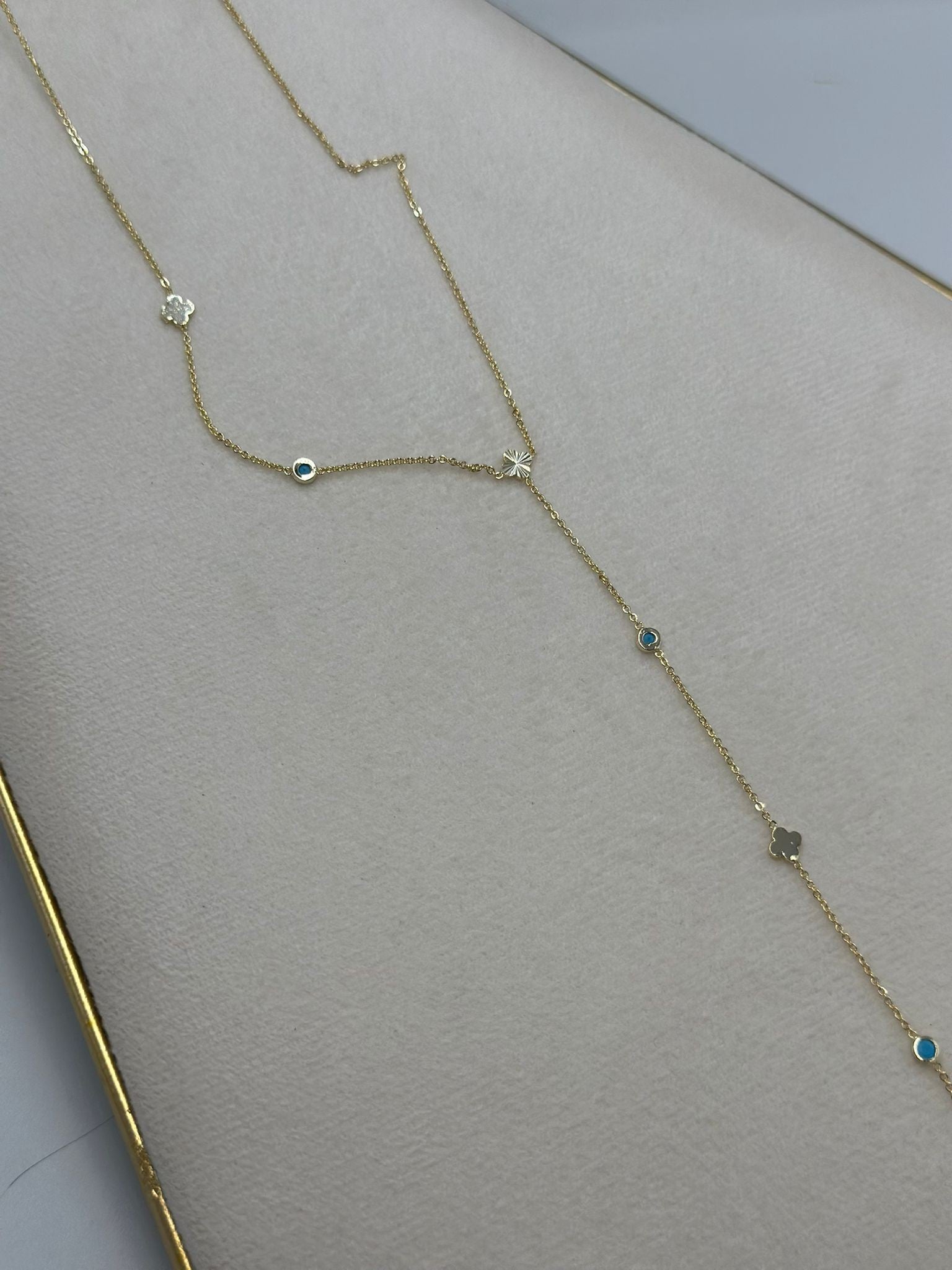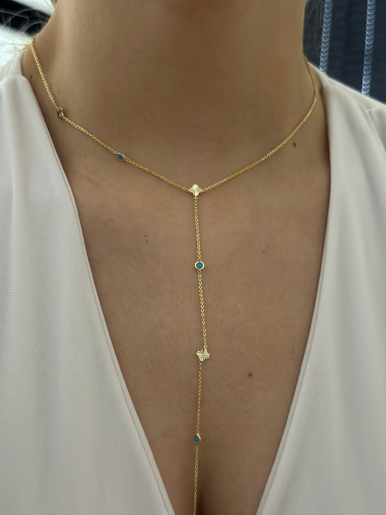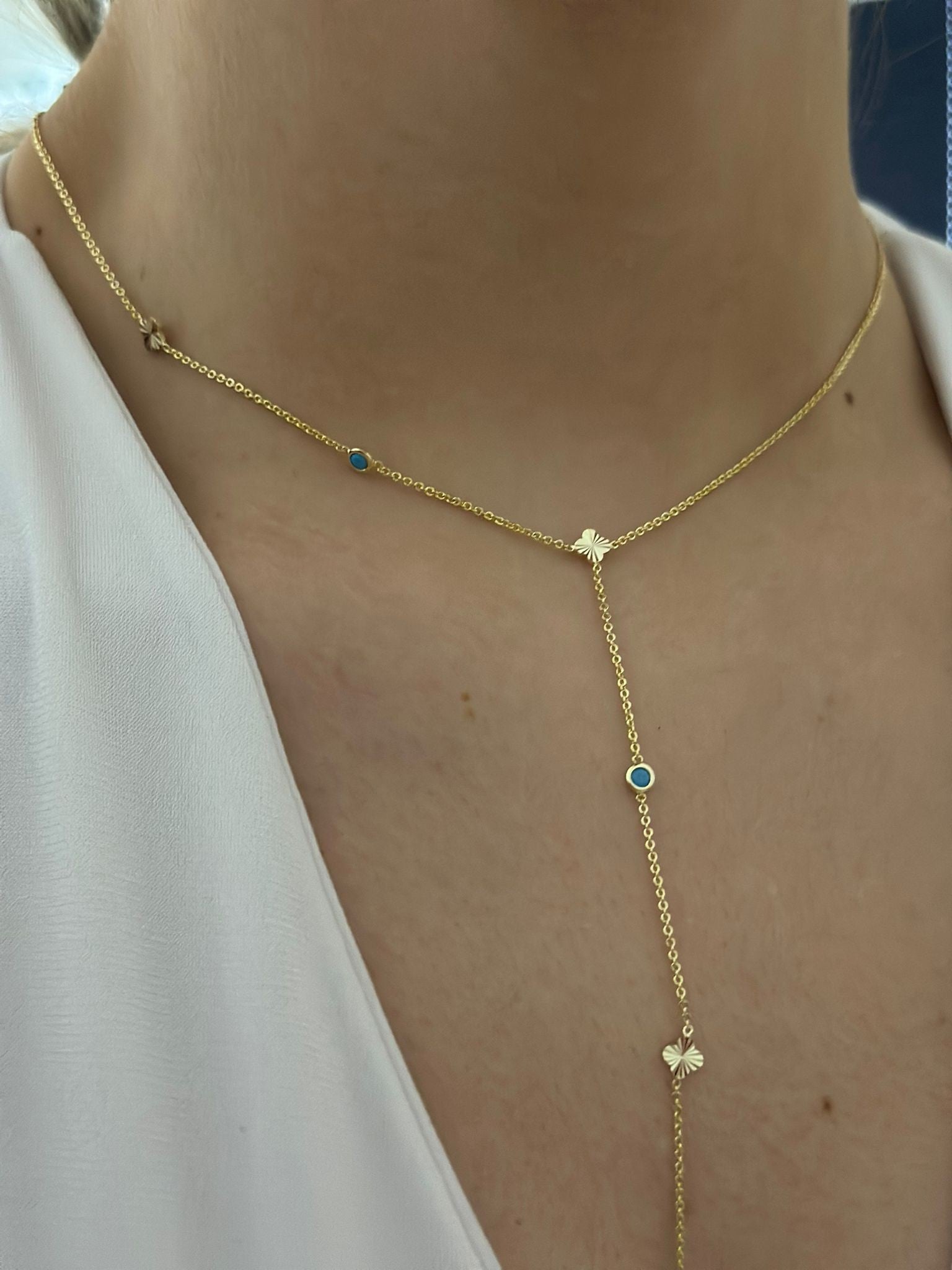 Yonca Ve Mavi Taş Detay Y Kolye (Çelik)