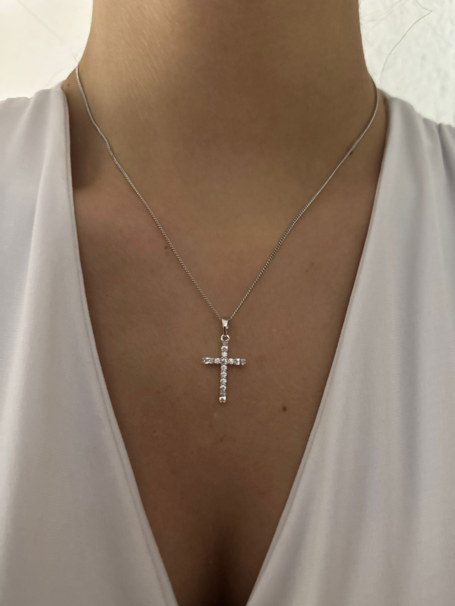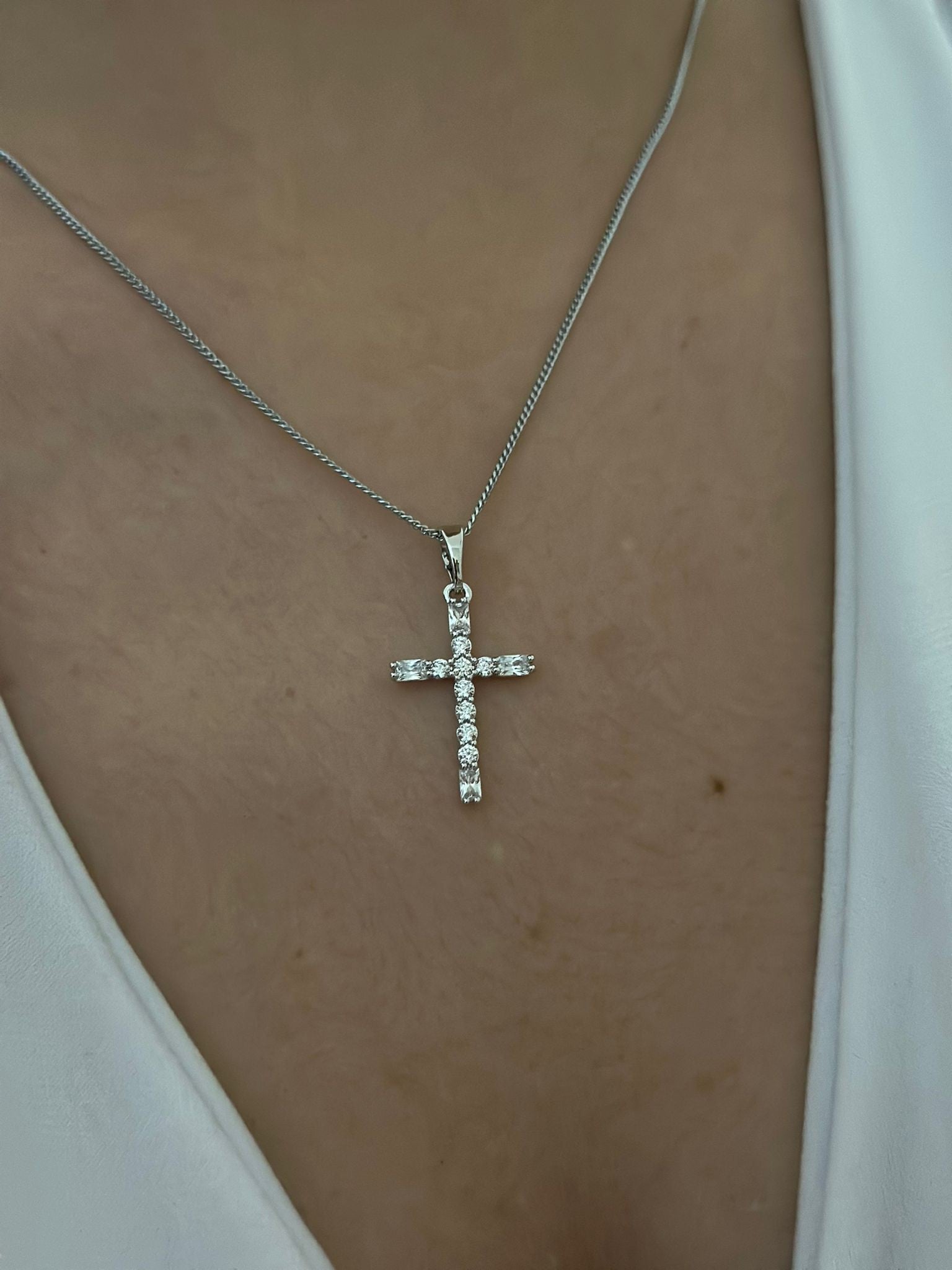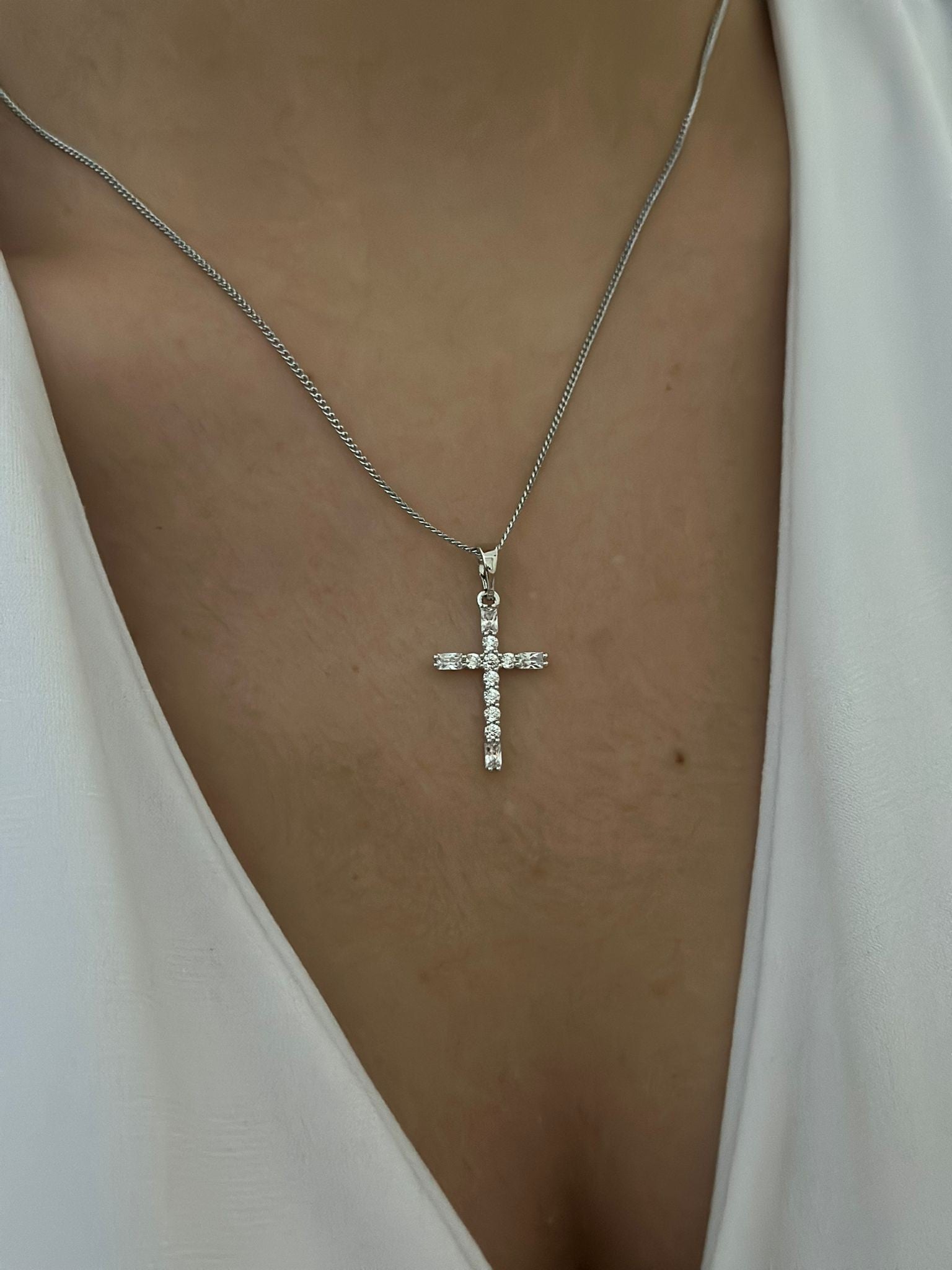 Zirkon Taş Detay Haç Kolye (Çelik)