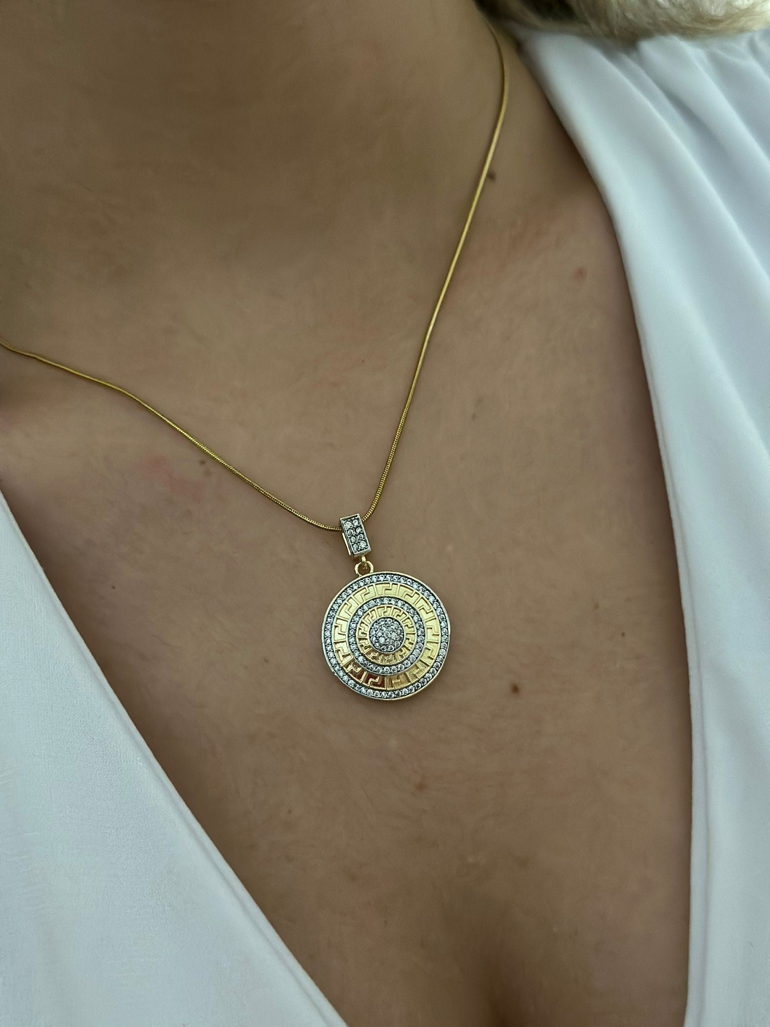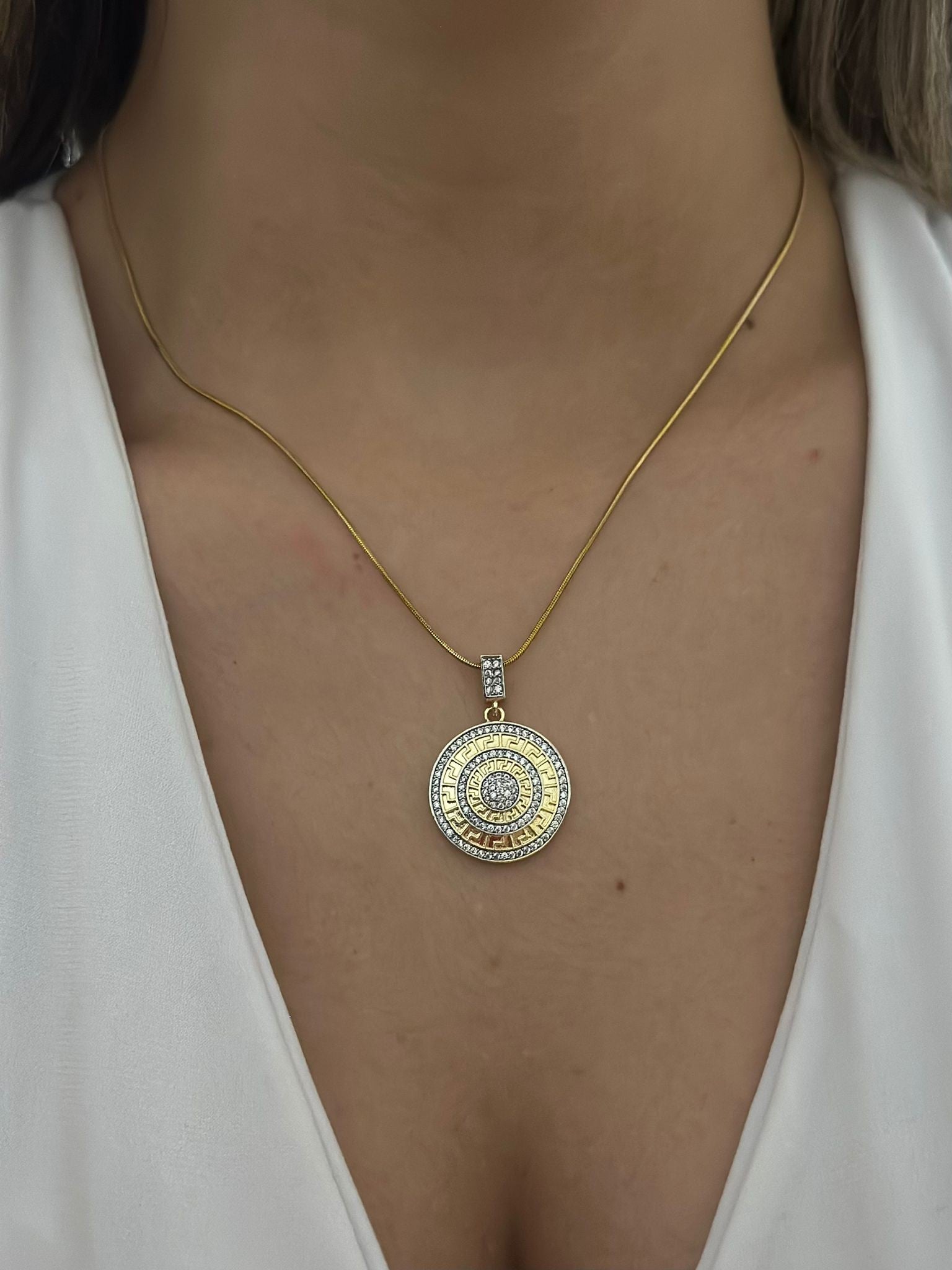 Zirkon Taş Detay İtalyan Zincir Çelik Kolye