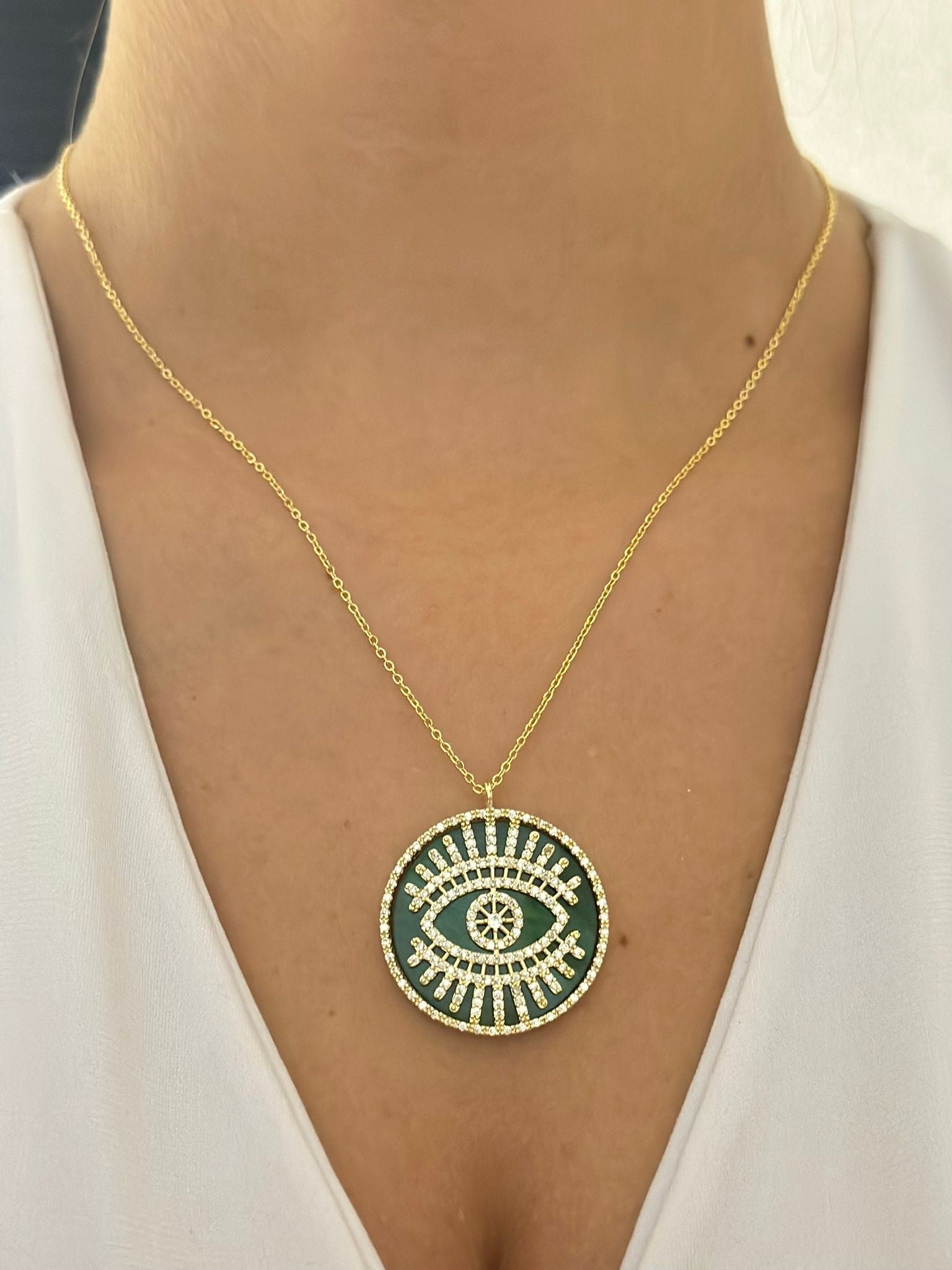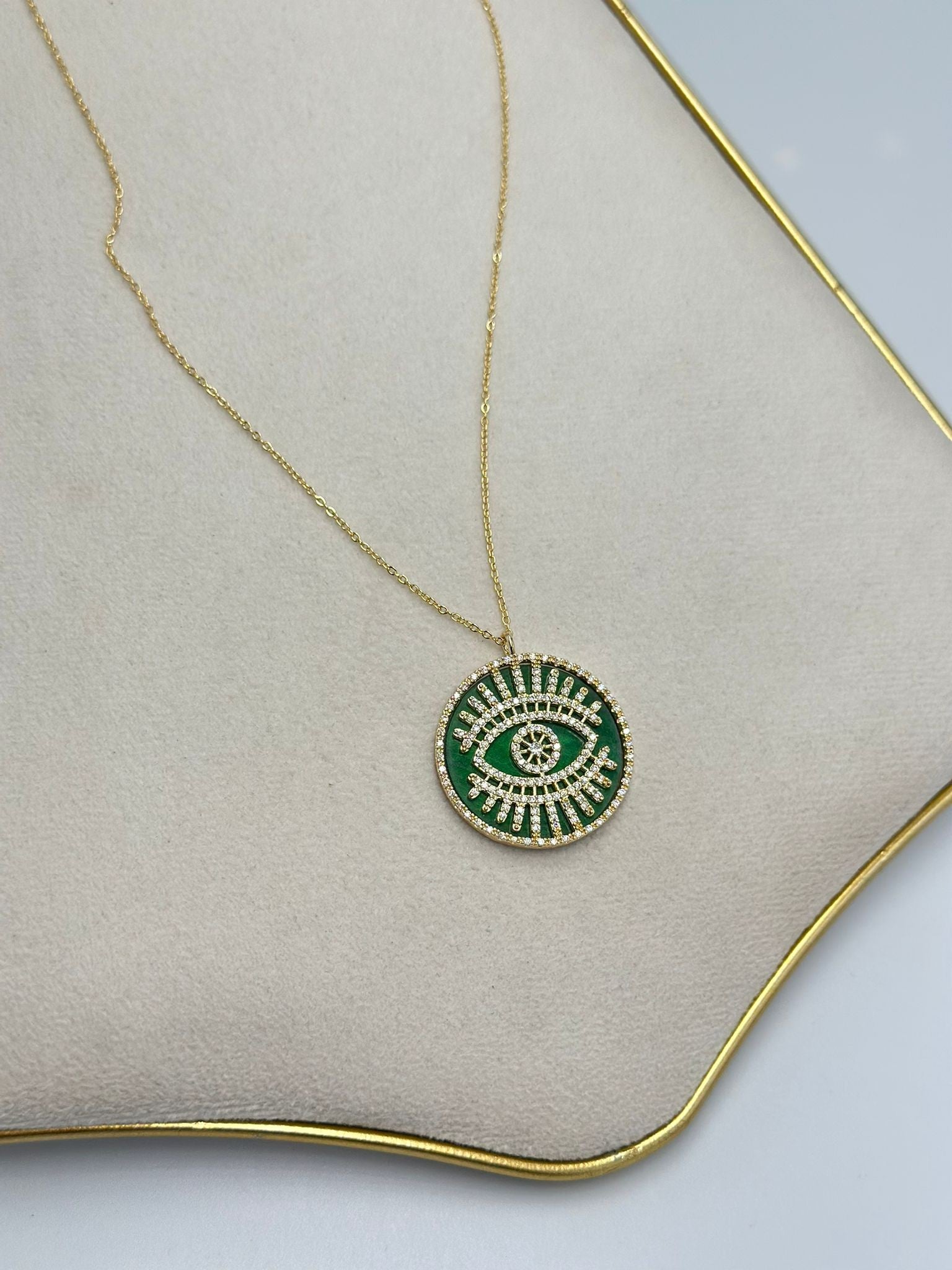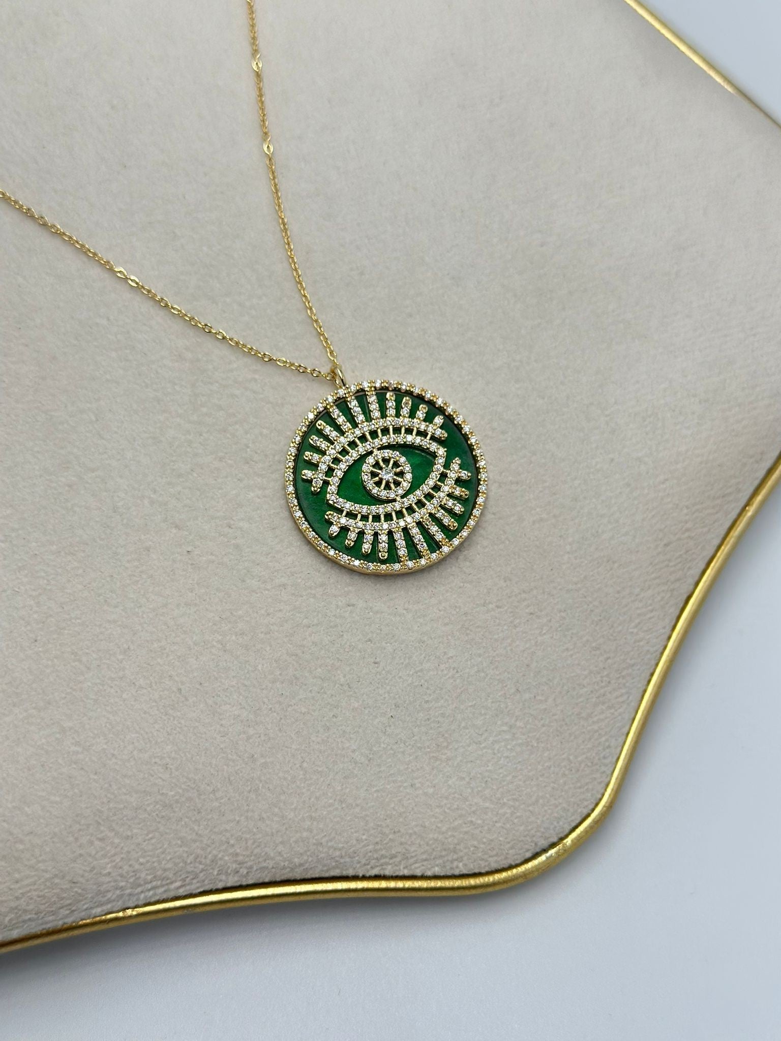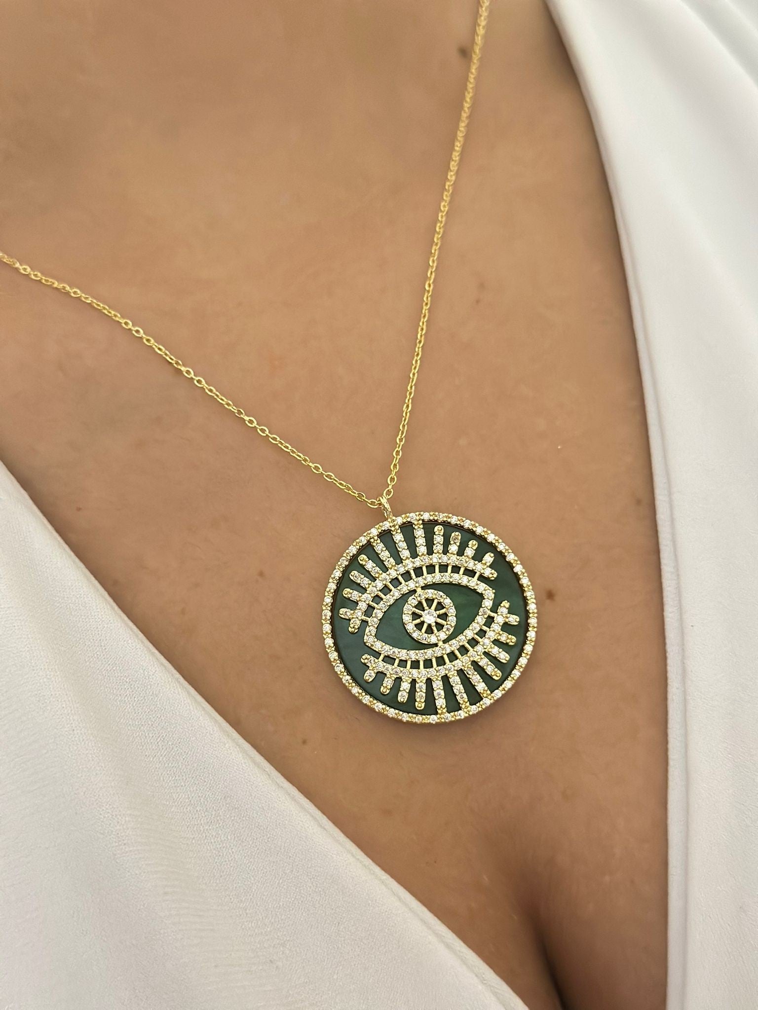 Zirkon Taş Detaylı Göz Kolye (Çelik)