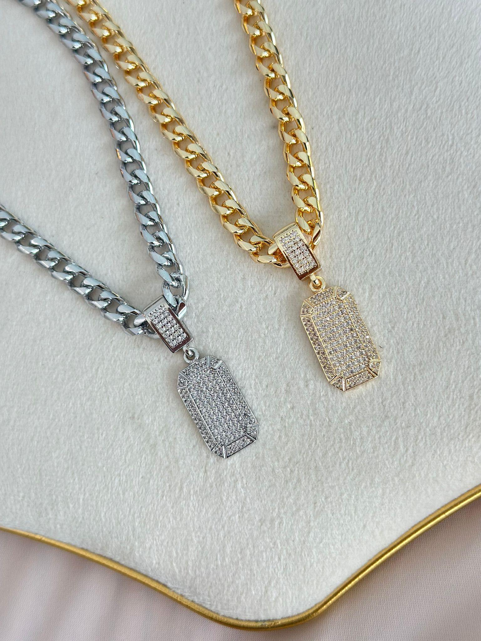 Zirkon Taş Detaylı Kare Kesim Çelik Kolye