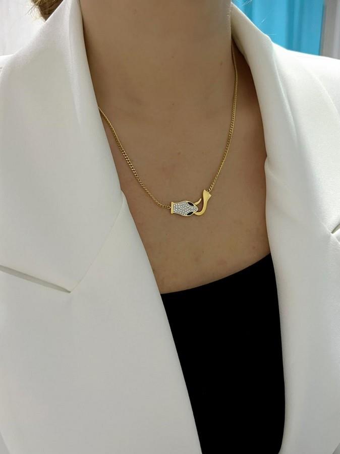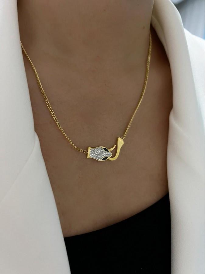 Zirkon Taş Detaylı Yılan Çelik Kolye