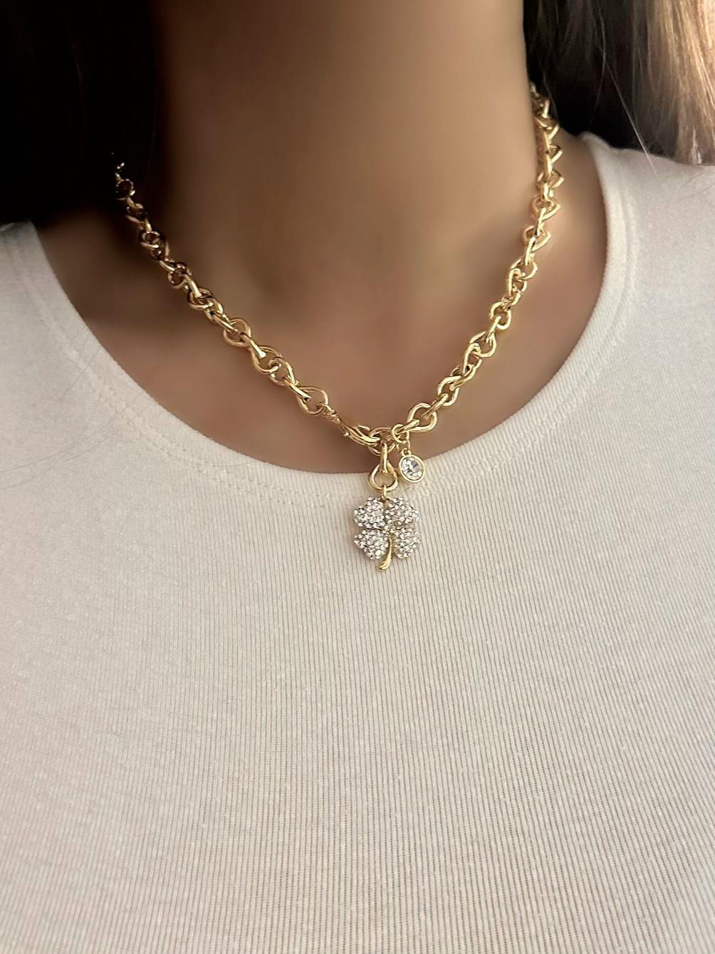 Zirkon Taş Detaylı Yonca Çelik Kolye
