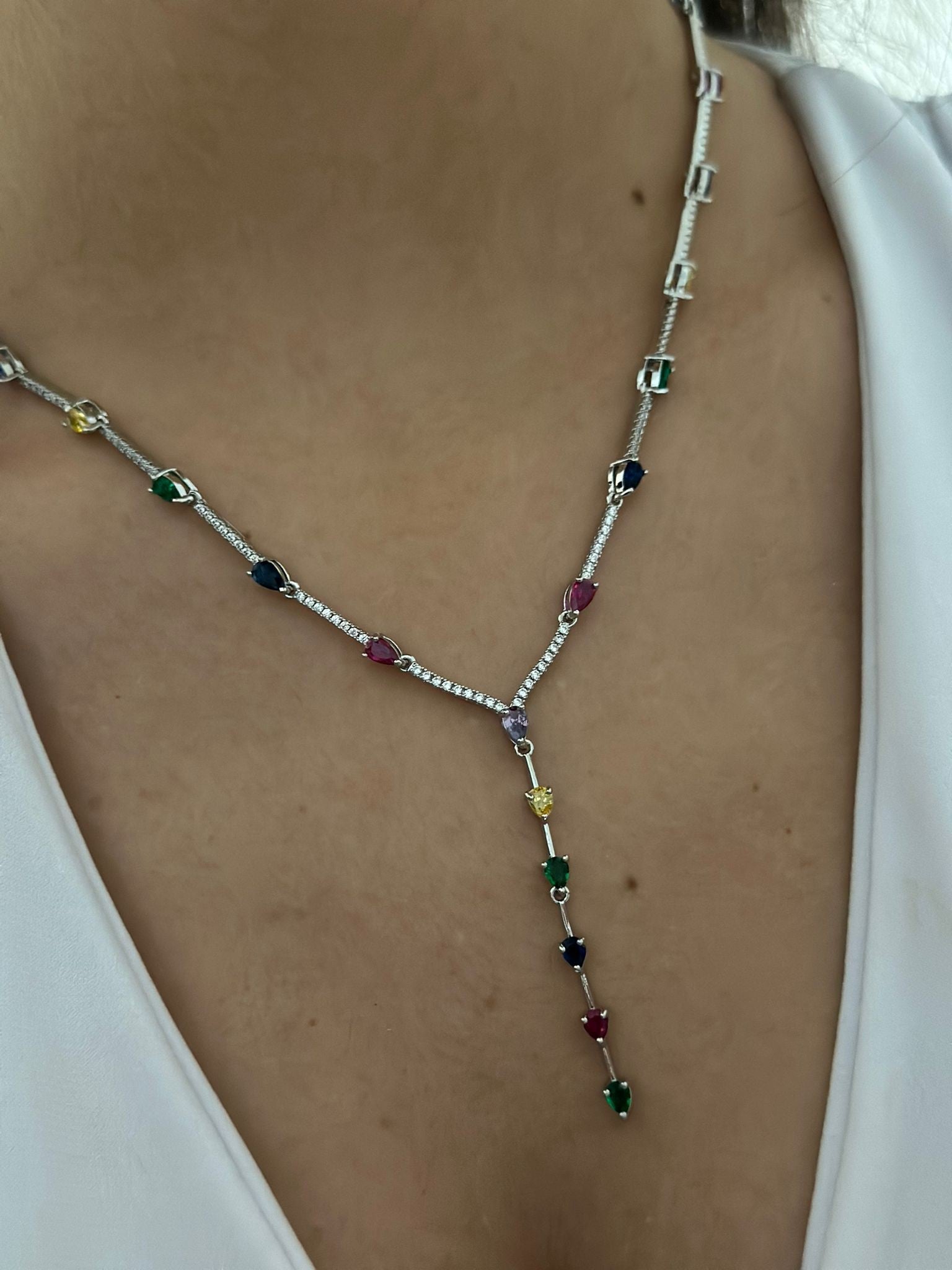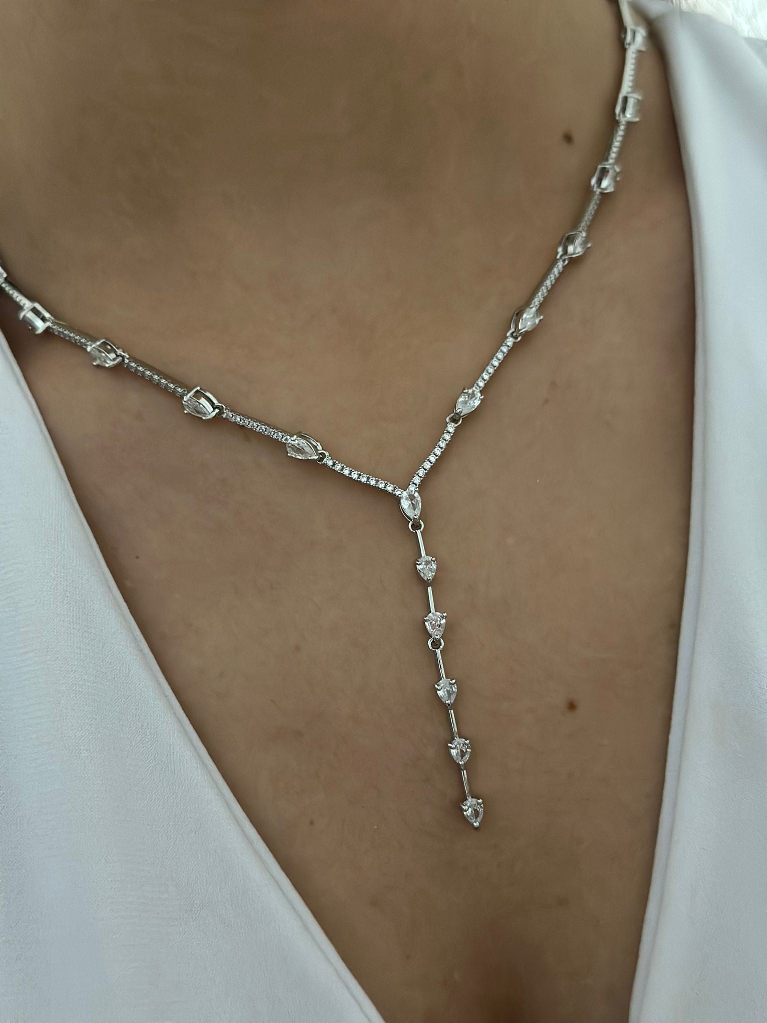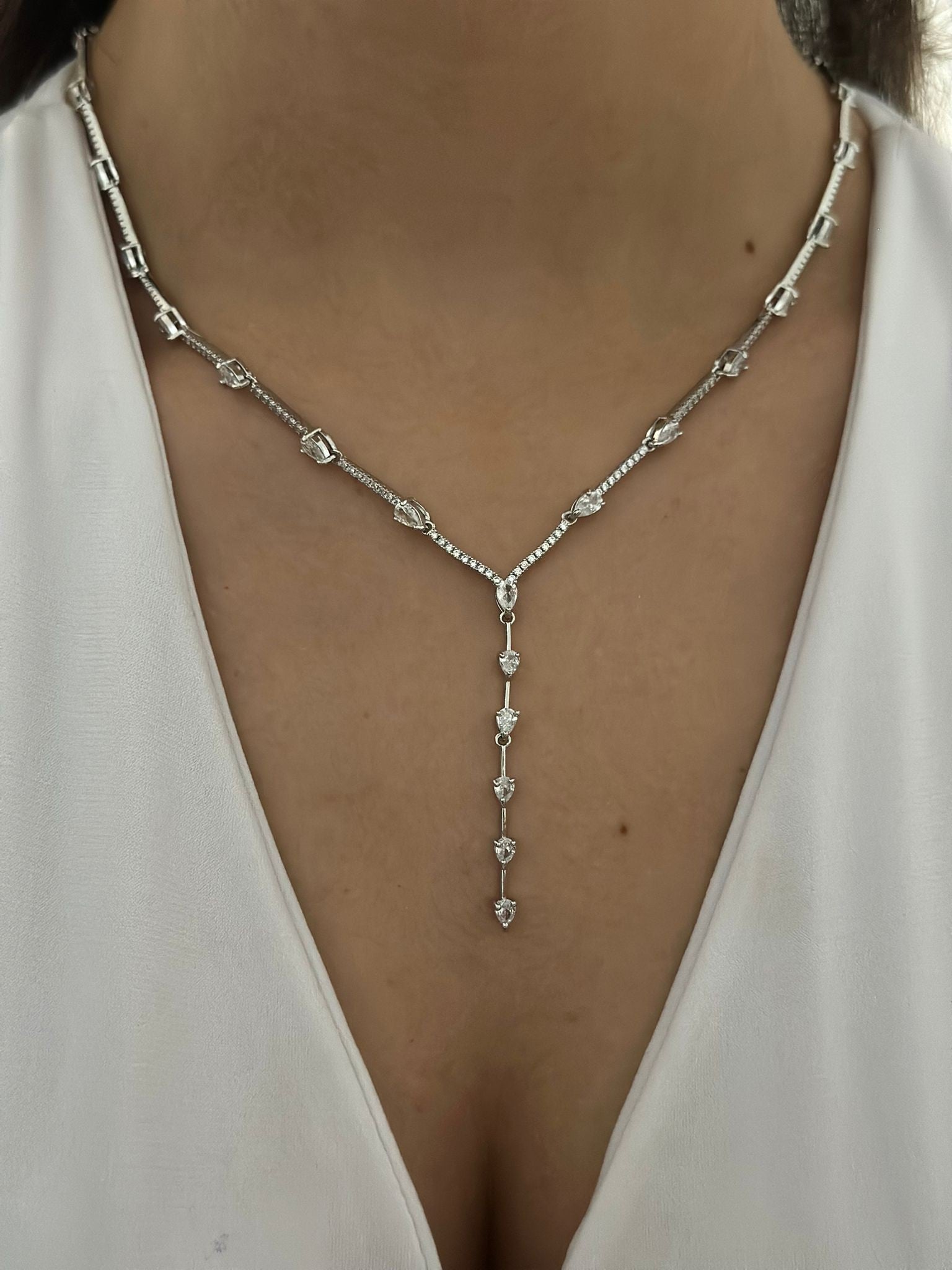 Zirkon Taş Ve Damla Taş Detaylı Çelik Y Kolye