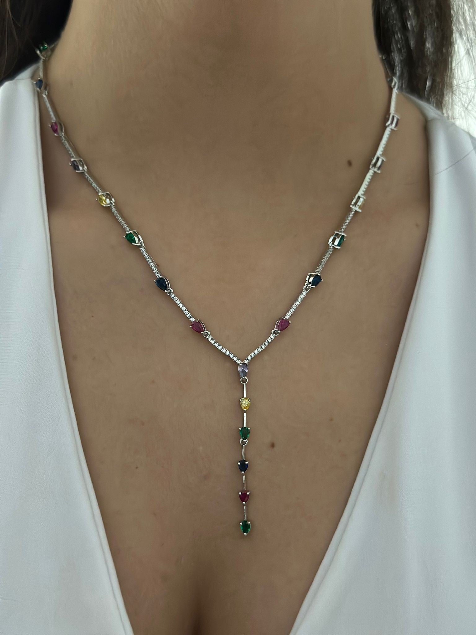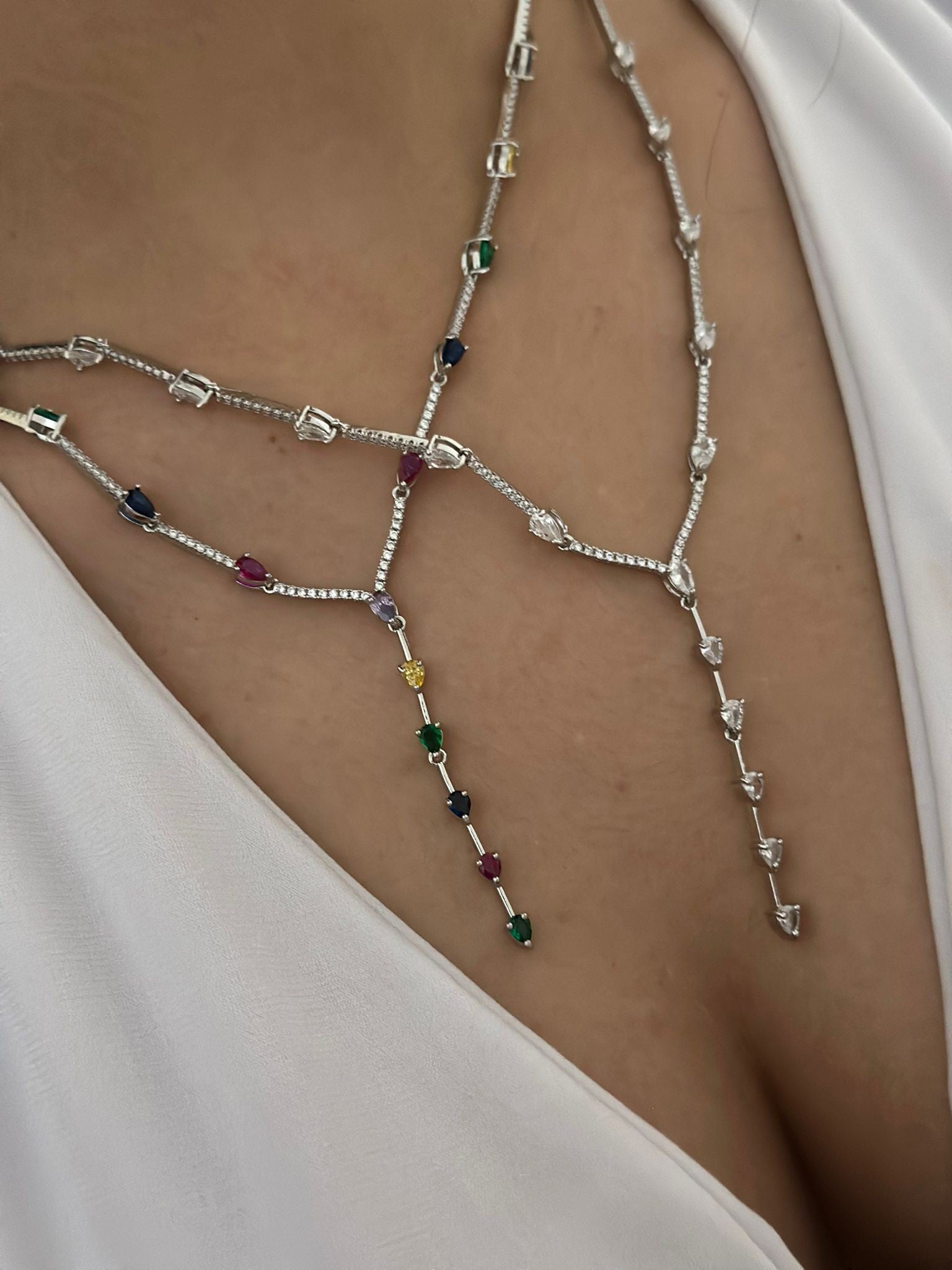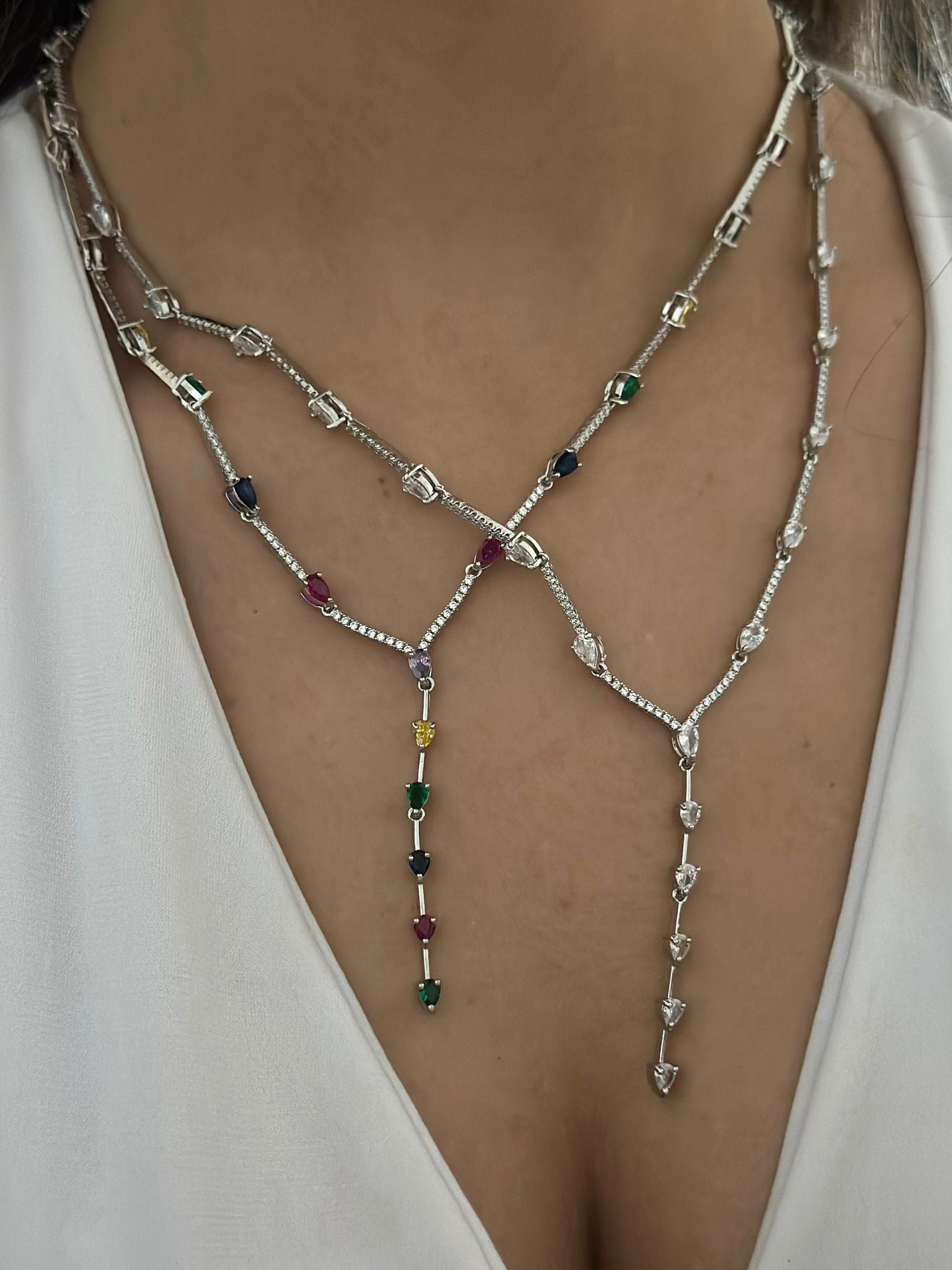 Zirkon Taş Ve Damla Taş Detaylı Çelik Y Kolye