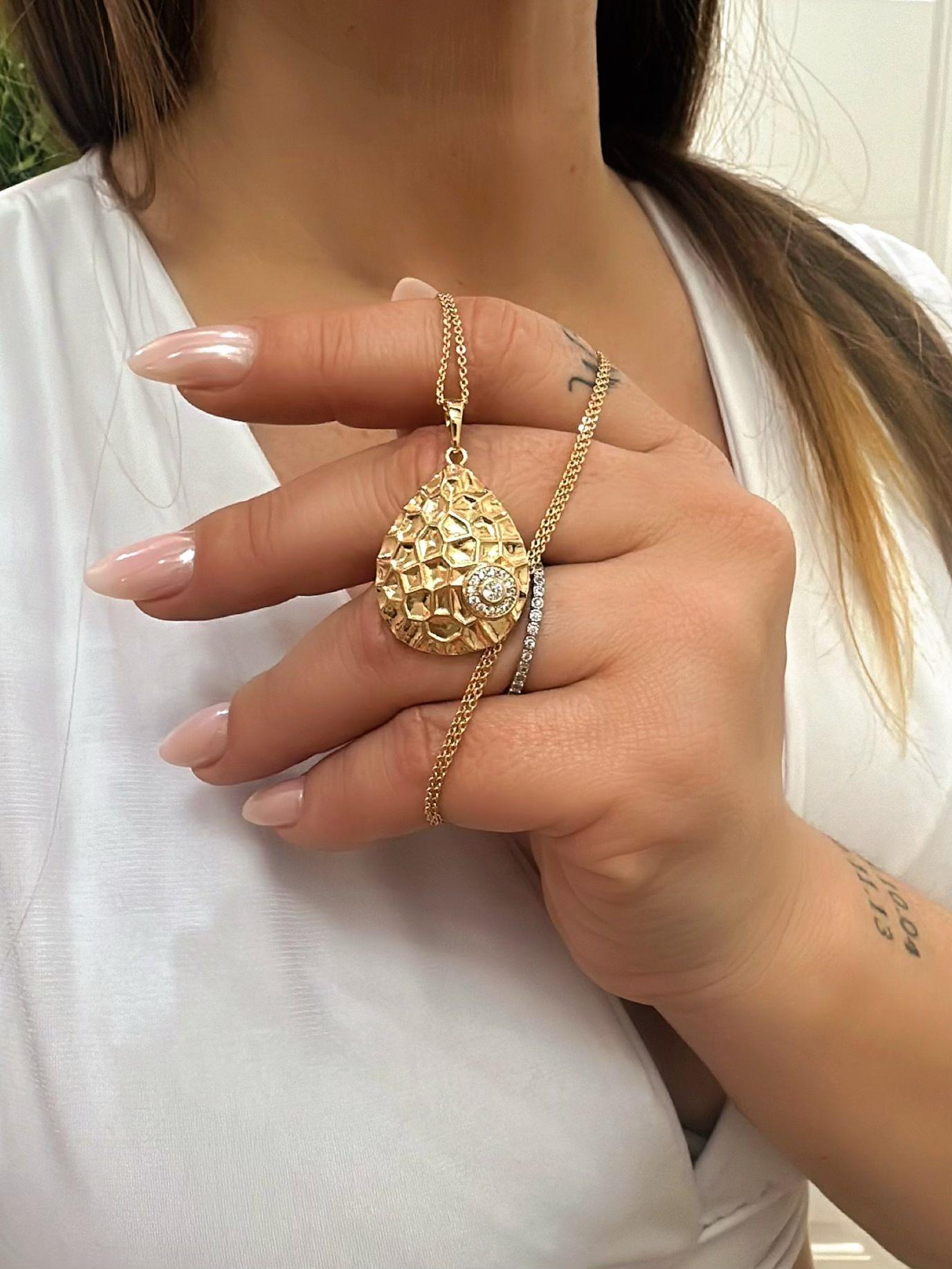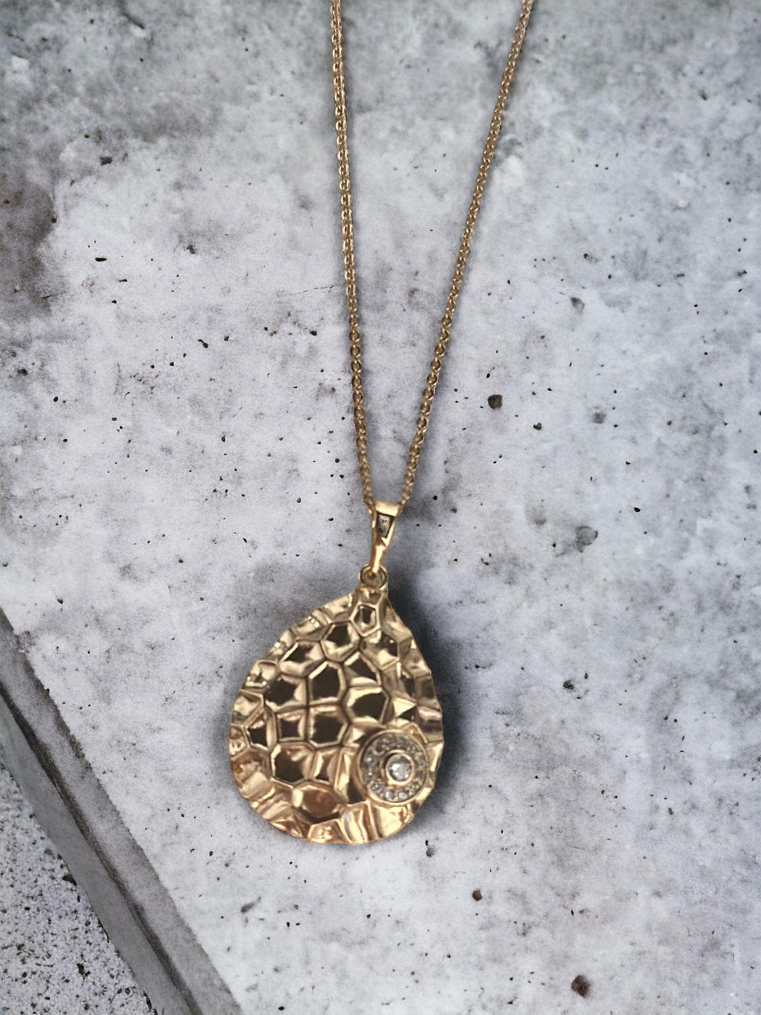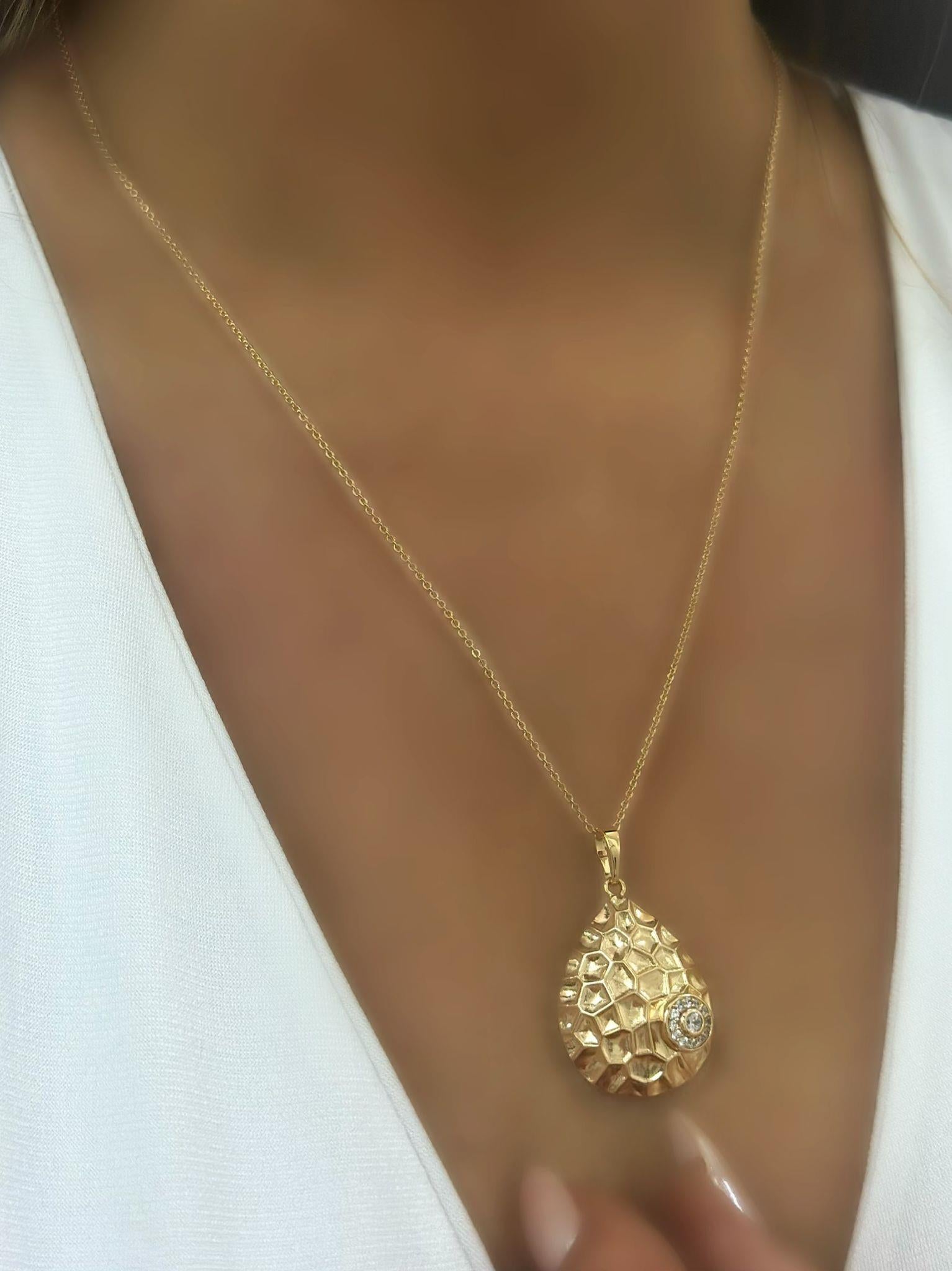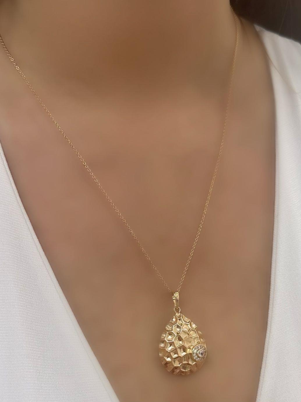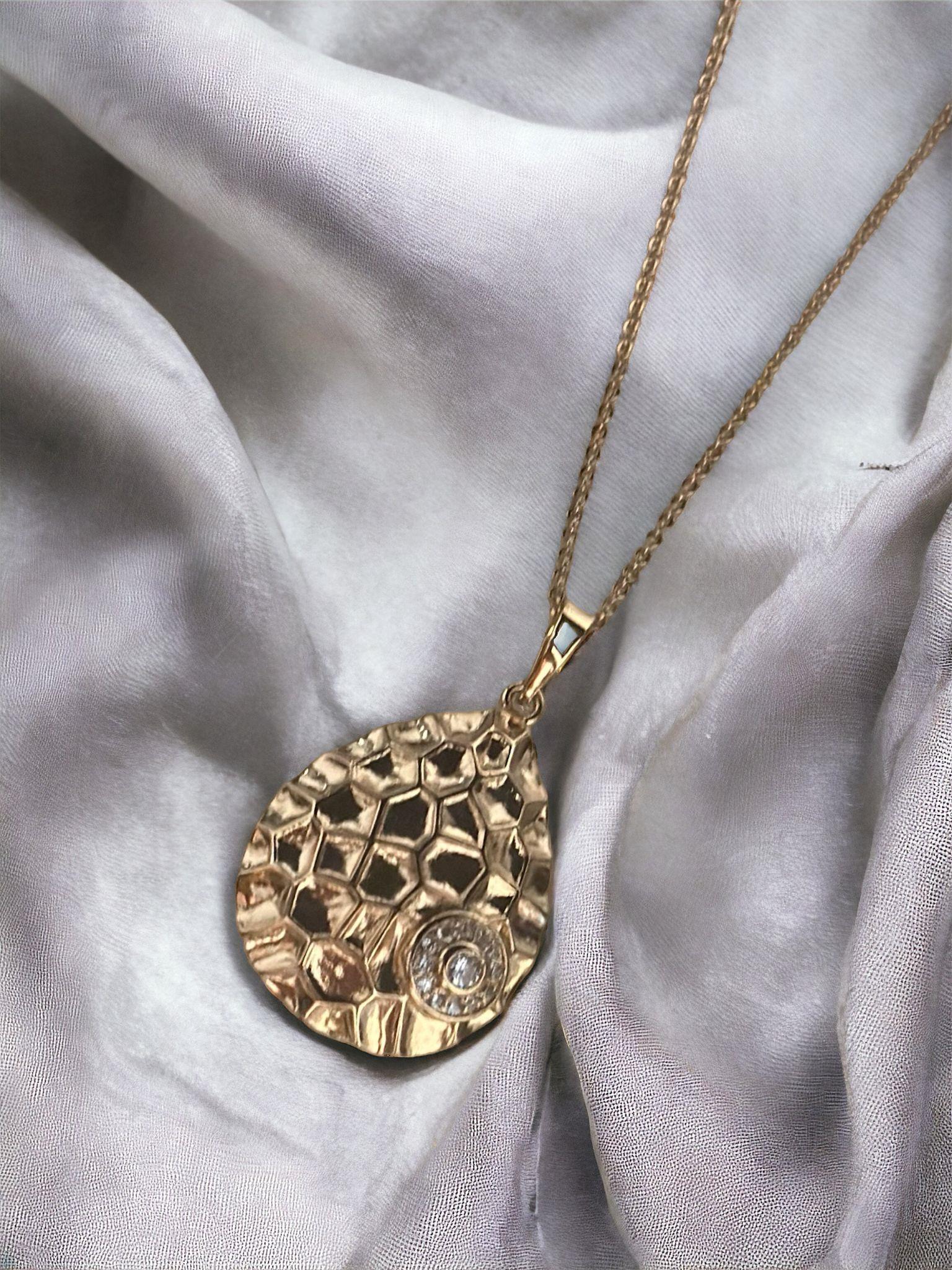 Zirkon Taş ve Petek Plaka Detaylı Damla Tuğra Kolye