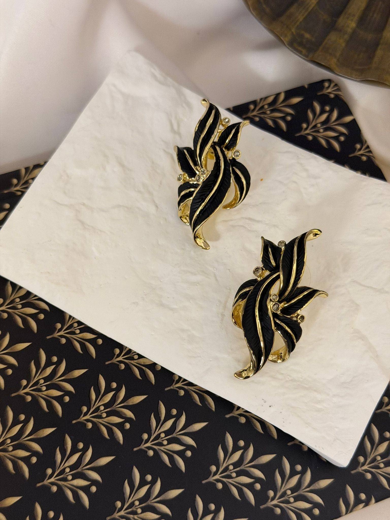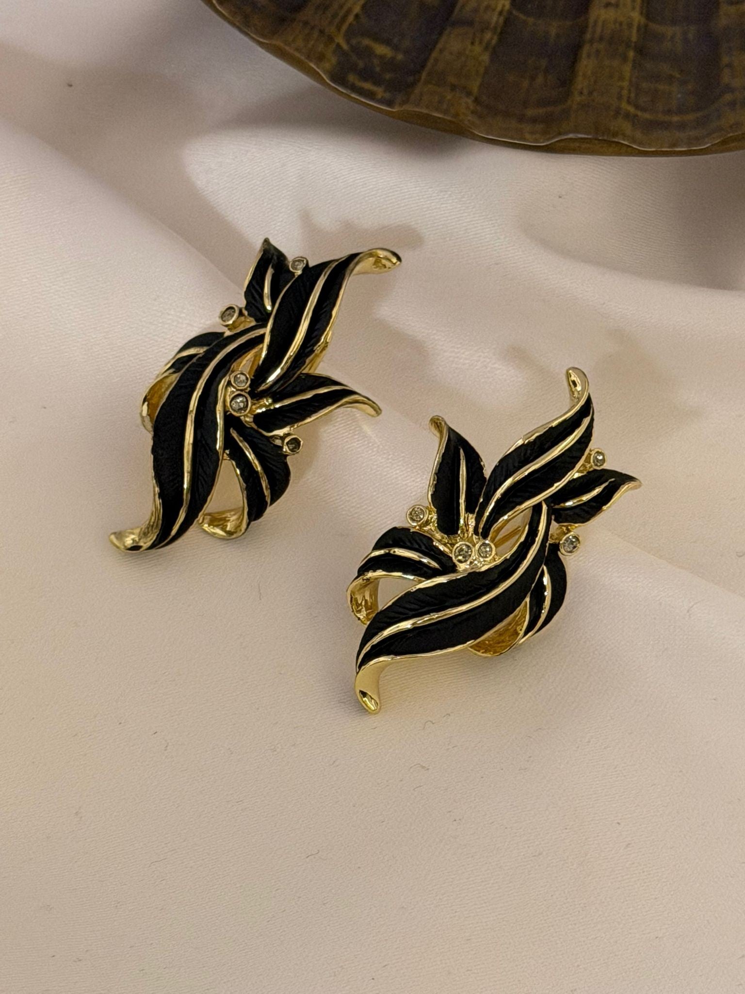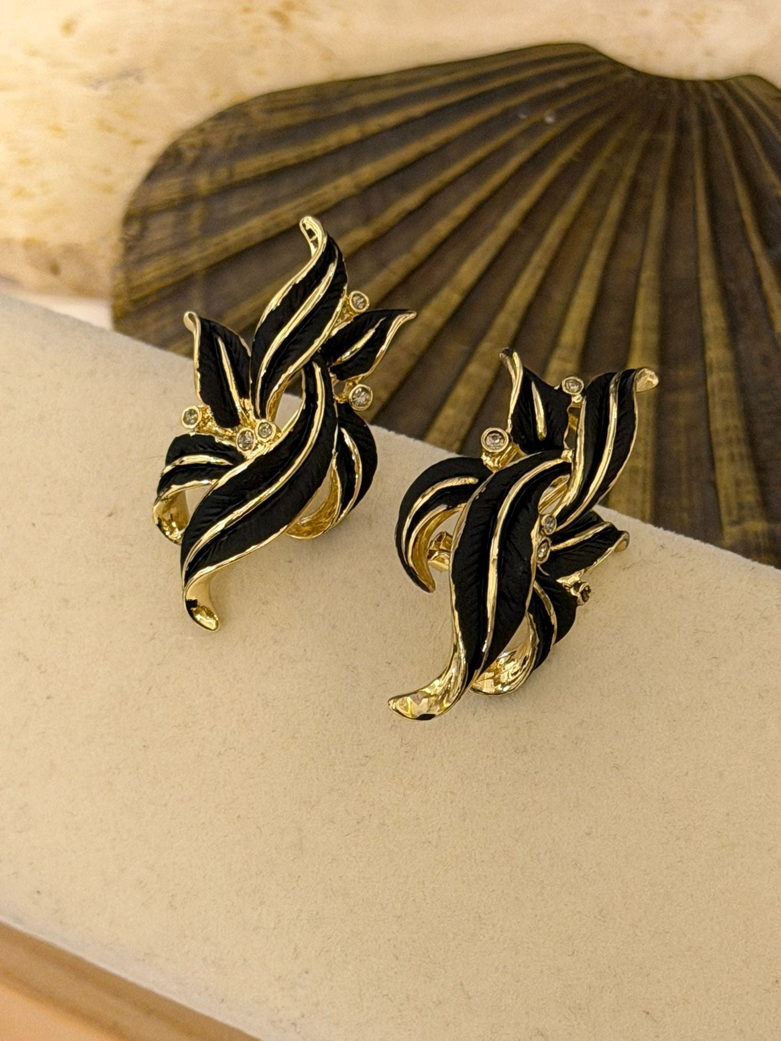 14K Altın Kaplama Siyah Yaprak Küpe