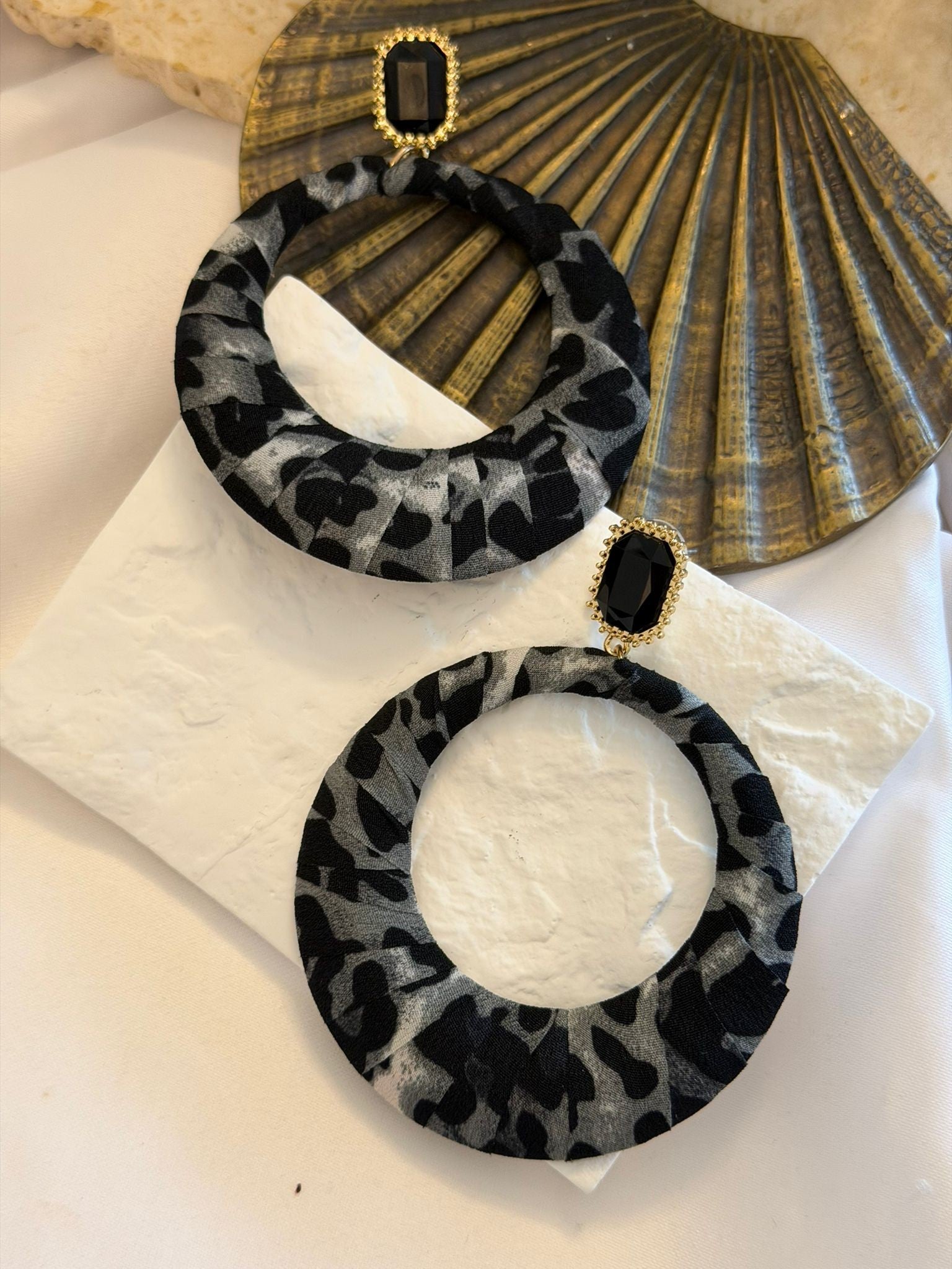 Baget Taş Detay Pirinç Kaplama Küpe