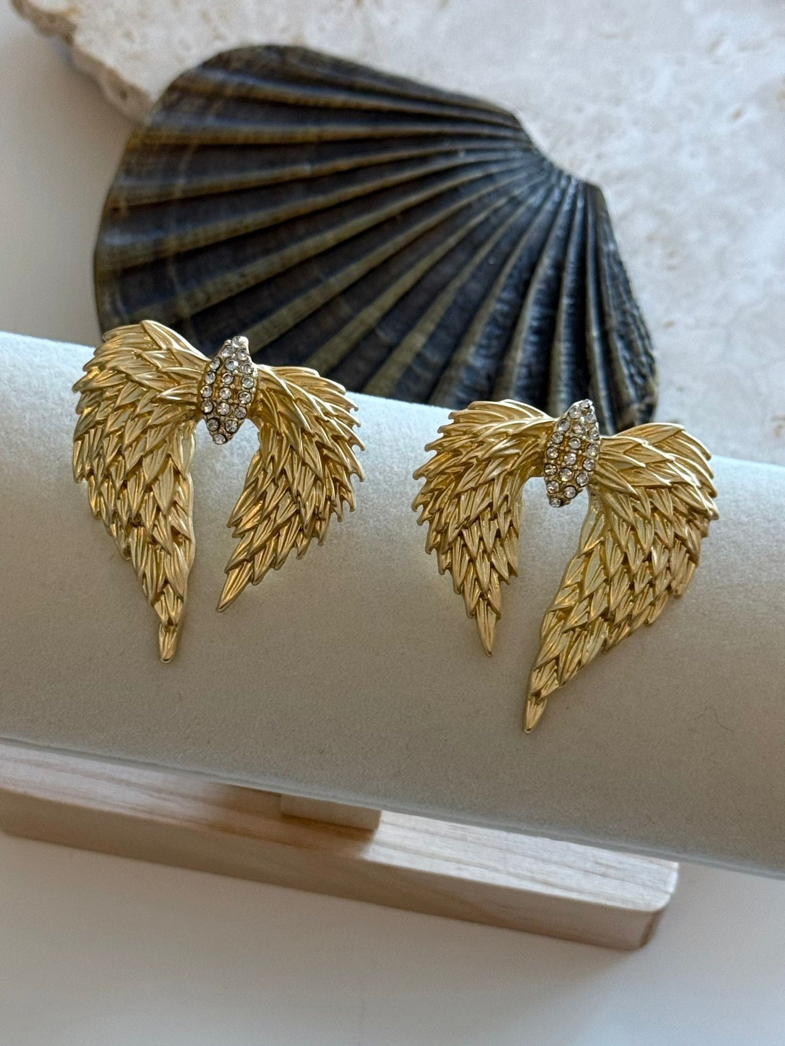 Gold Melek Kanadı ve Zirkon Taş Detaylı Küpe (Pirinç Kaplama)