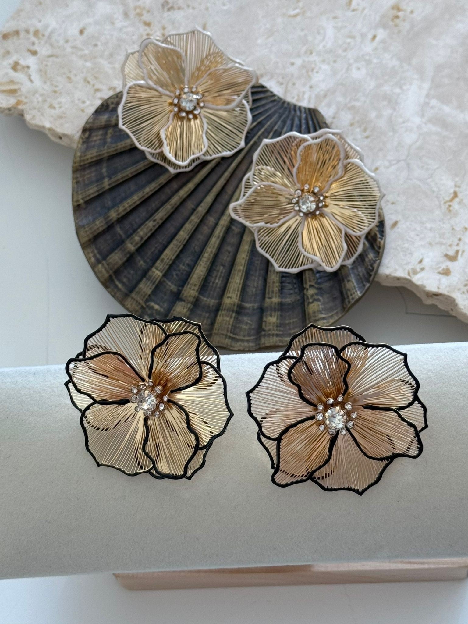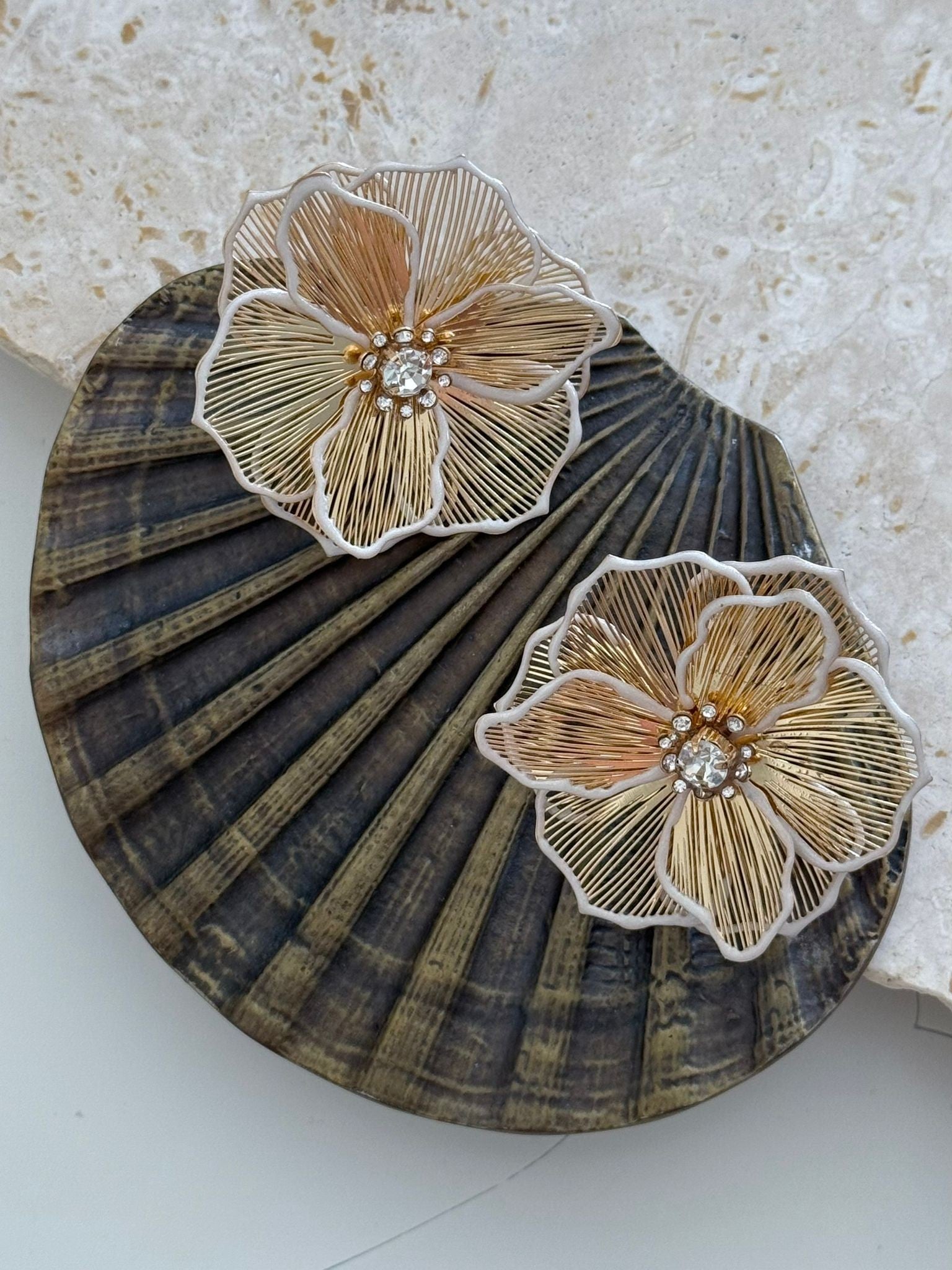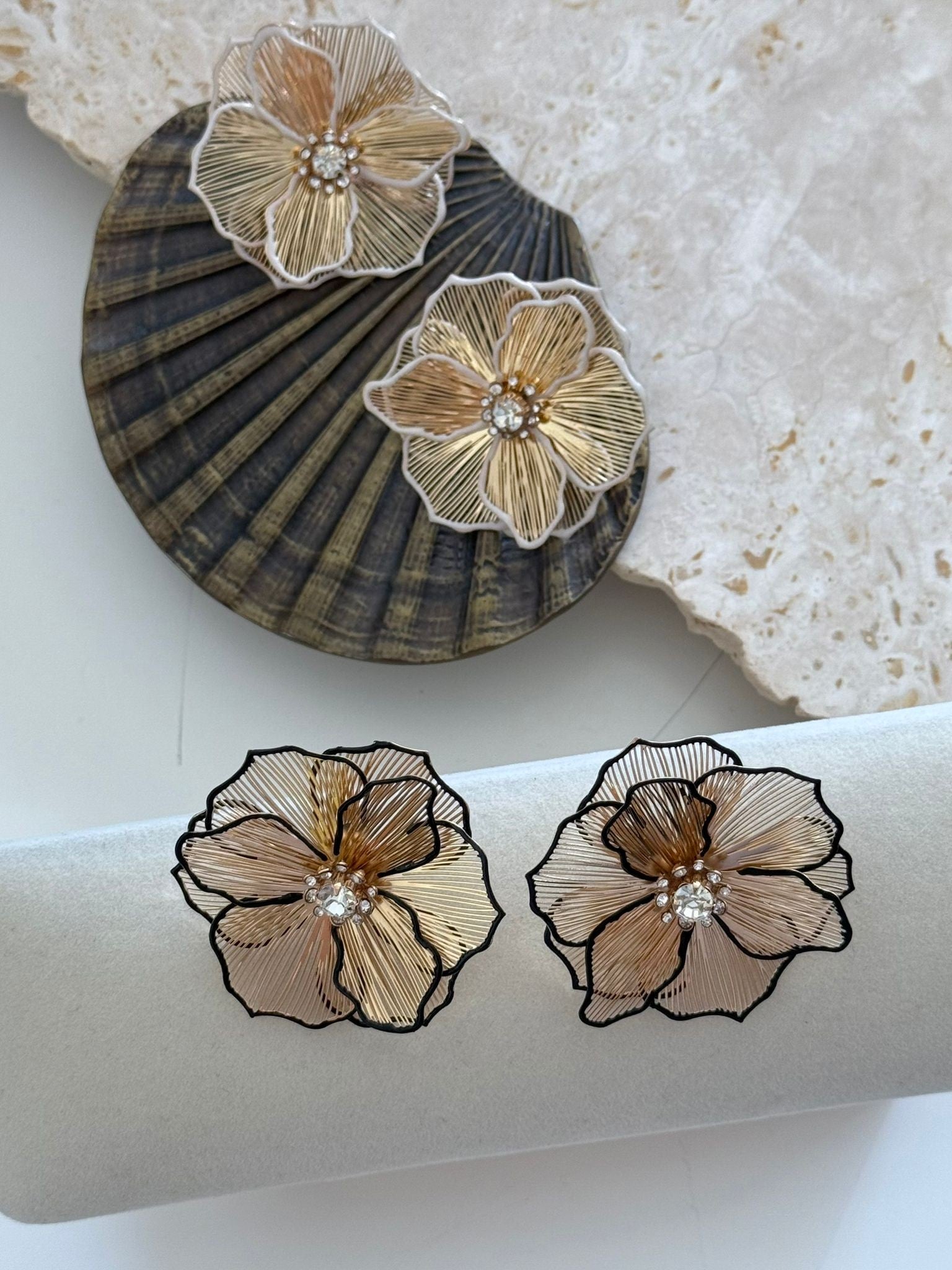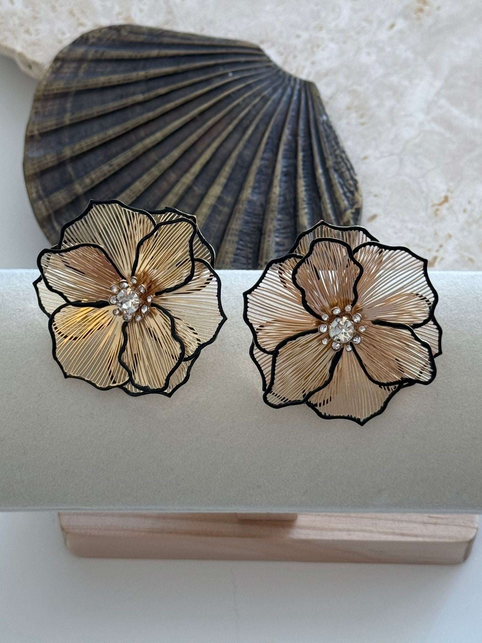 Gold Tel Plaka Detaylı Çüçek Küpe (Pirinç Kaplama)