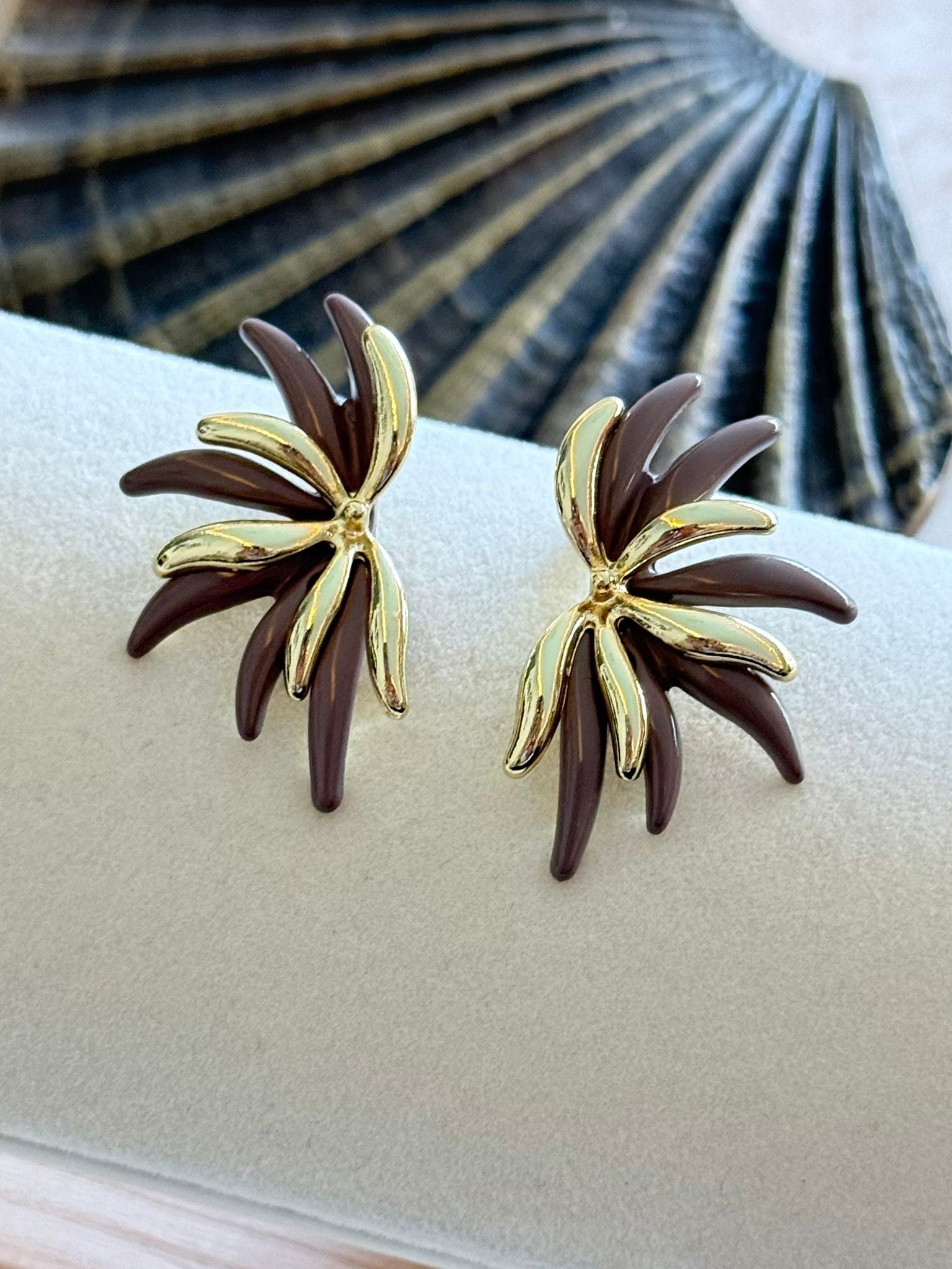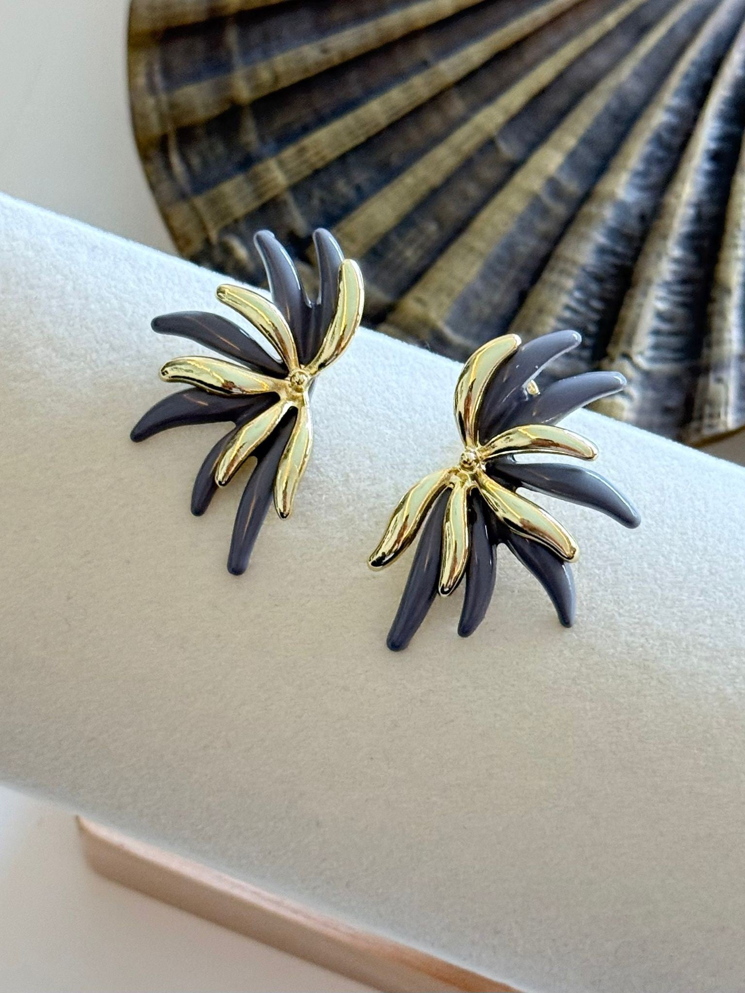 Gold ve Renkli Çubuk Plaka Detaylı Tasarım Küpe (Pirinç Kaplama)