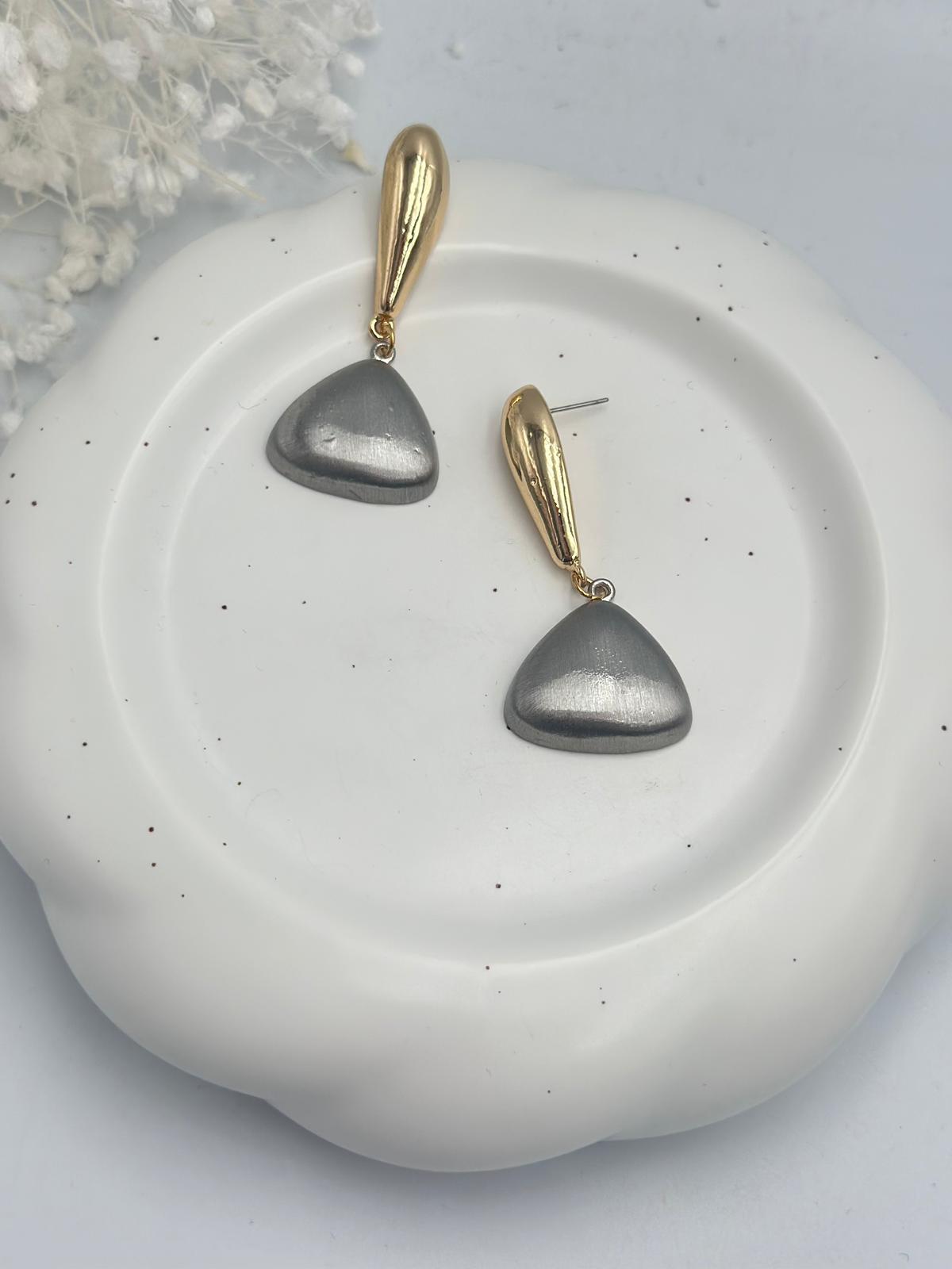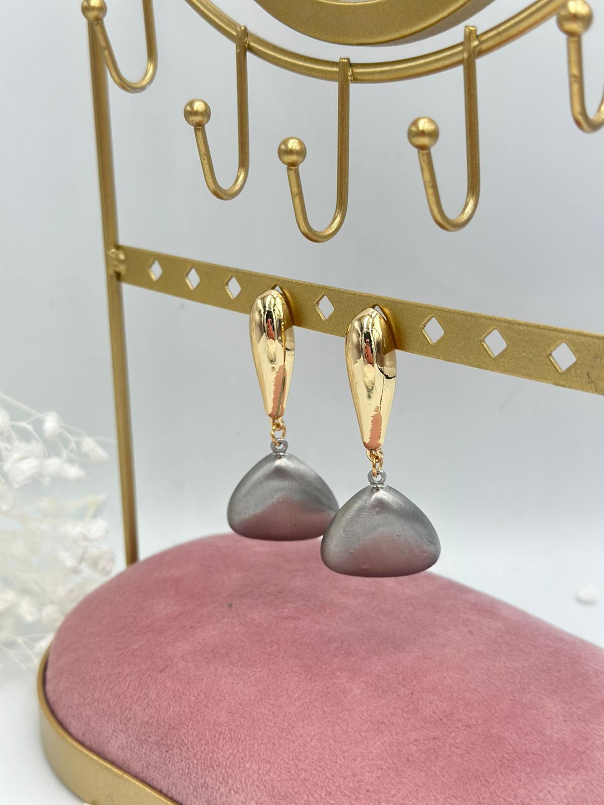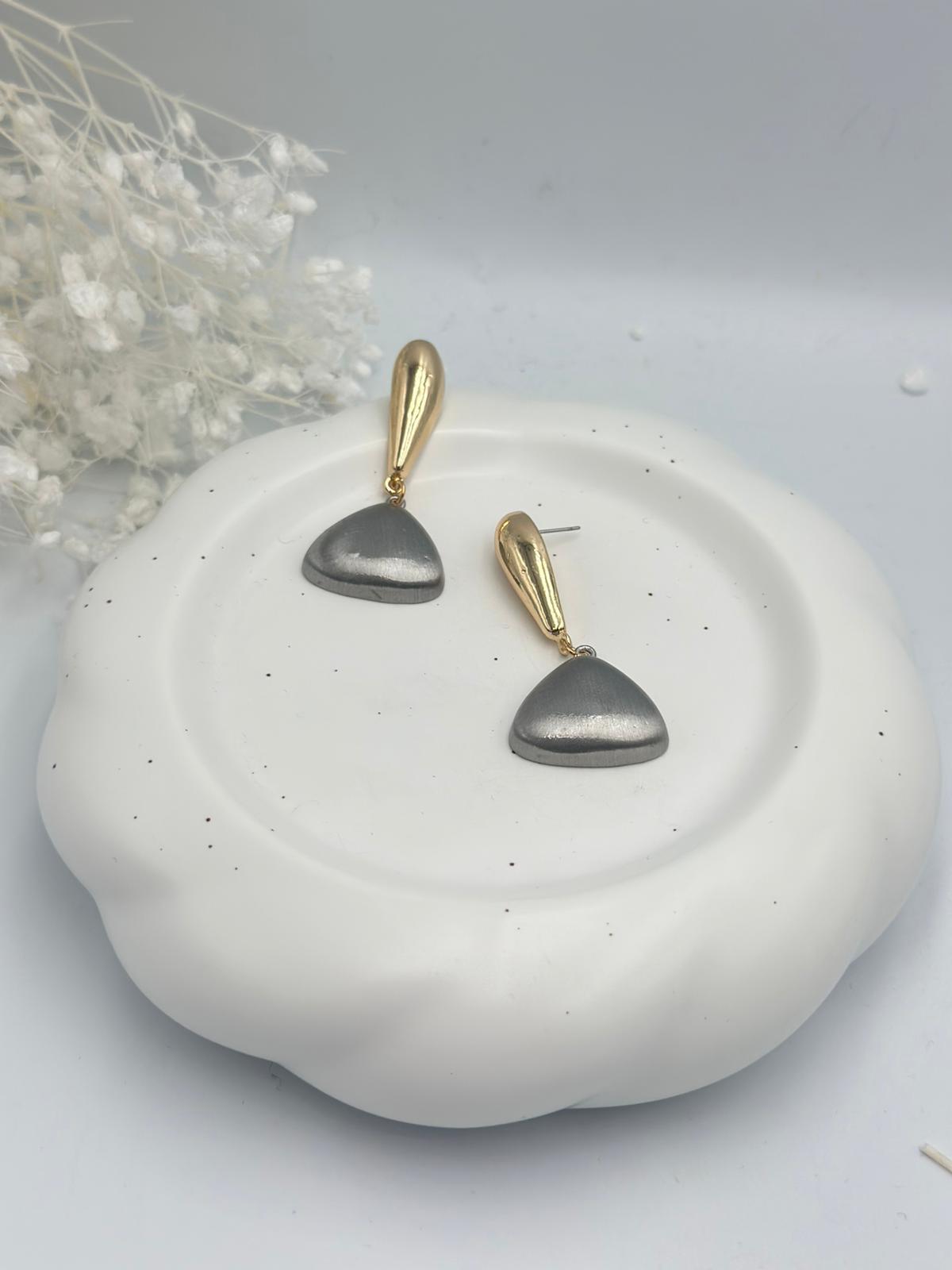 İki Renkli Sallantılı Üçgen Küpe (Pirinç Kaplama)