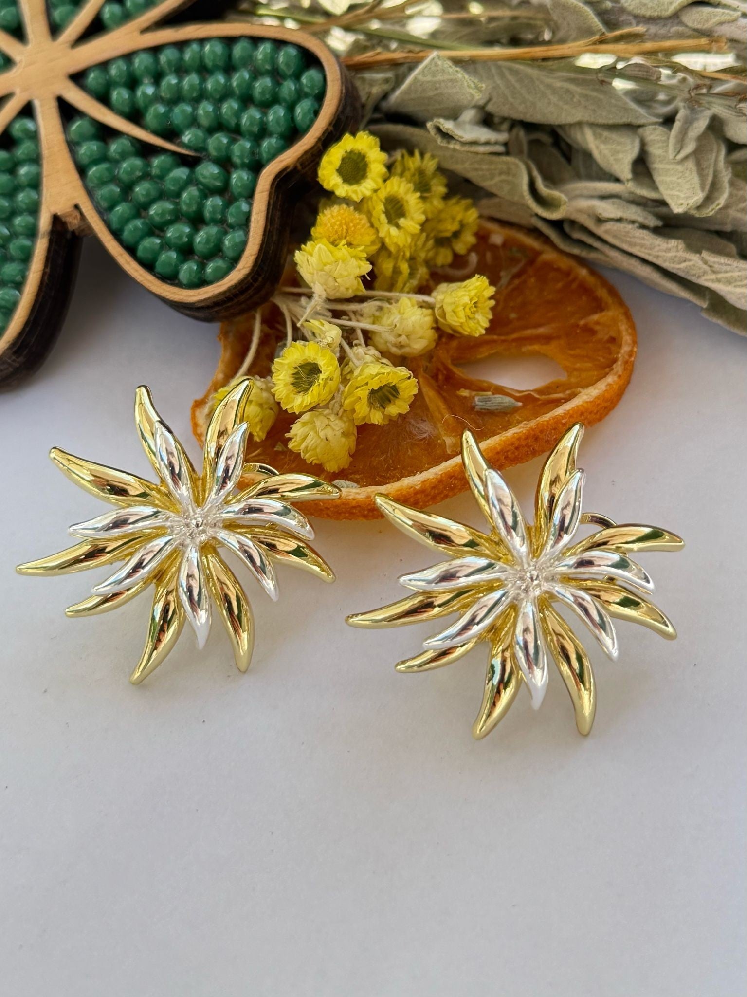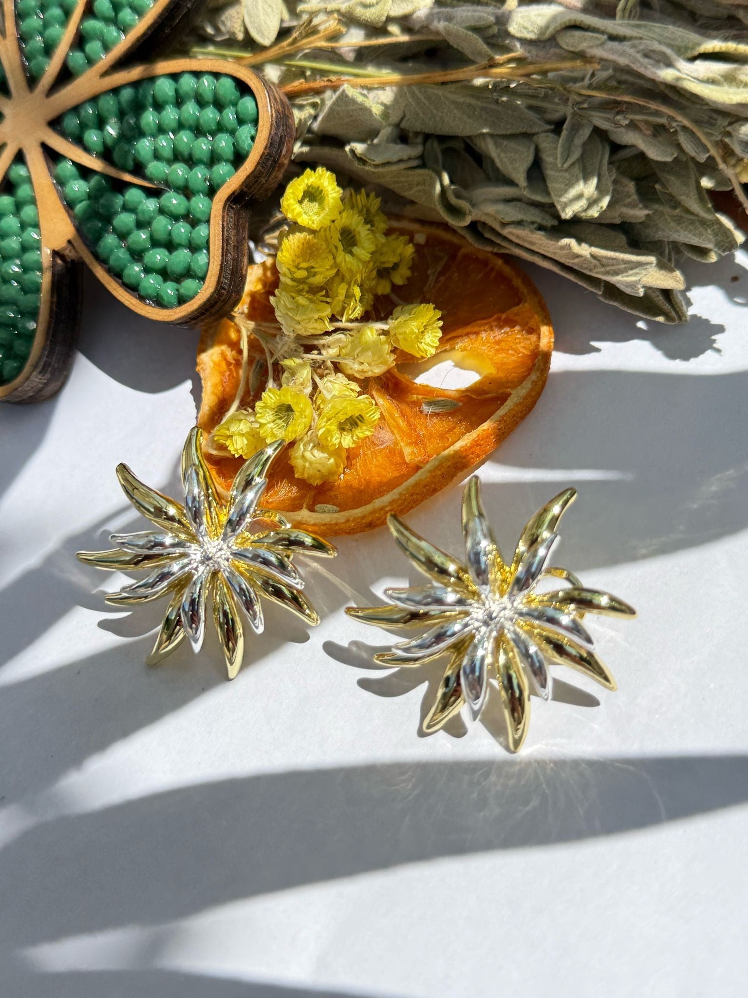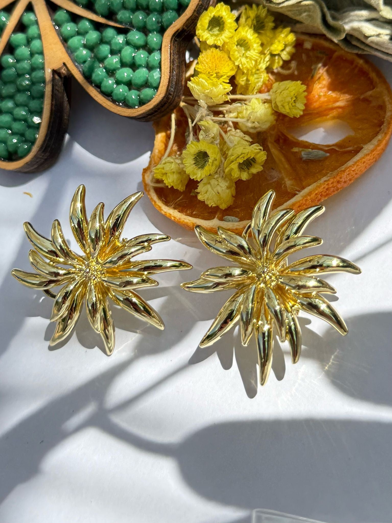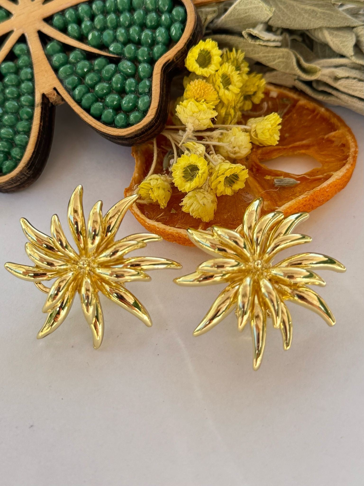 Premium Serisi Çubuk Plaka Detaylı Çiçek Küpe