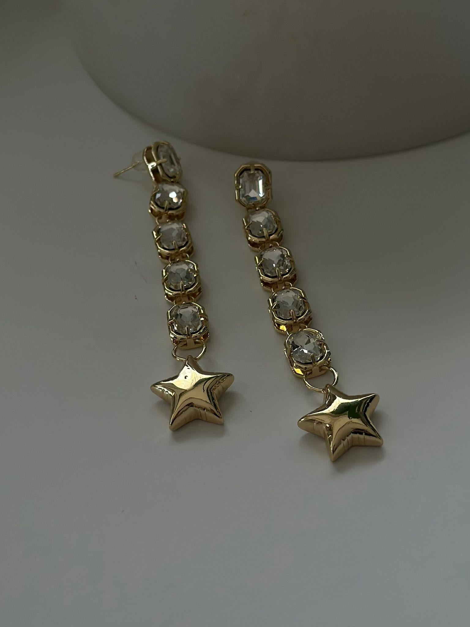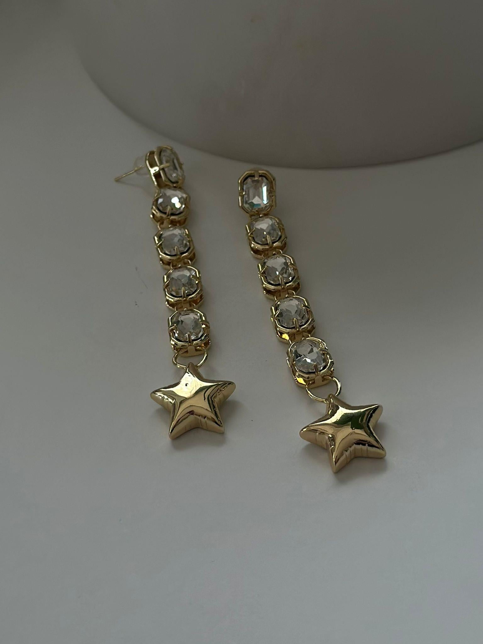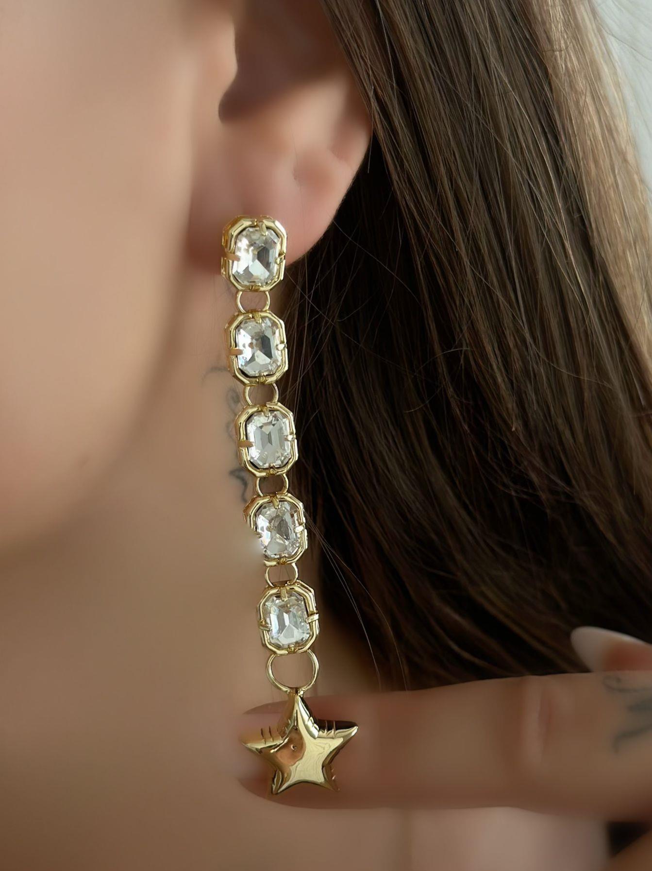 Sallantılı Baget Taş Ve Yıldız Detaylı Küpe (Çelik)