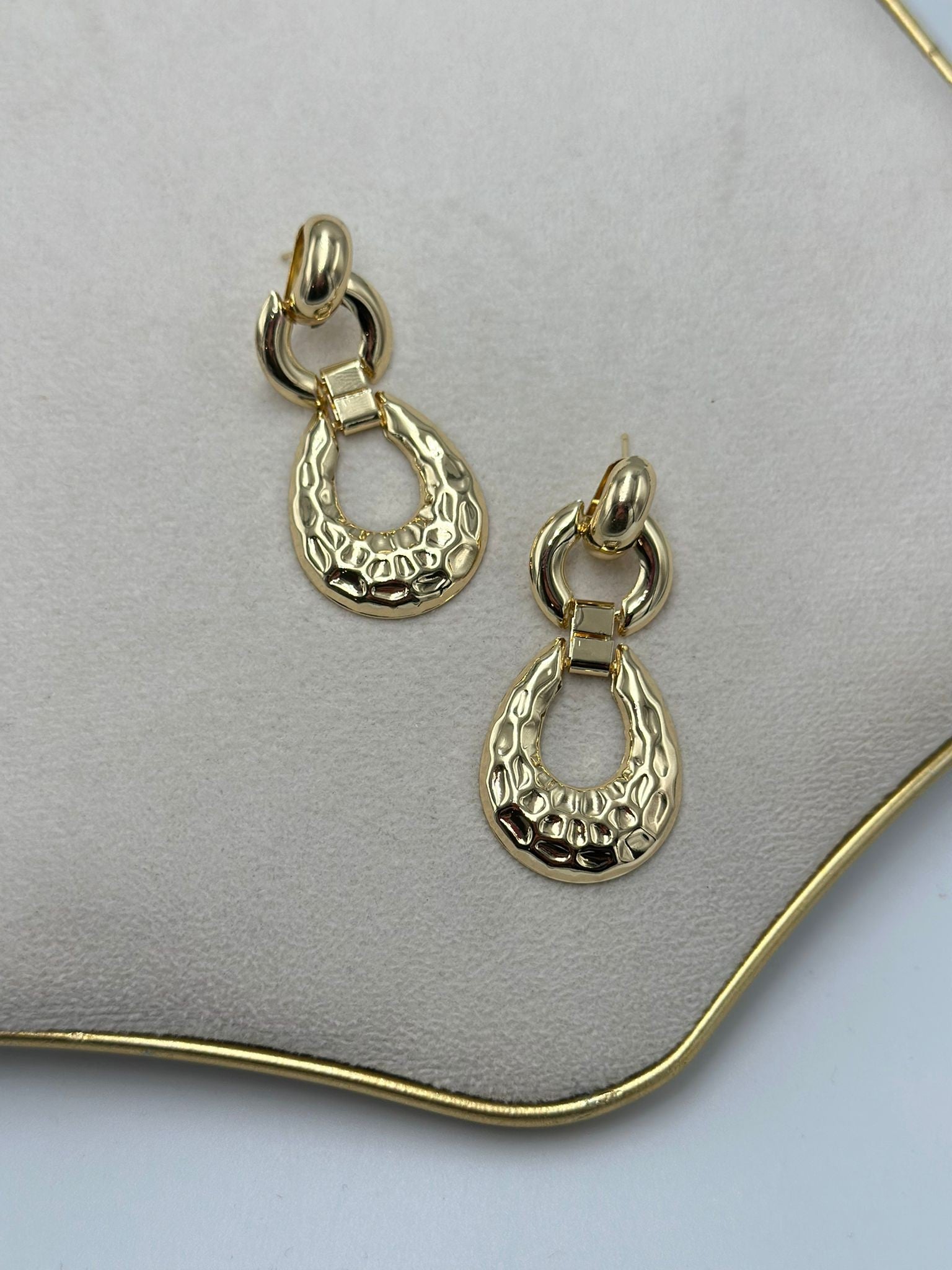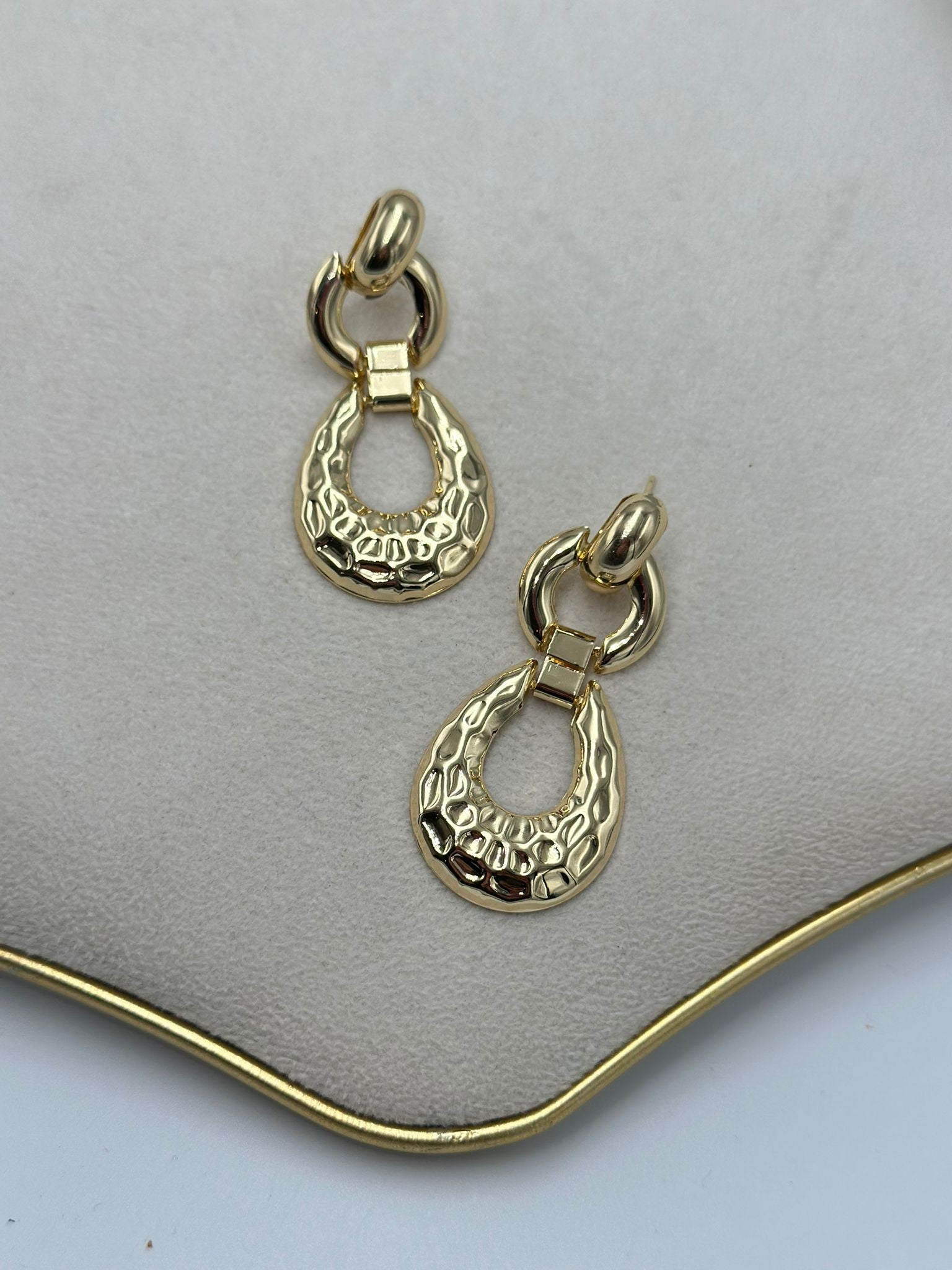 Sallantılı Dövme Plaka Küpe (Pirinç Kaplama)