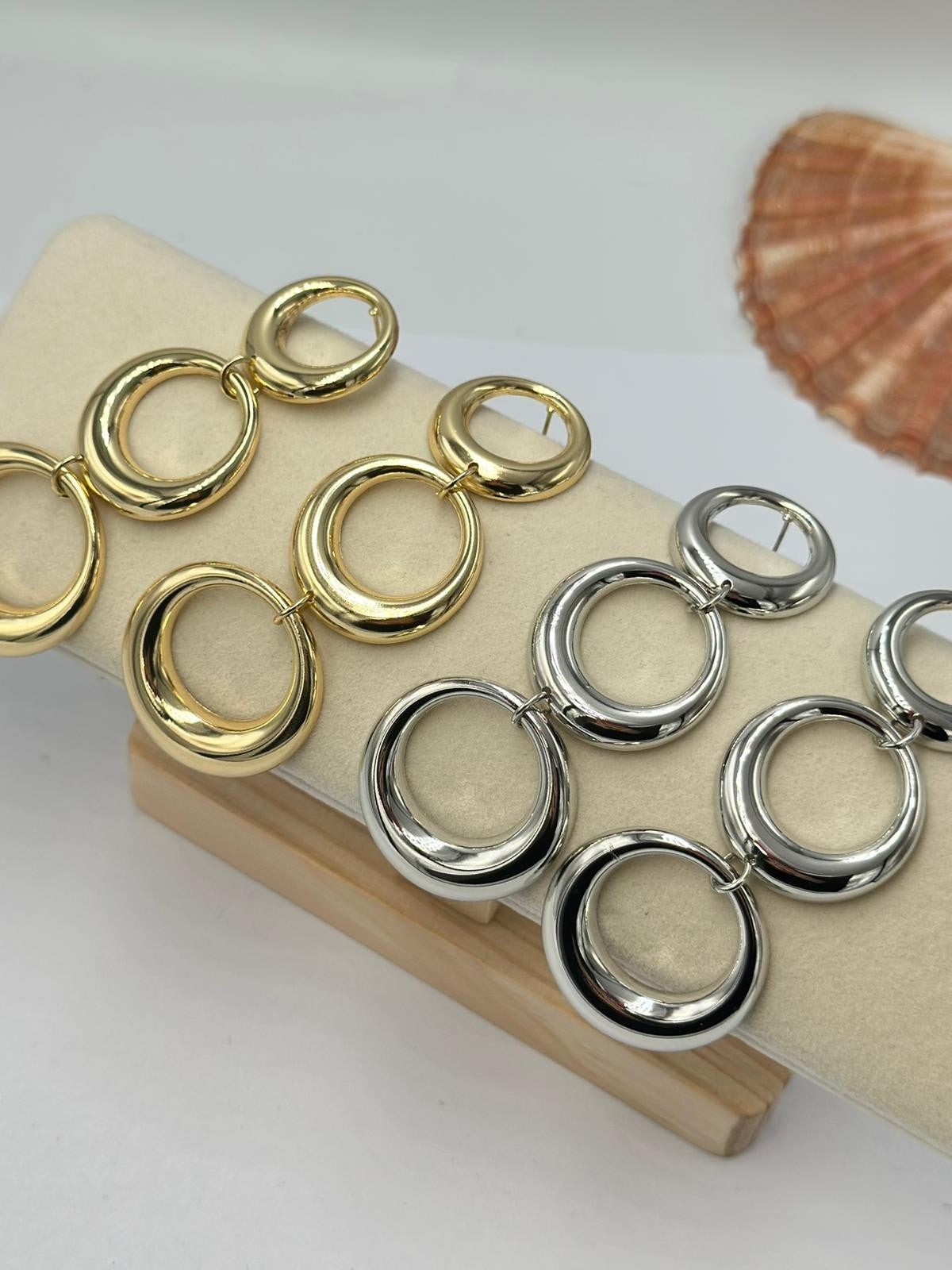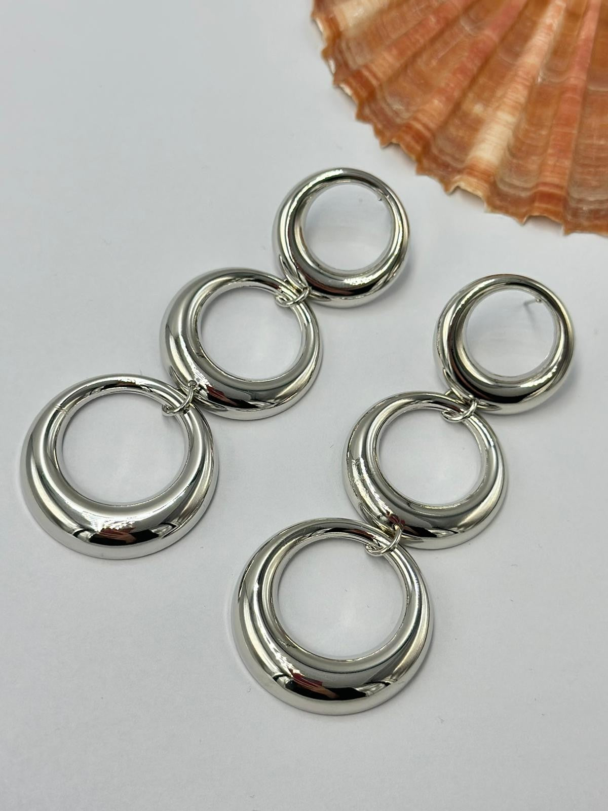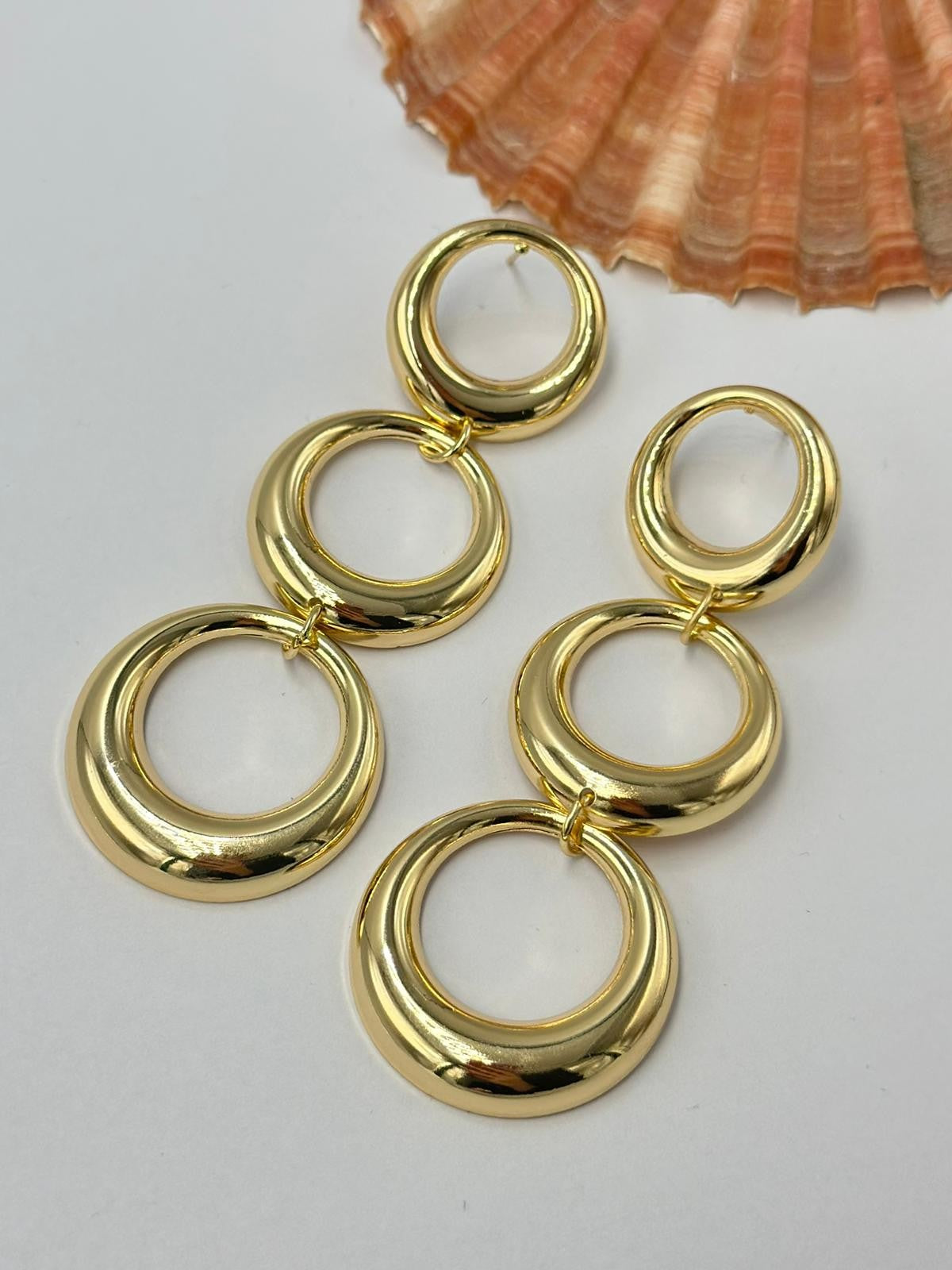 Sallantılı Sıralı Daire Detay Küpe (Pirinç Kaplama)