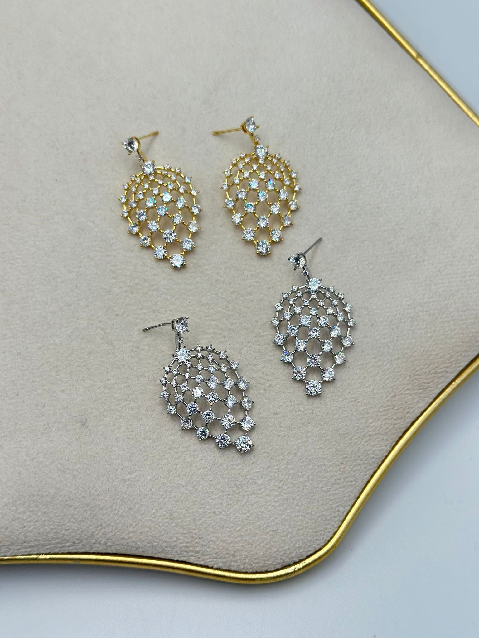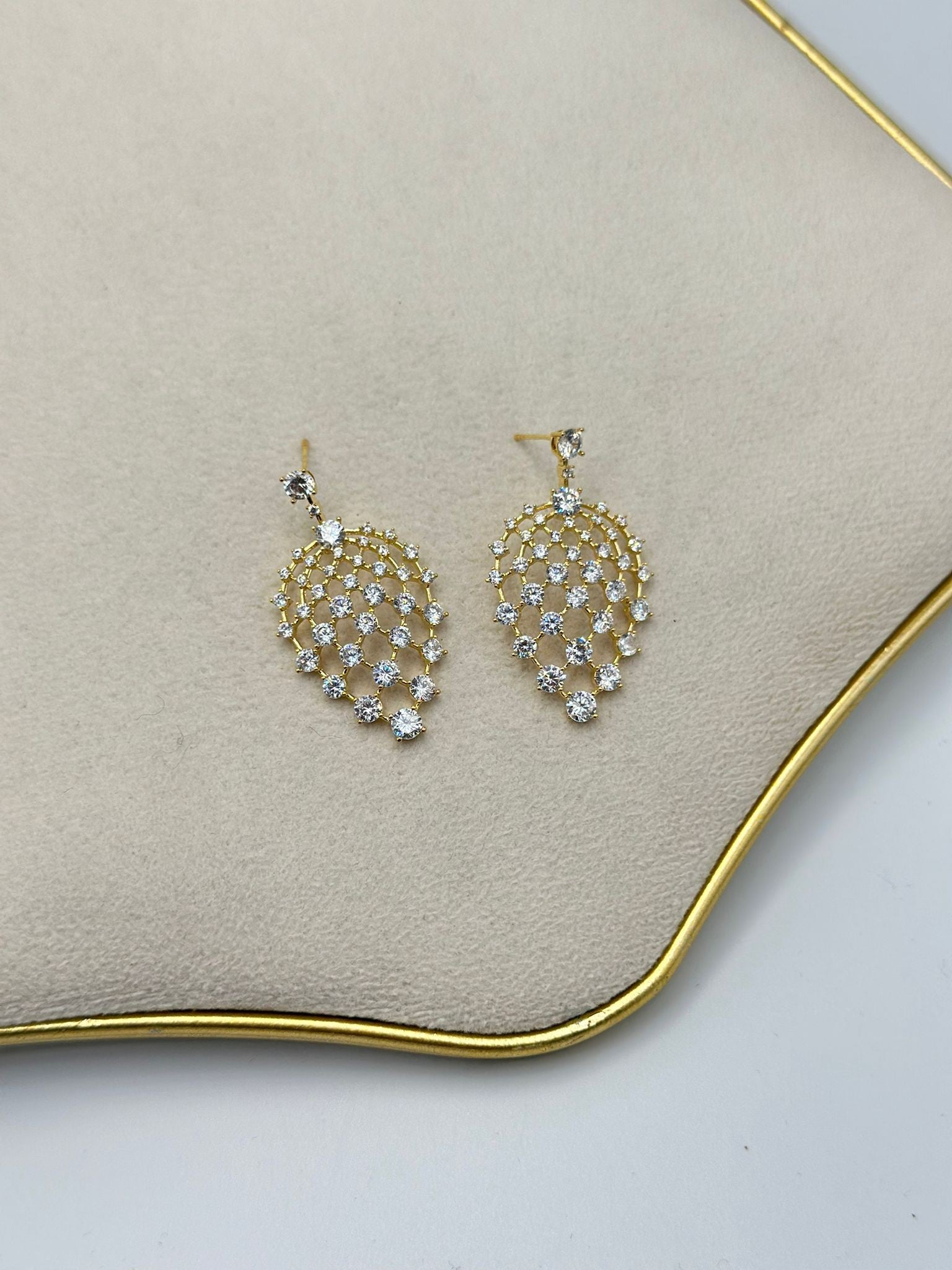 Tasarım Tek Taş Detay Sallantılı Altın Kaplama Küpe