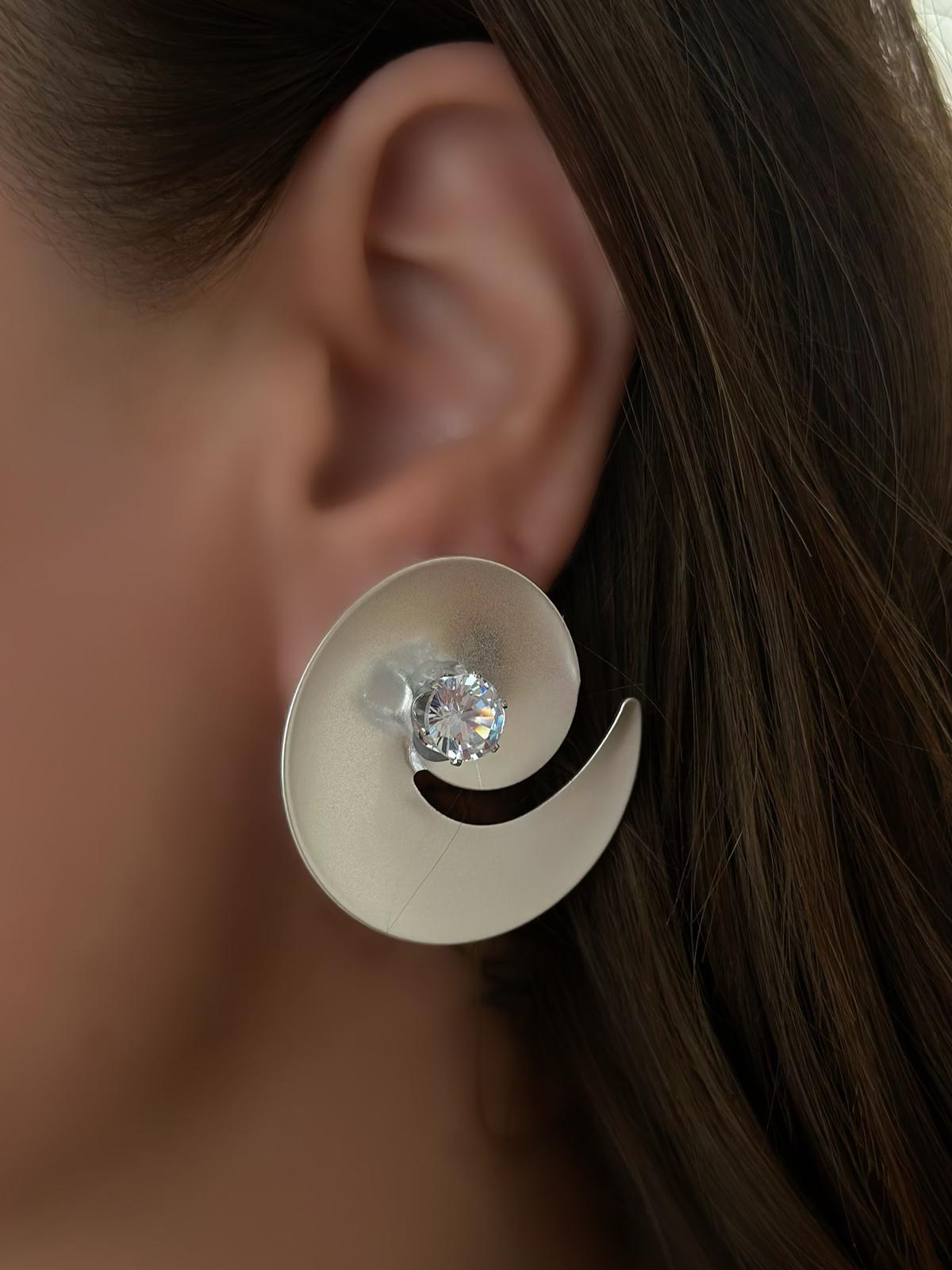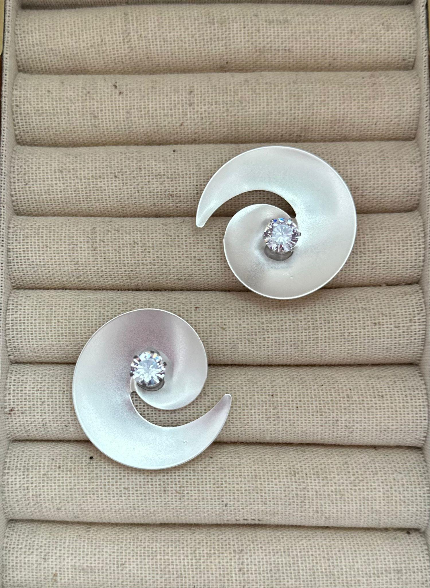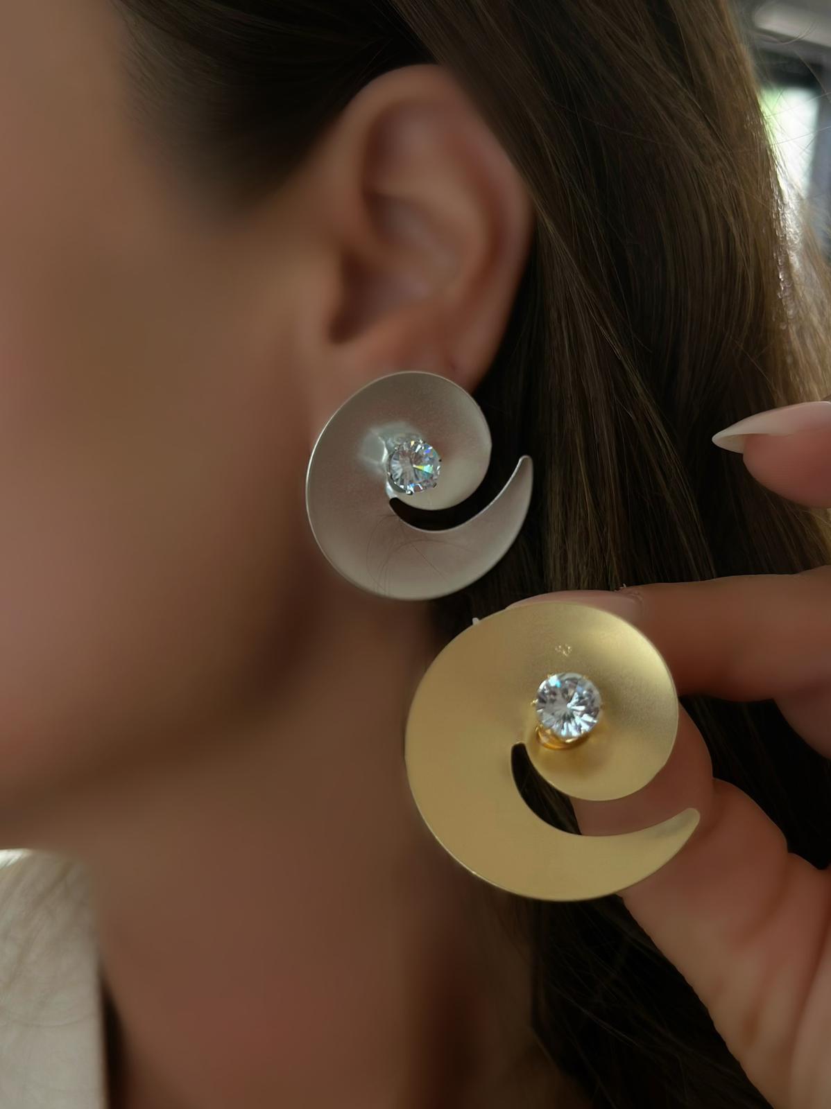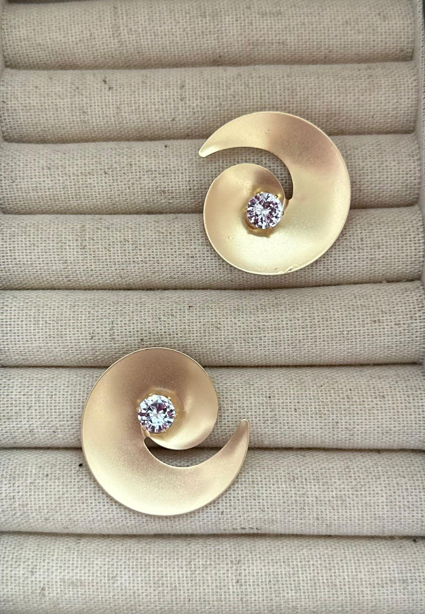Tek Taş Detaylı Mat Otantik Küpe (Pirinç Kaplama)
