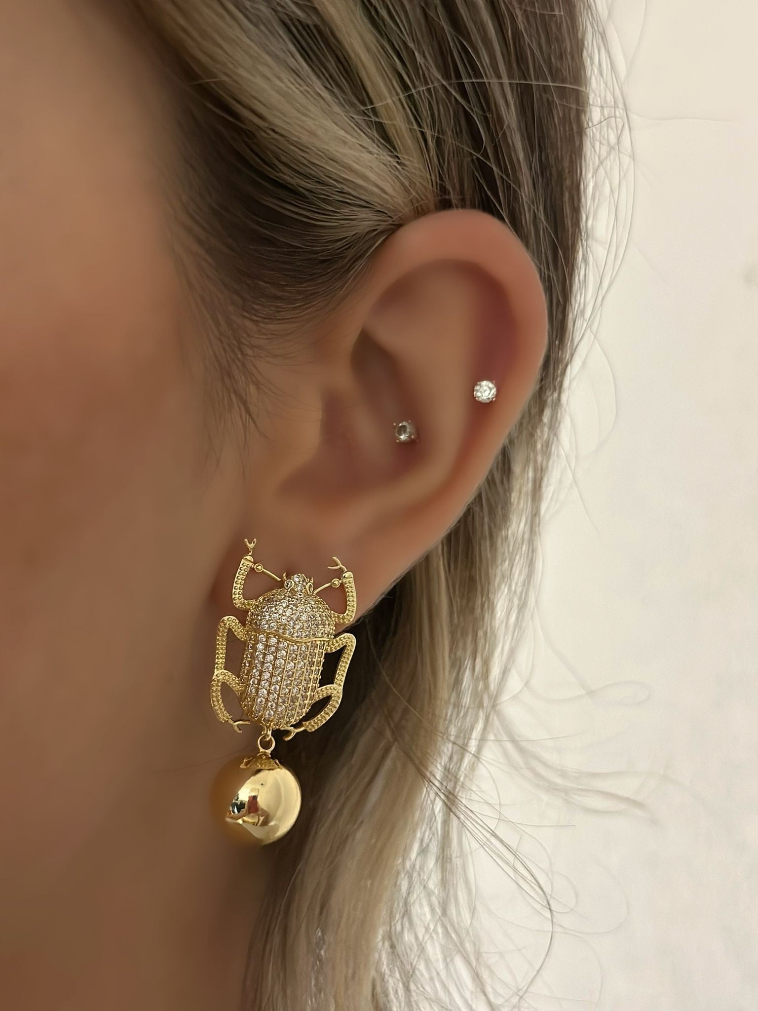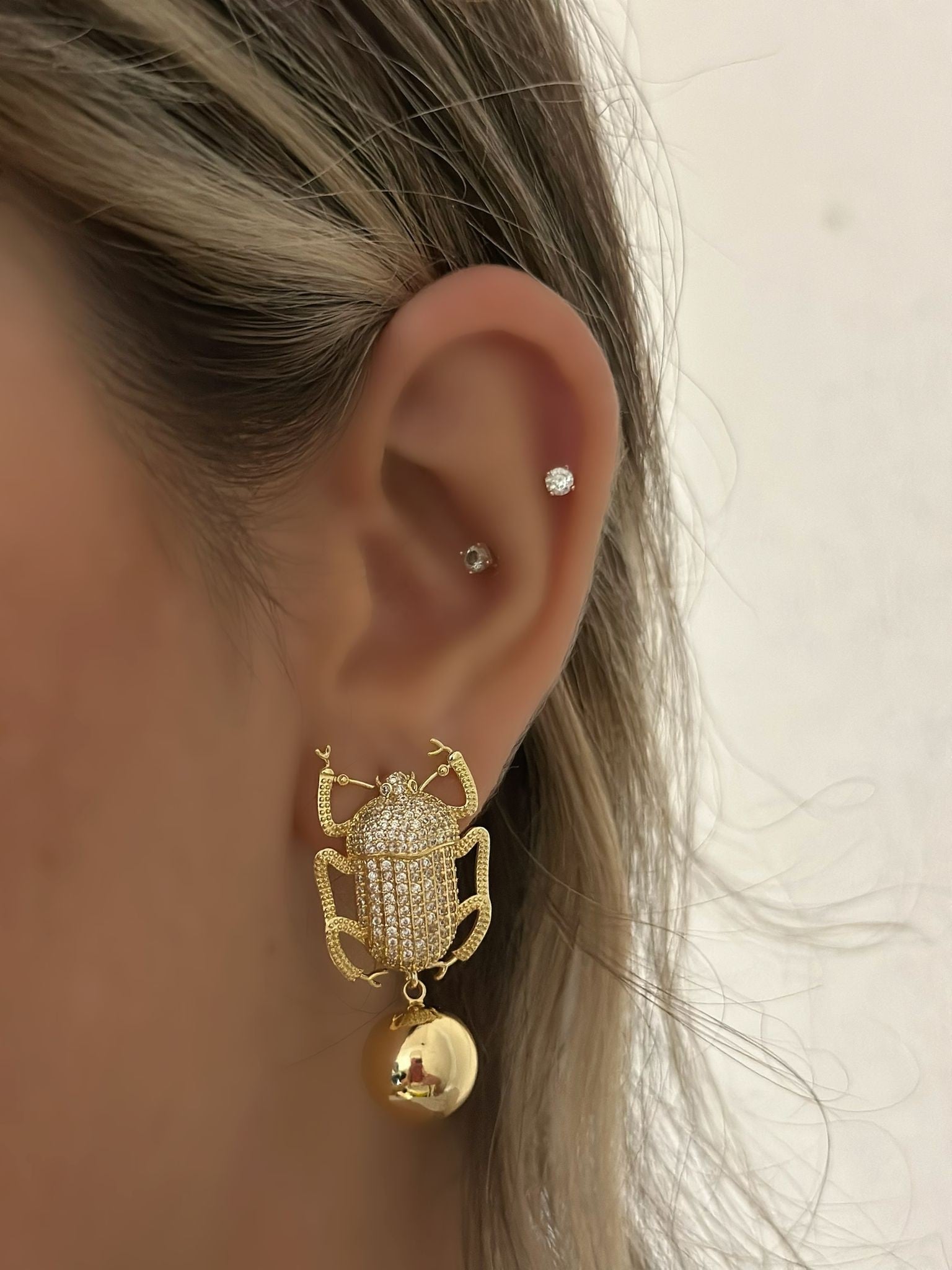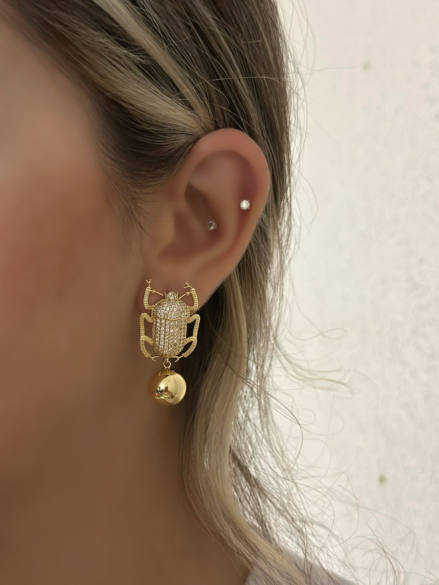 Topçuk Detay Sallantılı Örümcek Küpe (Çelik)