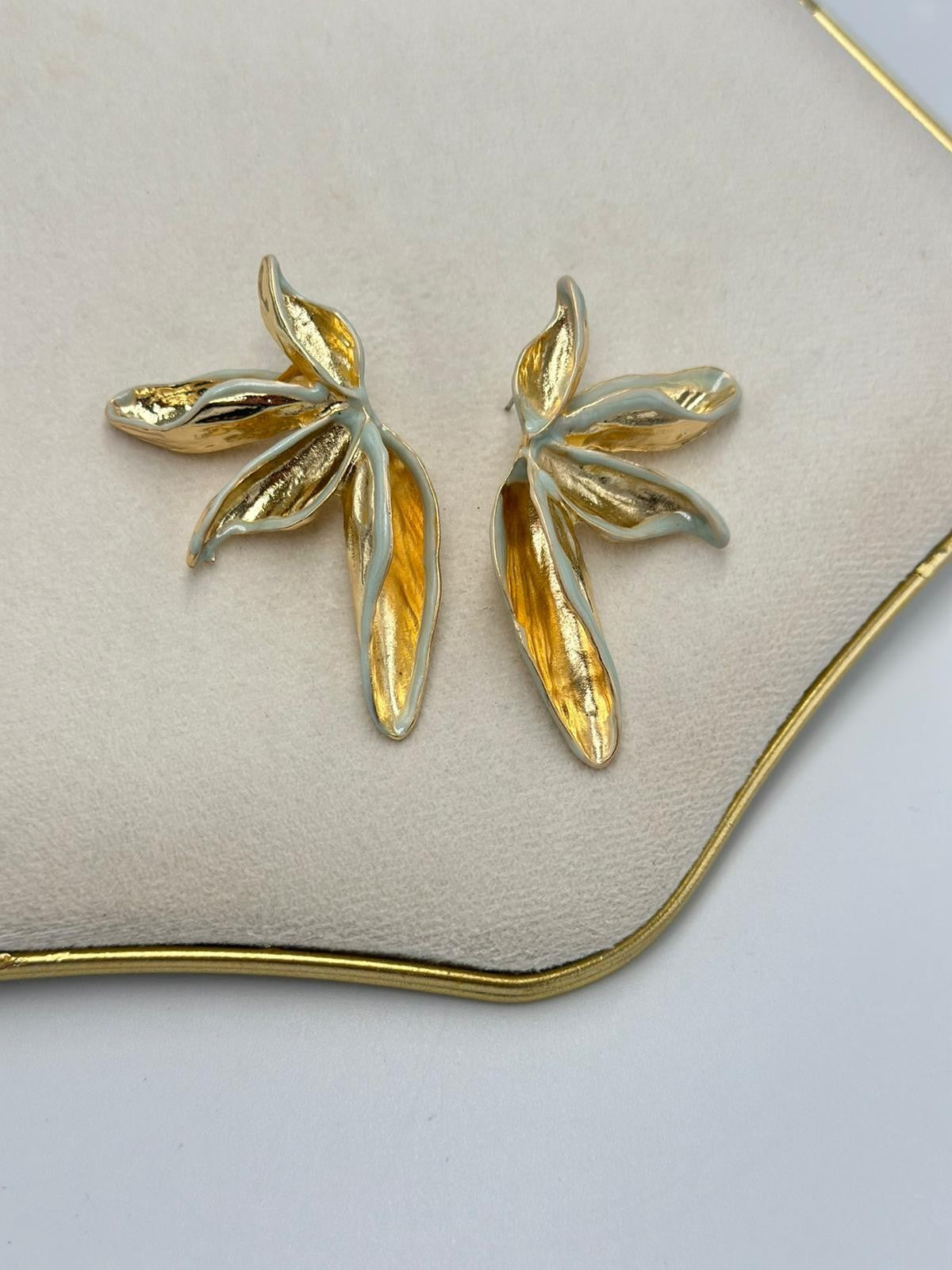 Yeşil Mineli Detay Premium Yaprak Küpe