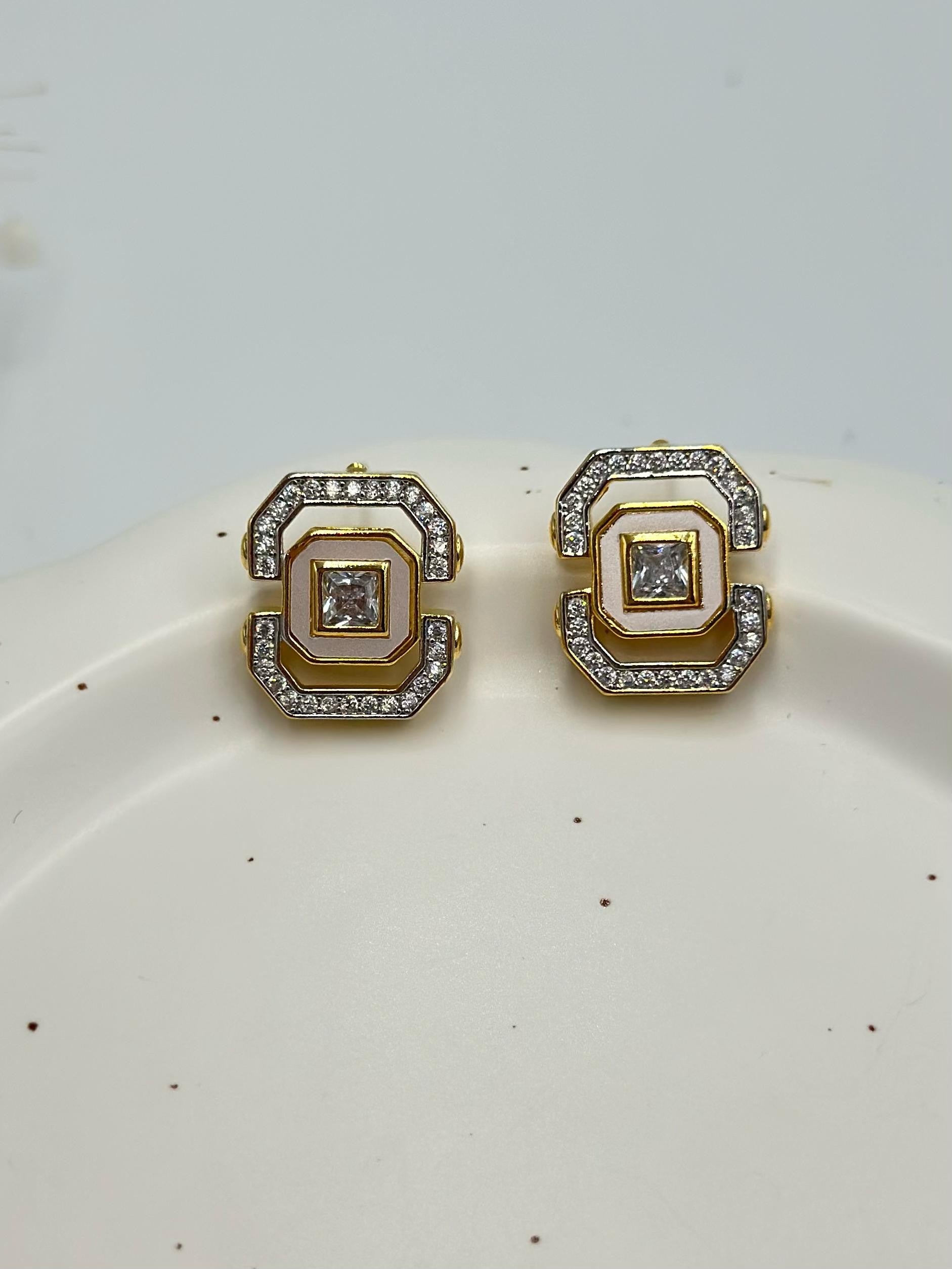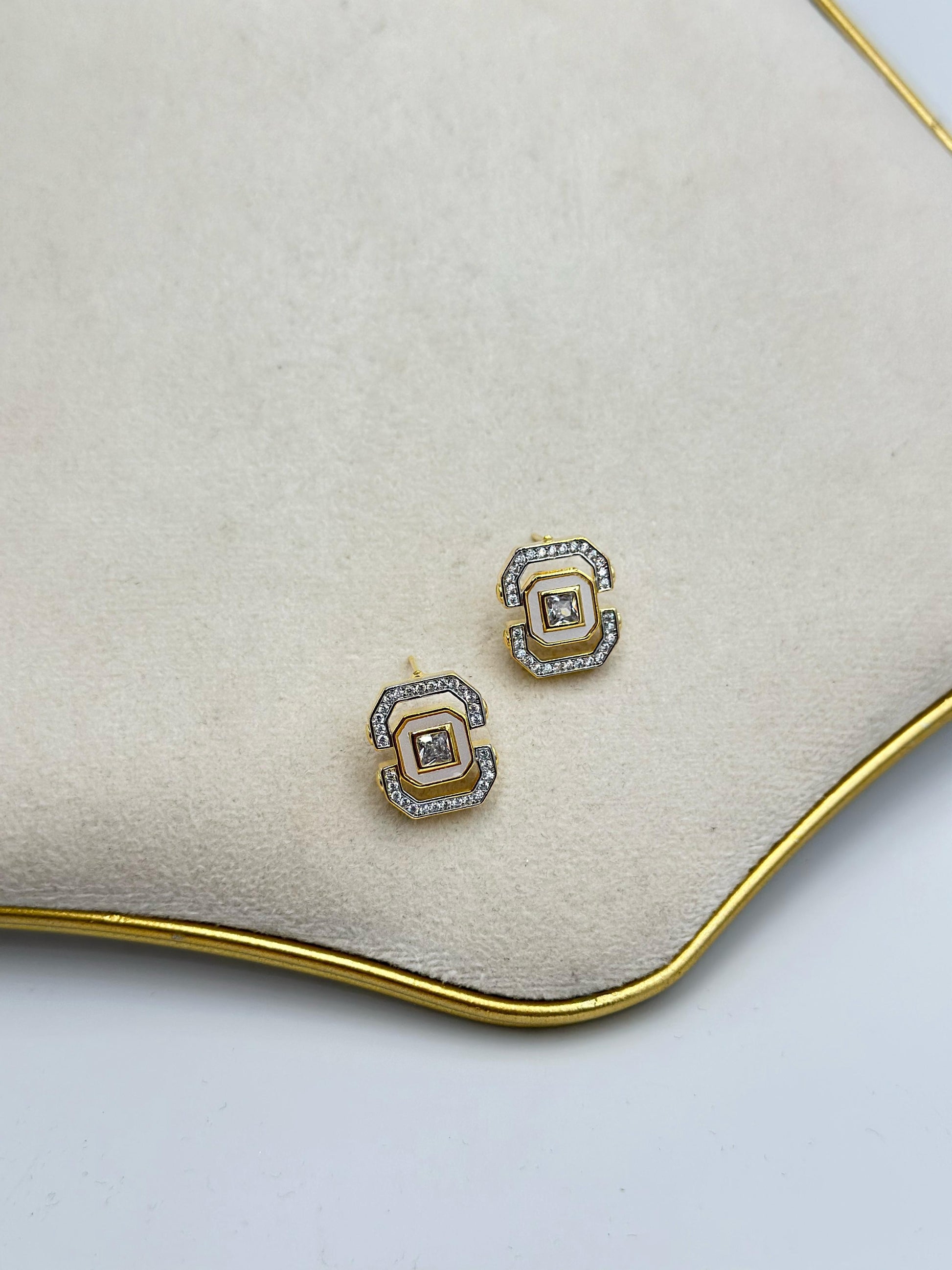 Zirkon Taş Detay Minimal Kare Kesim Çelik Küpe