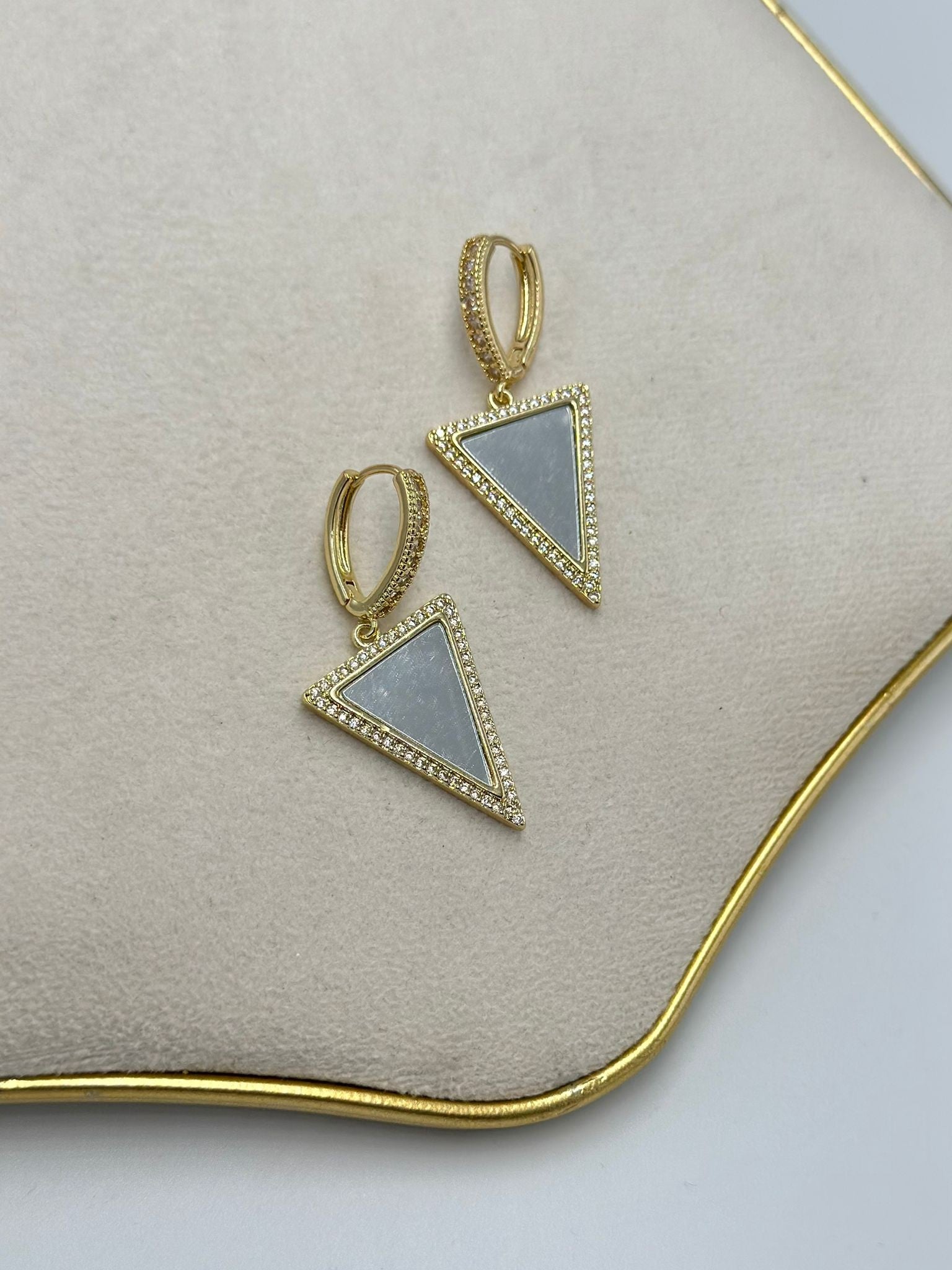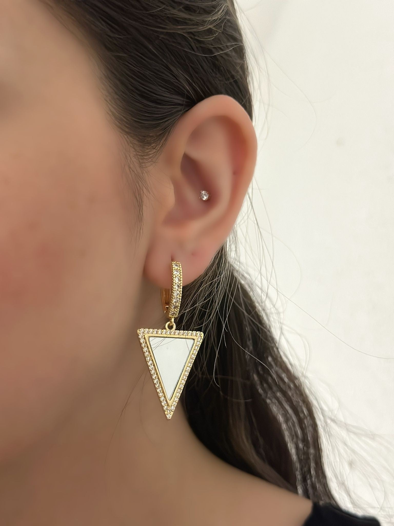 Zirkon Taş Detay Sallantılı Üçgen Küpe (Çelik)