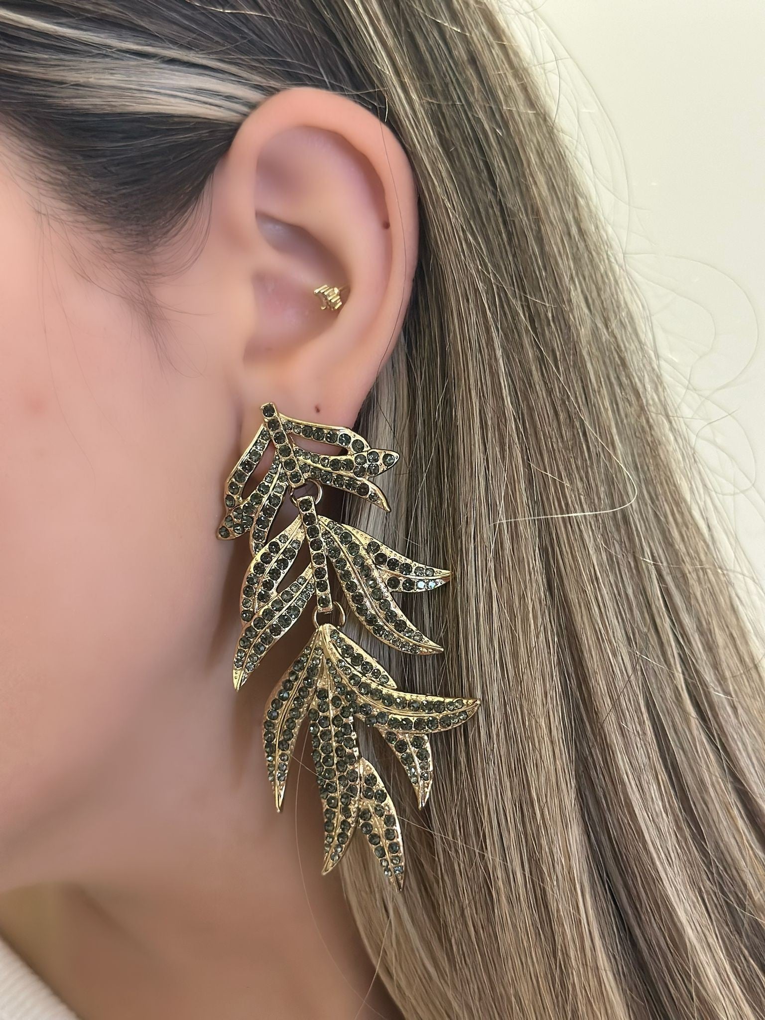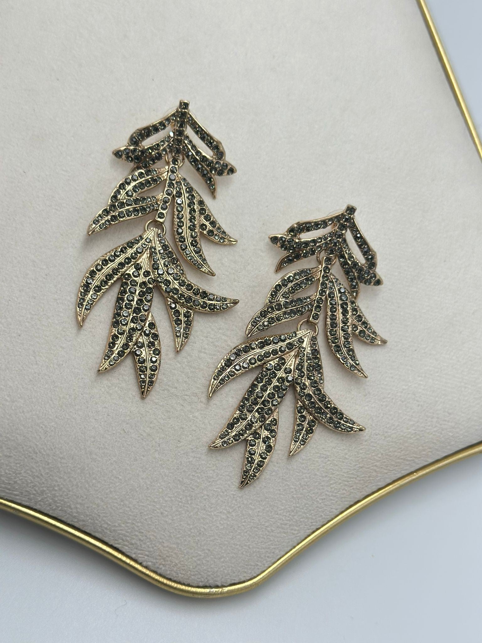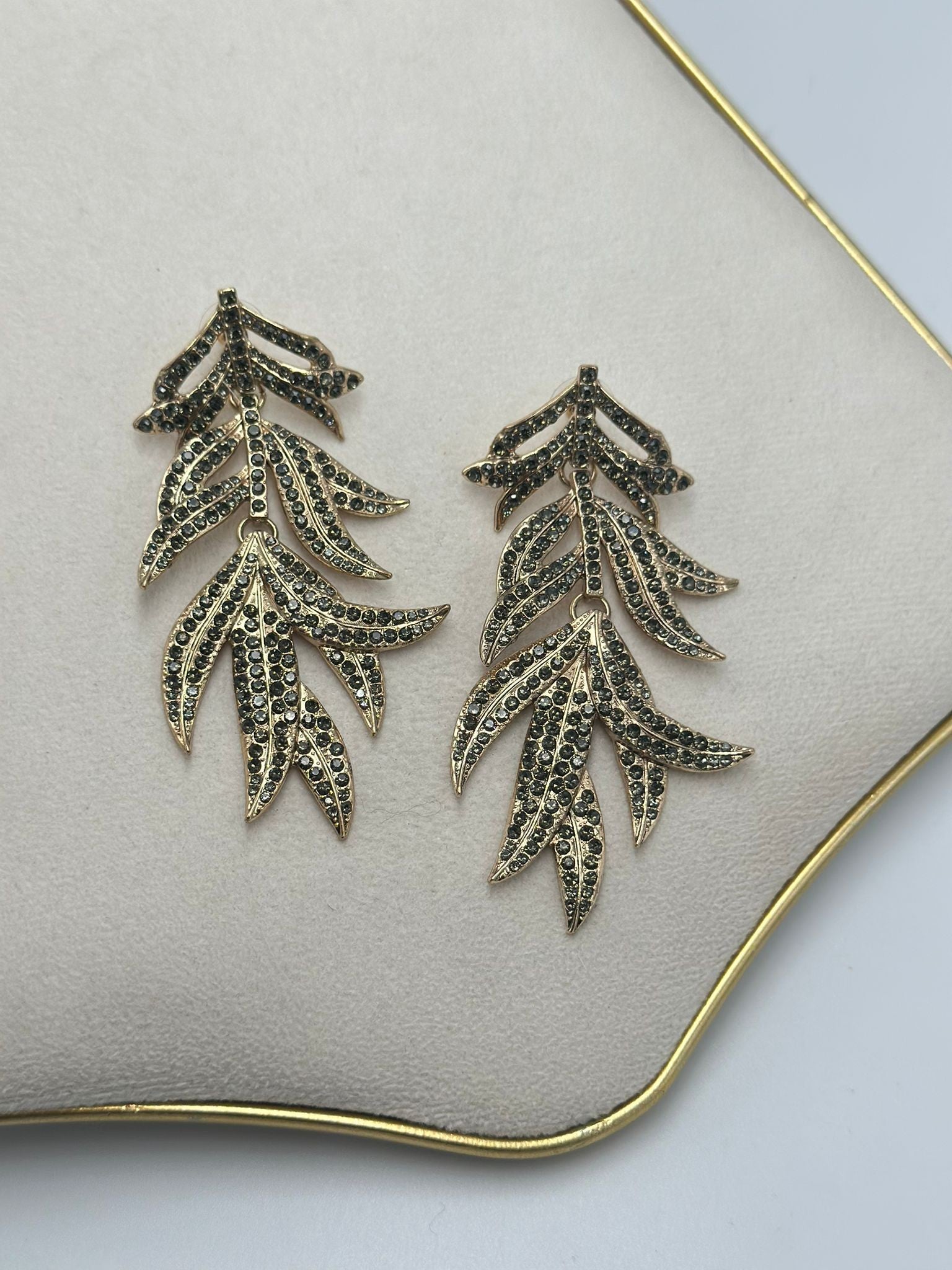 Zirkon Taş Detay Sallantılı Yaprak Küpe (Premium)