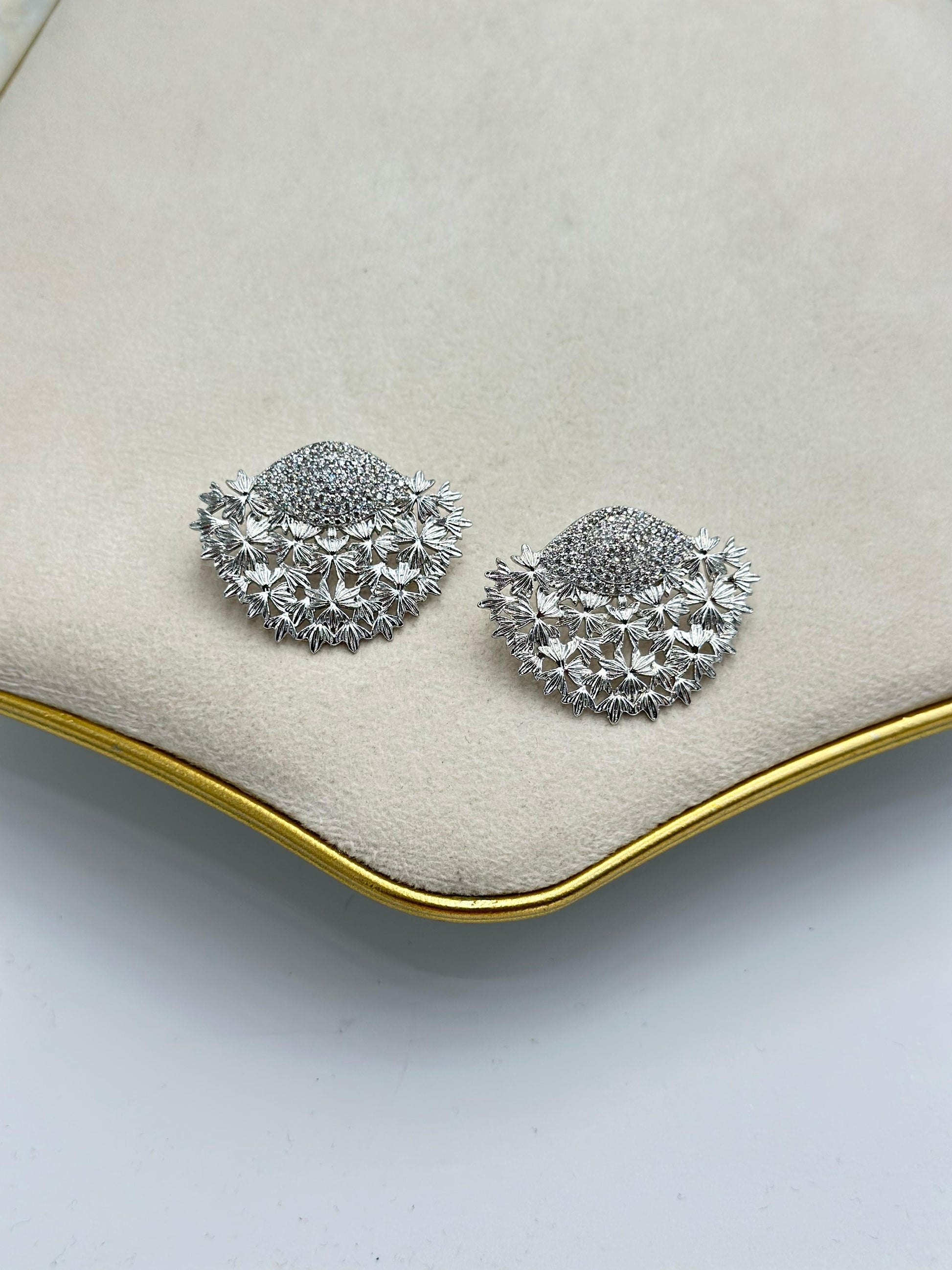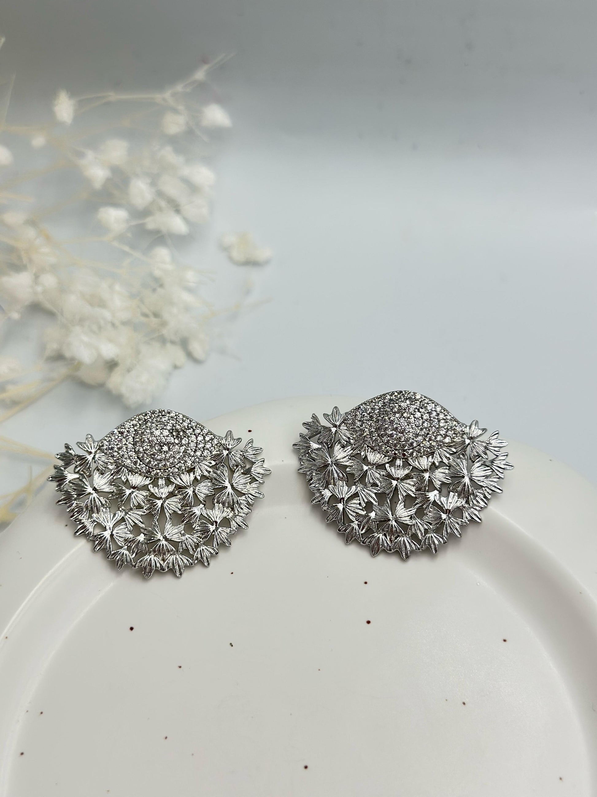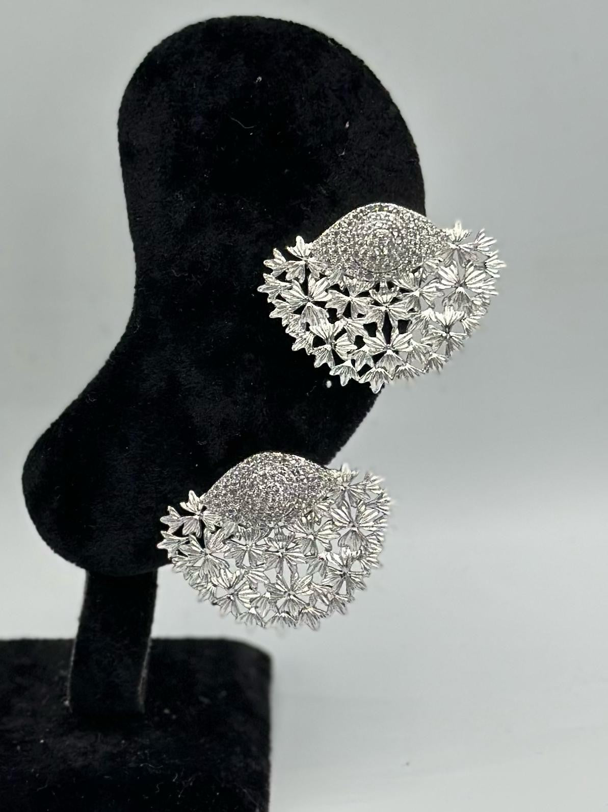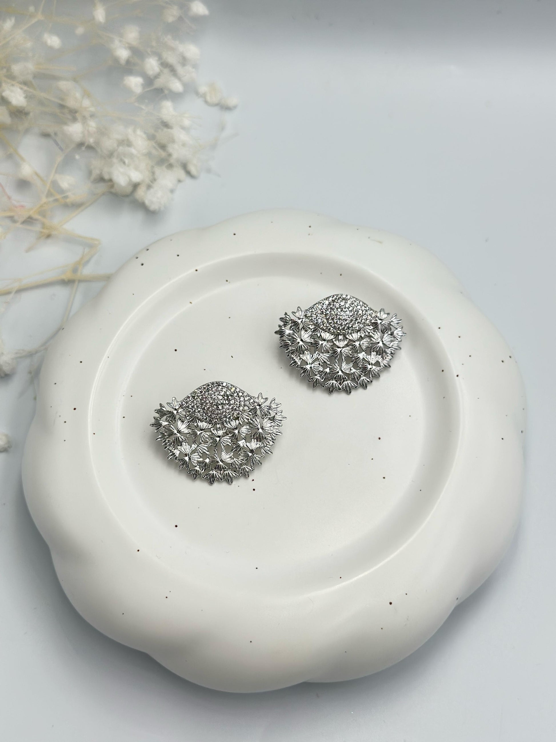 Zirkon Taş Ve Çiçek Detaylı Göz Küpe (Çelik)