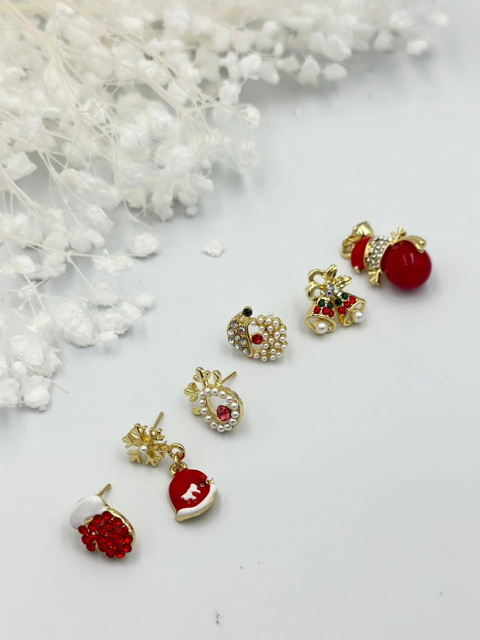 Yılbaşı Ve İnci Detaylı 6 lı Set Küpe