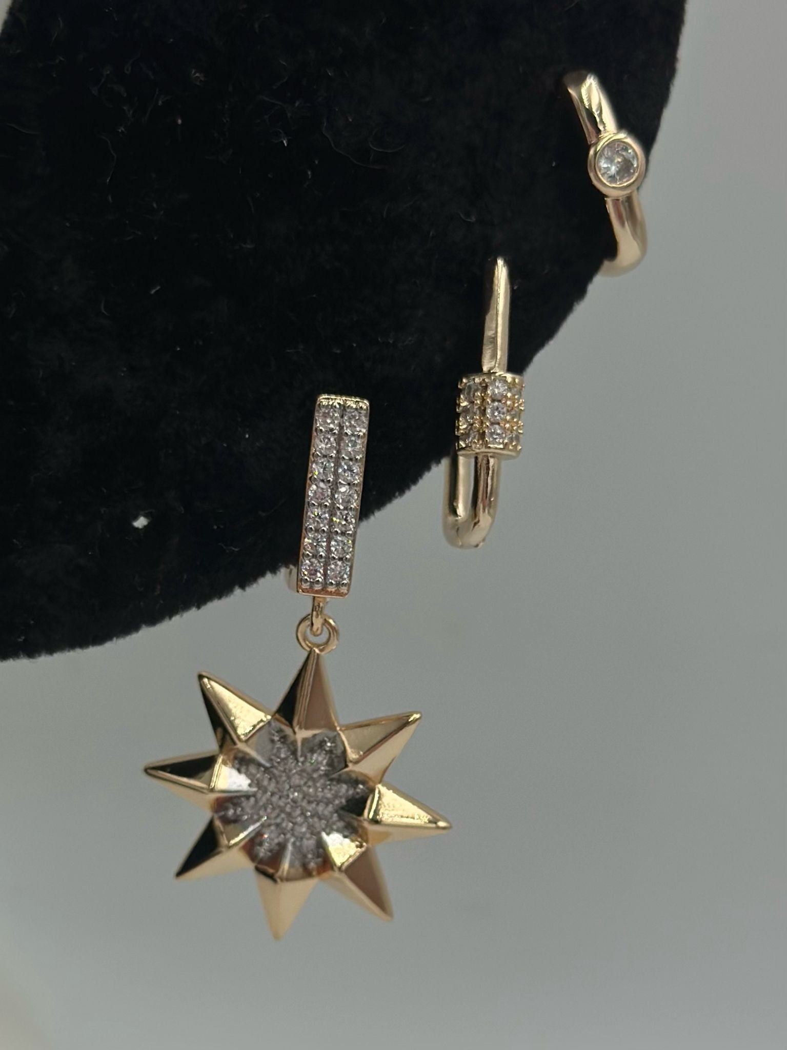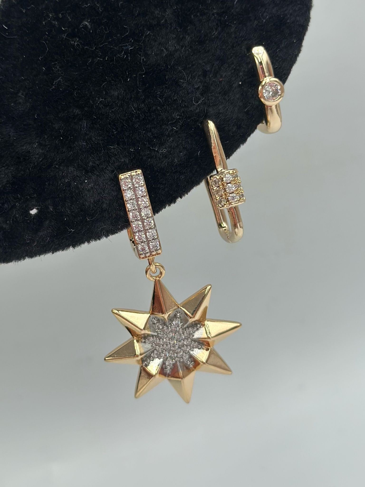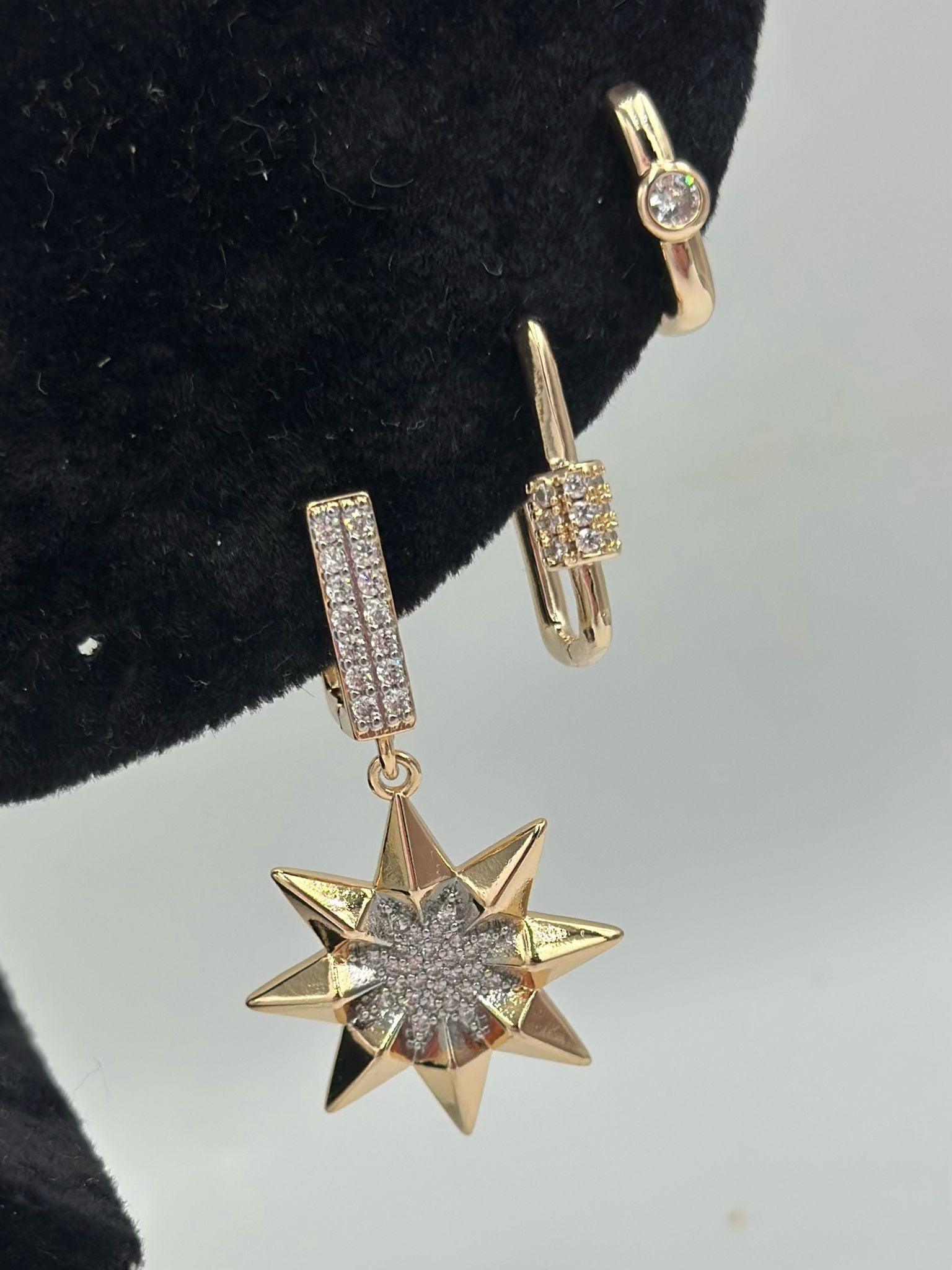 Zirkon Taş Detay Kutup Yıldızı Set Küpe