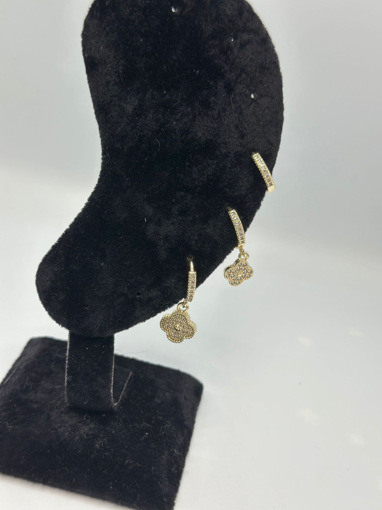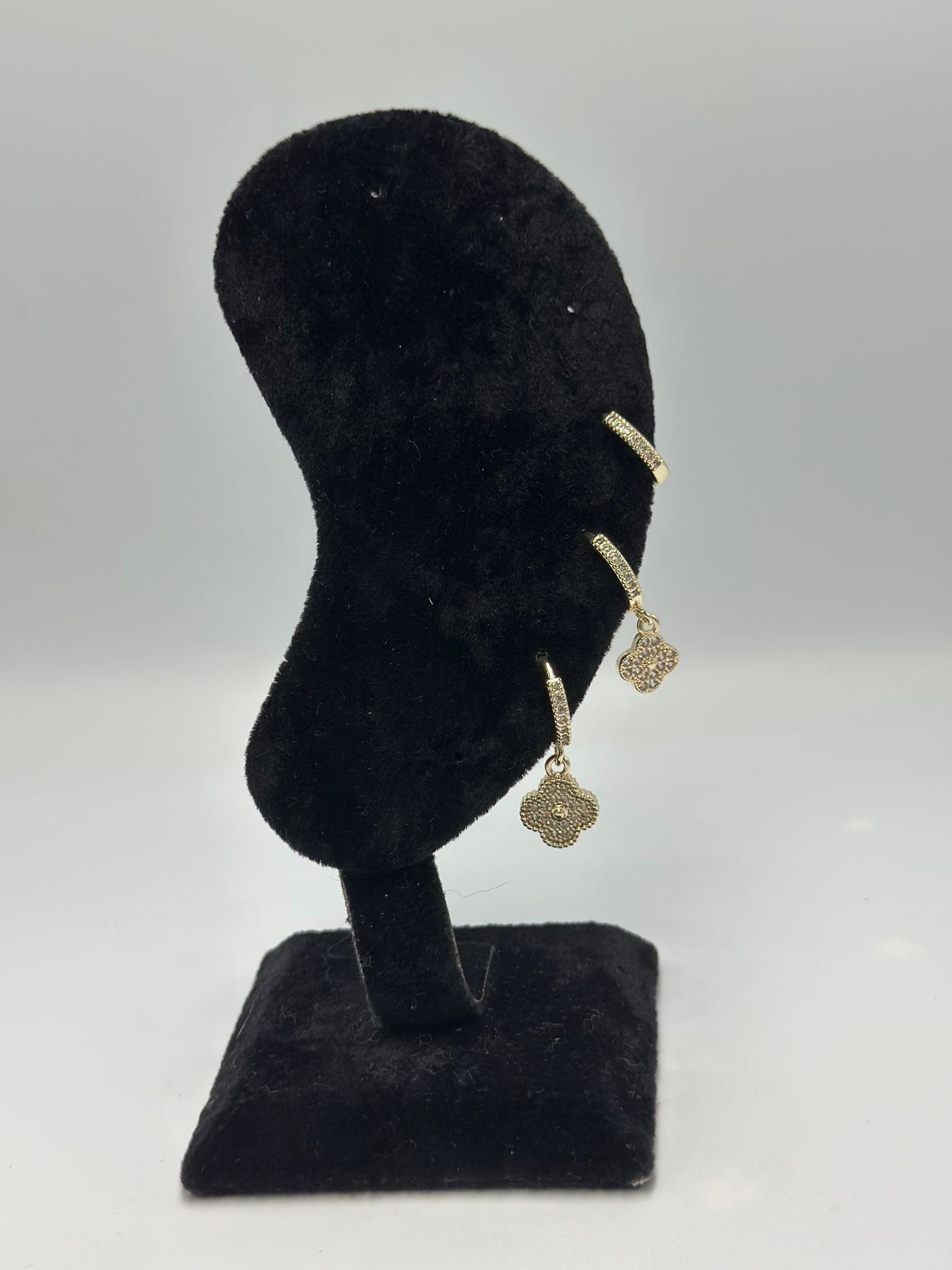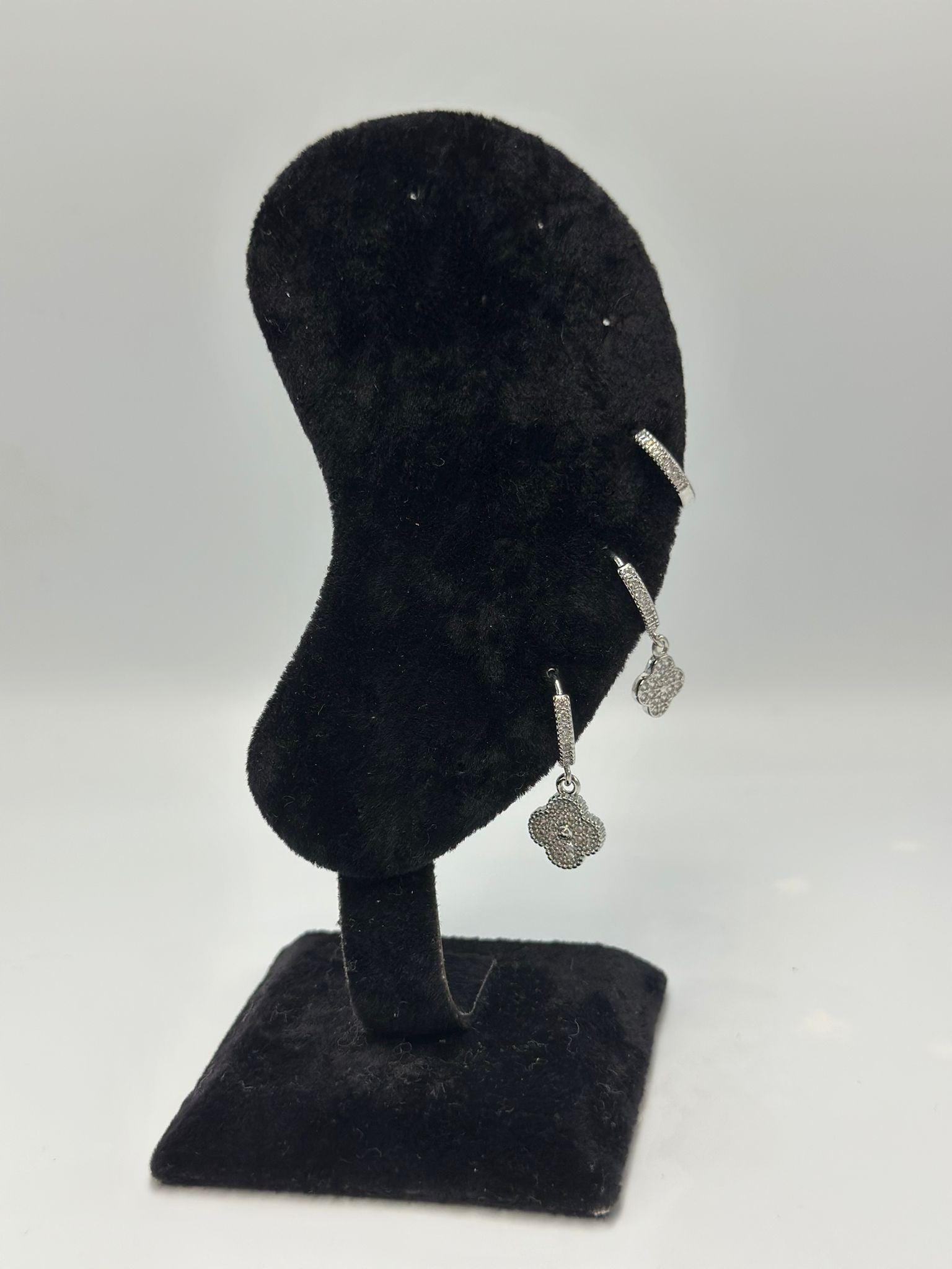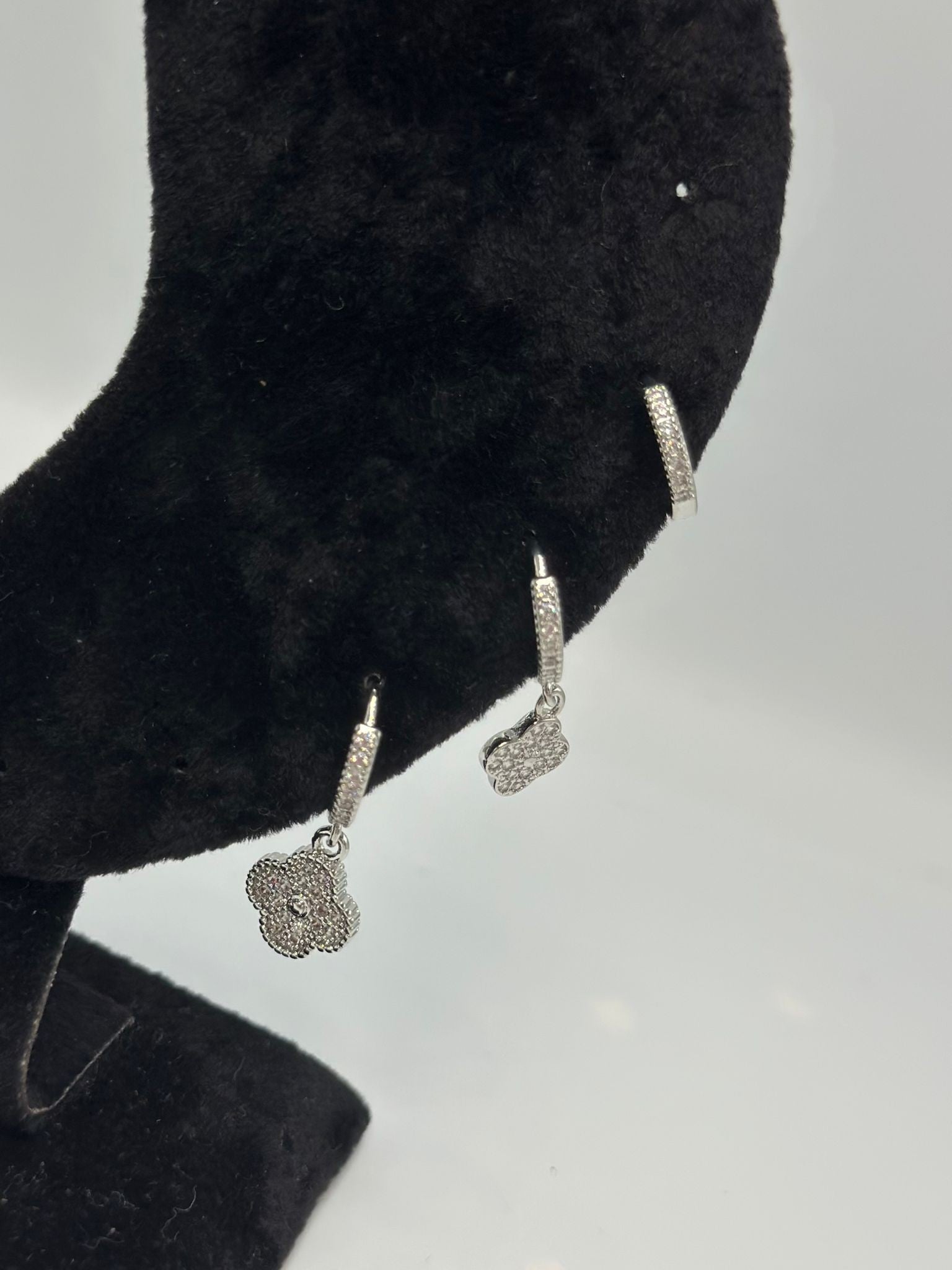 Zirkon Taş Detay Yonca Set Küpe (Çelik)