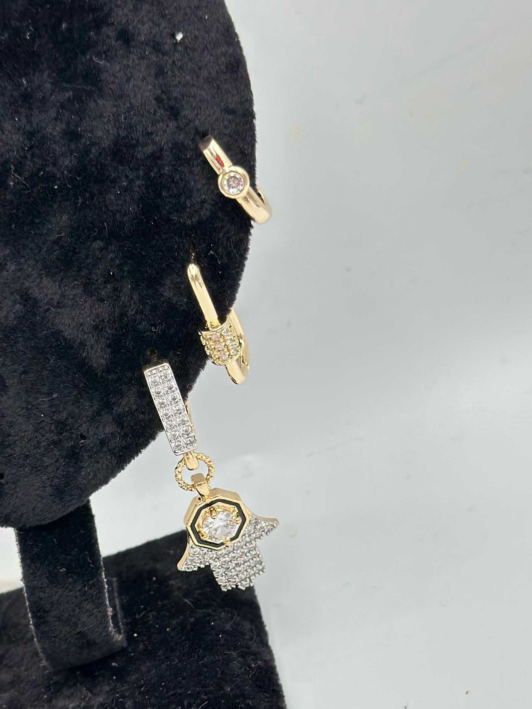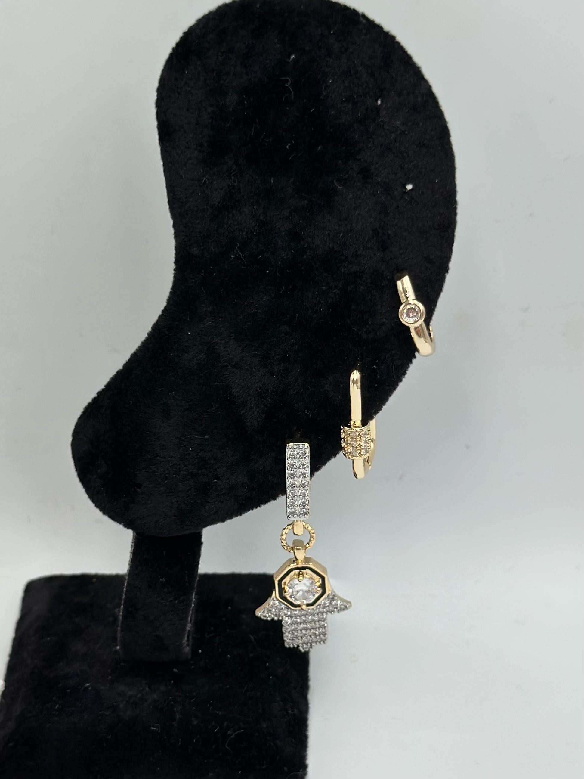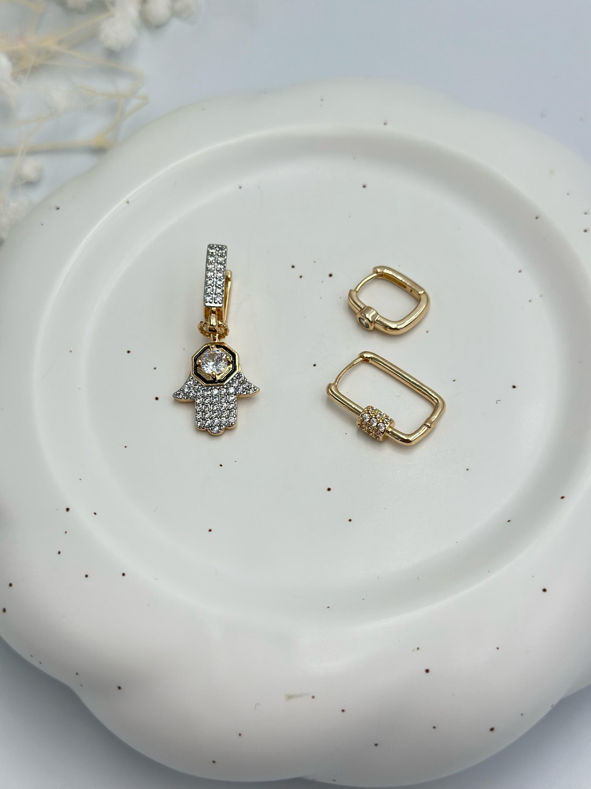 Zirkon Taş Detaylı Fatma Ana Eli Set Küpe (Çelik)