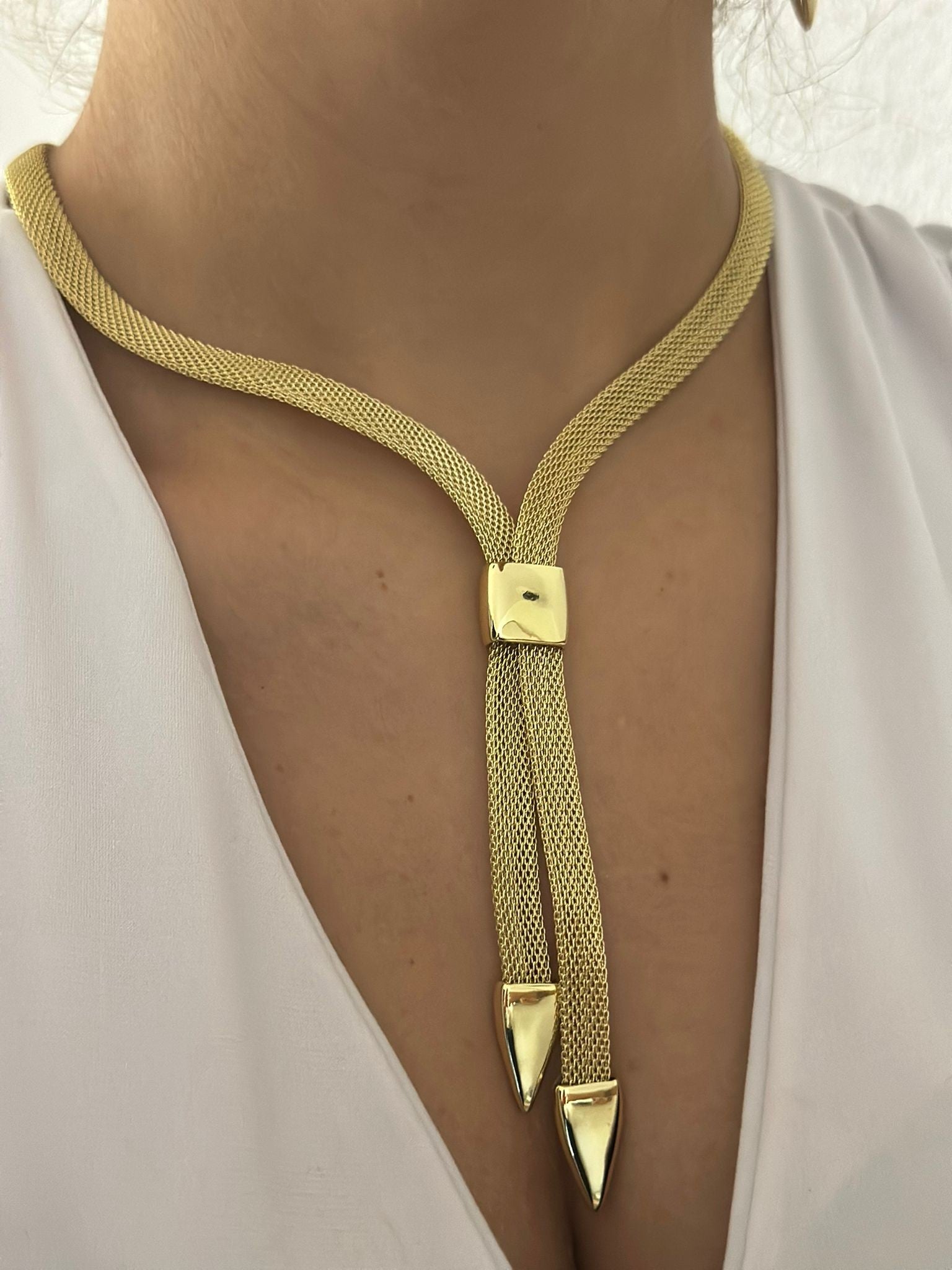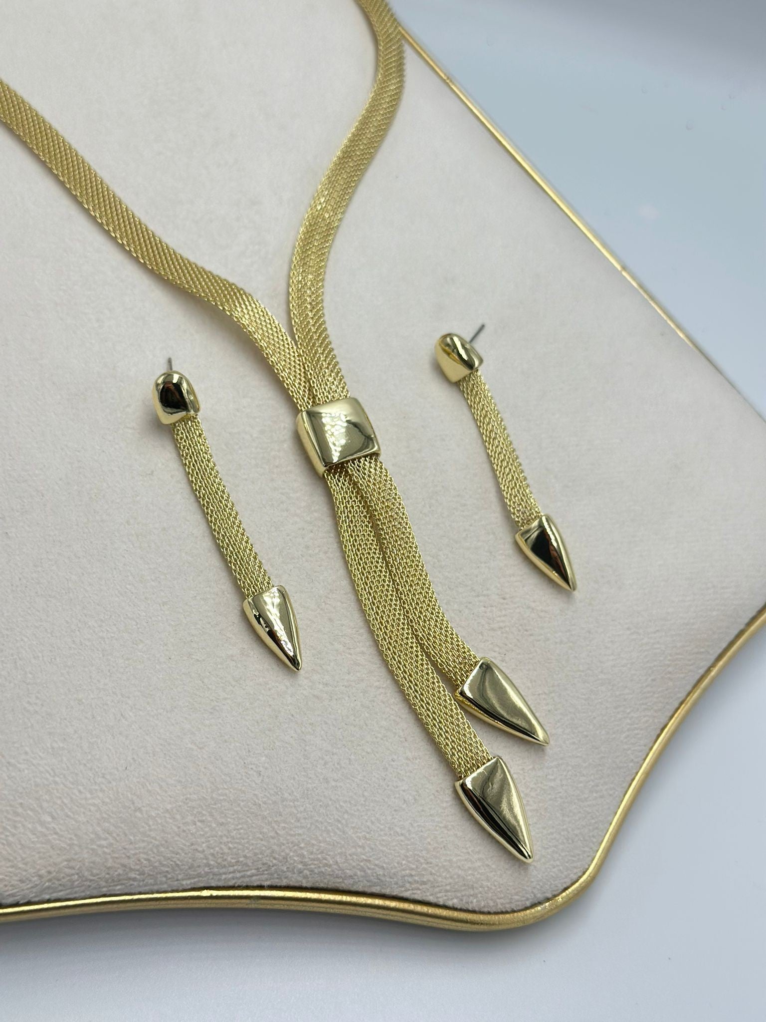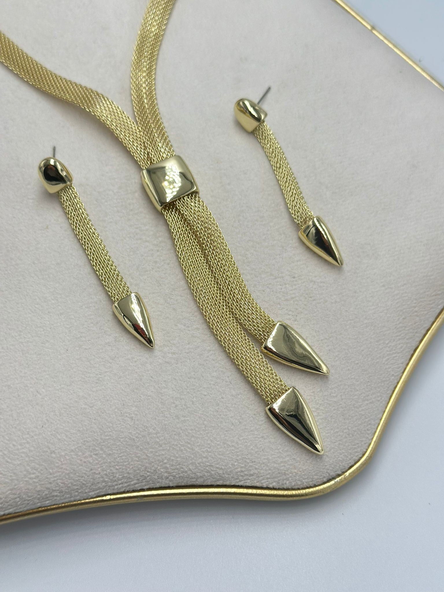 14K Altın Kaplama Hasır Küpe ve Kolye İkili Set Takı