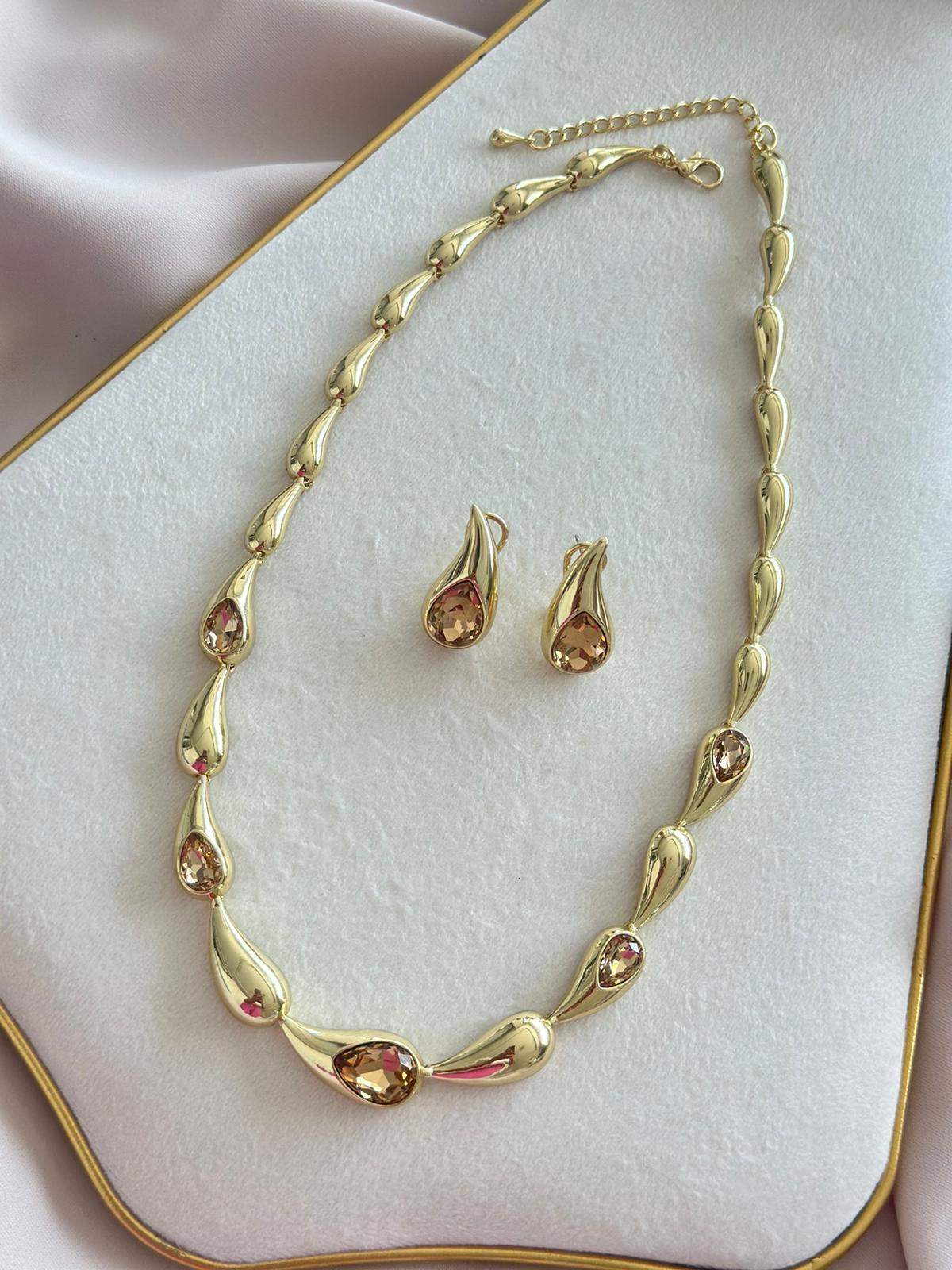 14K Altın Kaplama Sıralı Damla Detay Set Takı