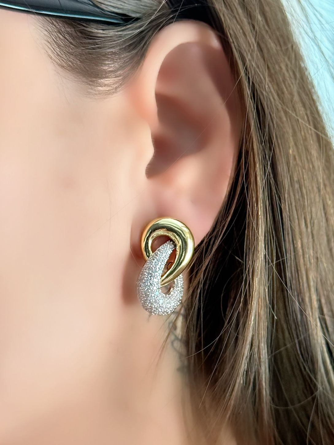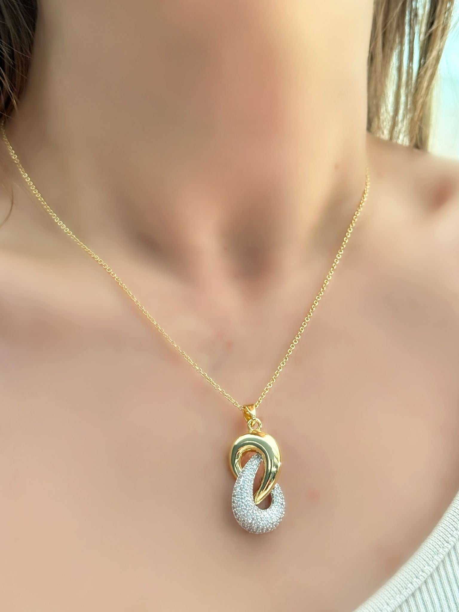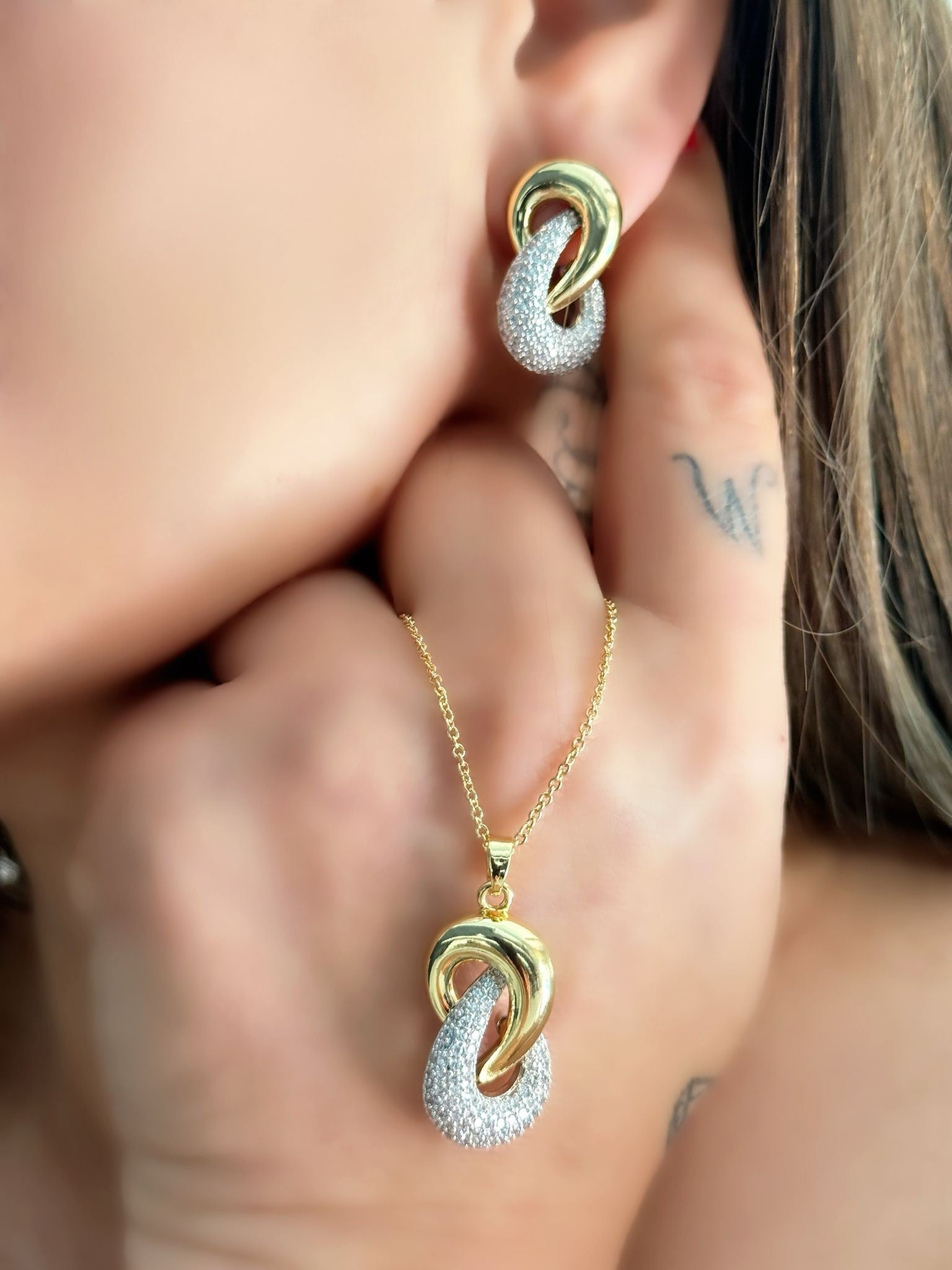 İki Renk Ve İç İçe Geçme Zirkon Taş Detaylı Set Takı (Çelik)