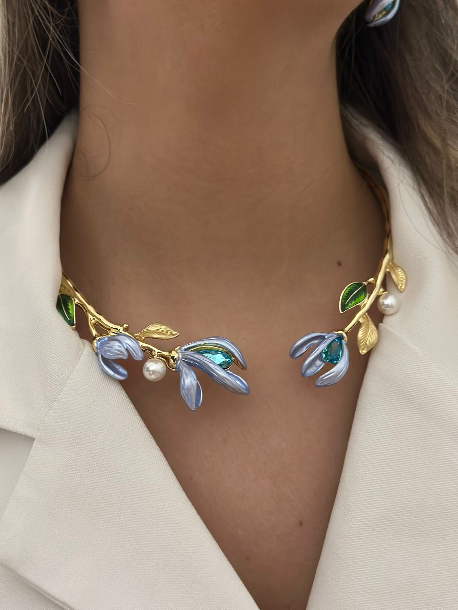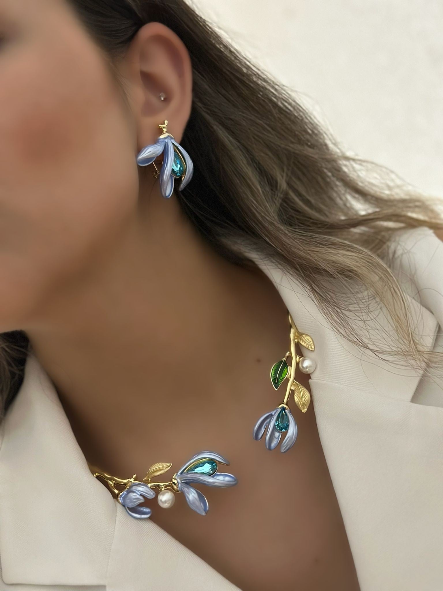 İnci Detay Mor Çiçek Set Takı (Altın Kaplama)