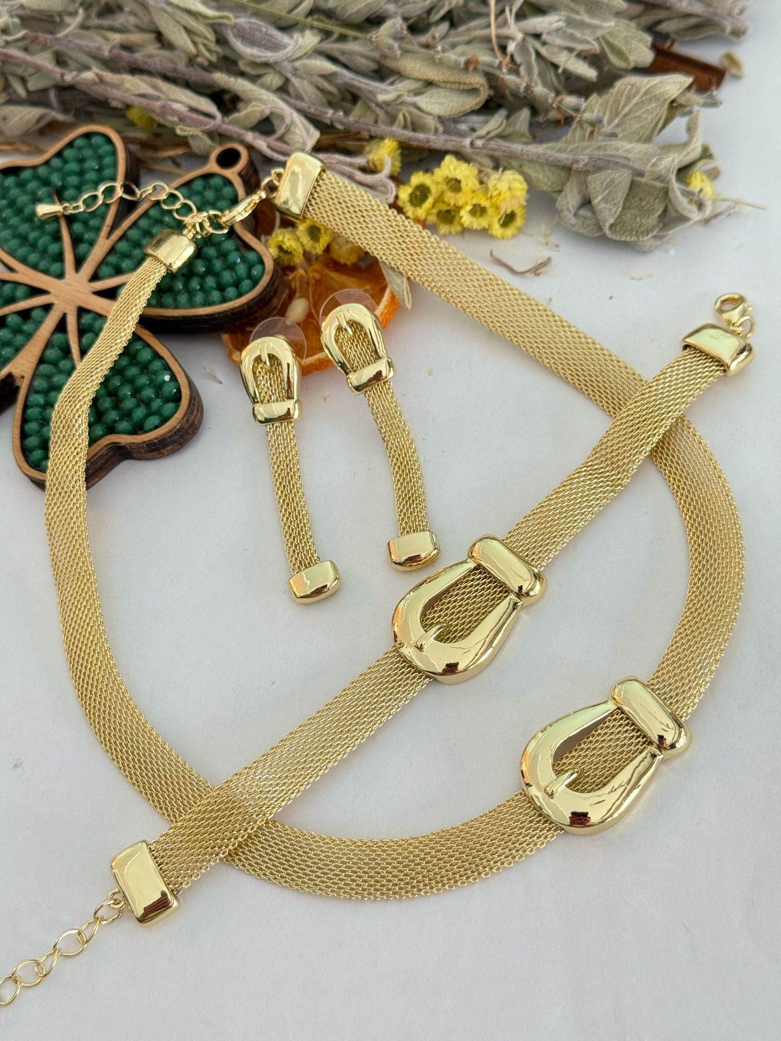 Kemer Detaylı Hasır Çelik 3'Lü Set Takı