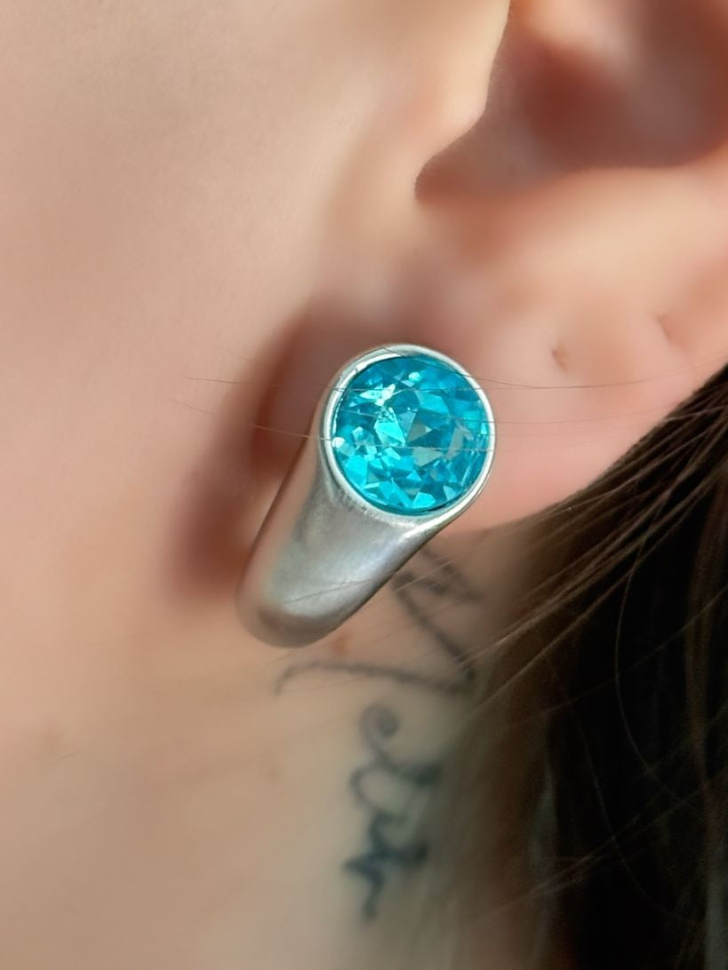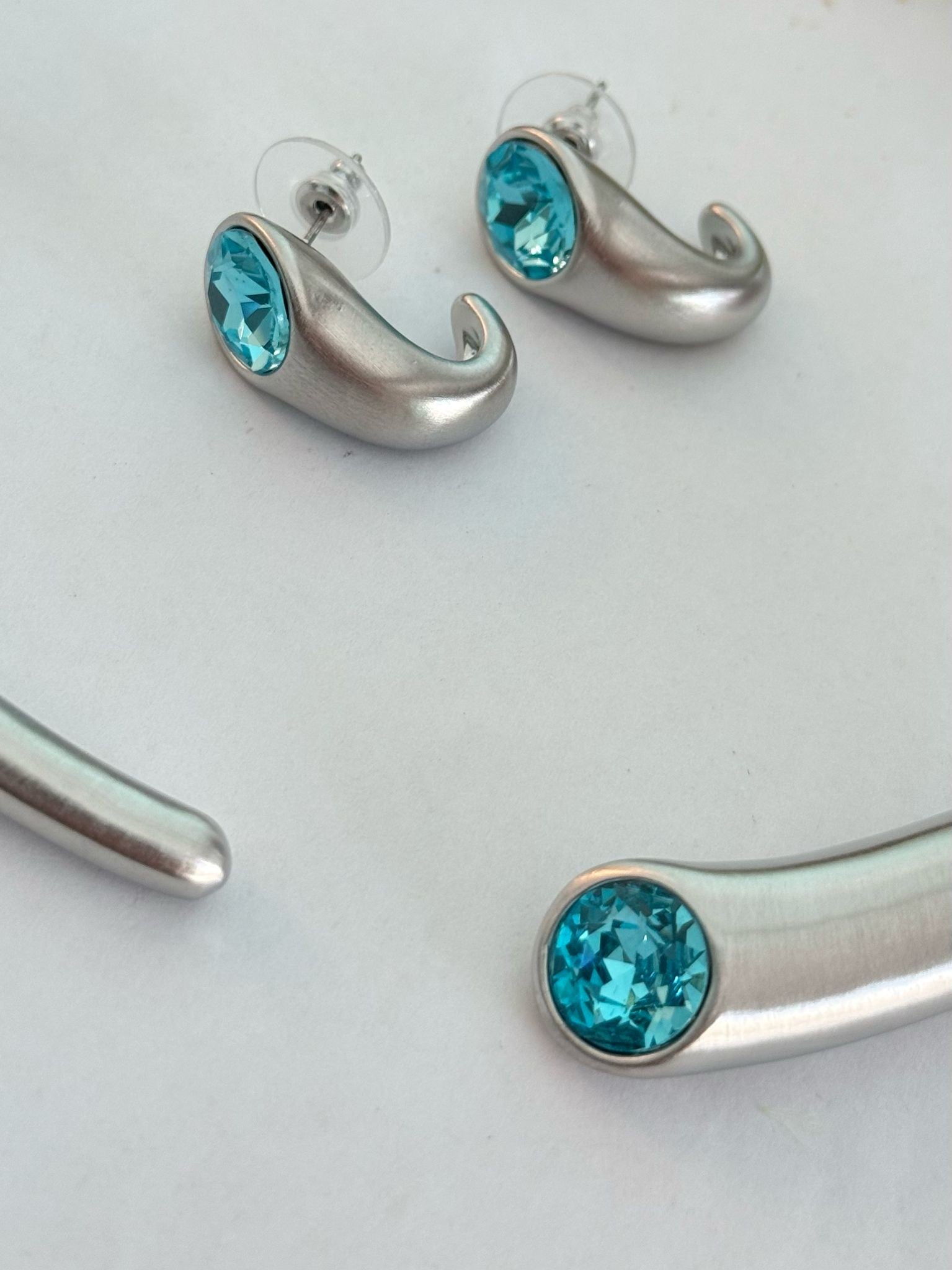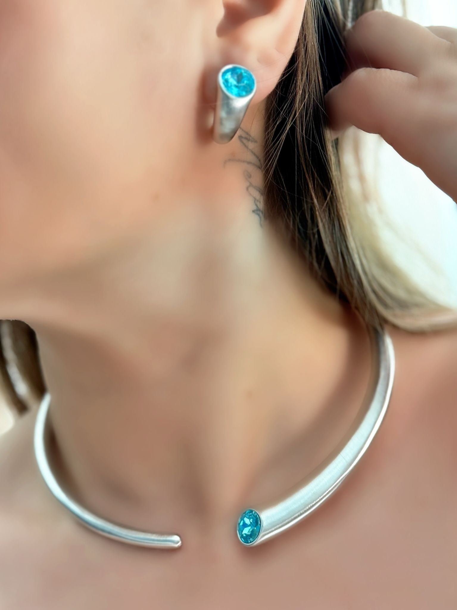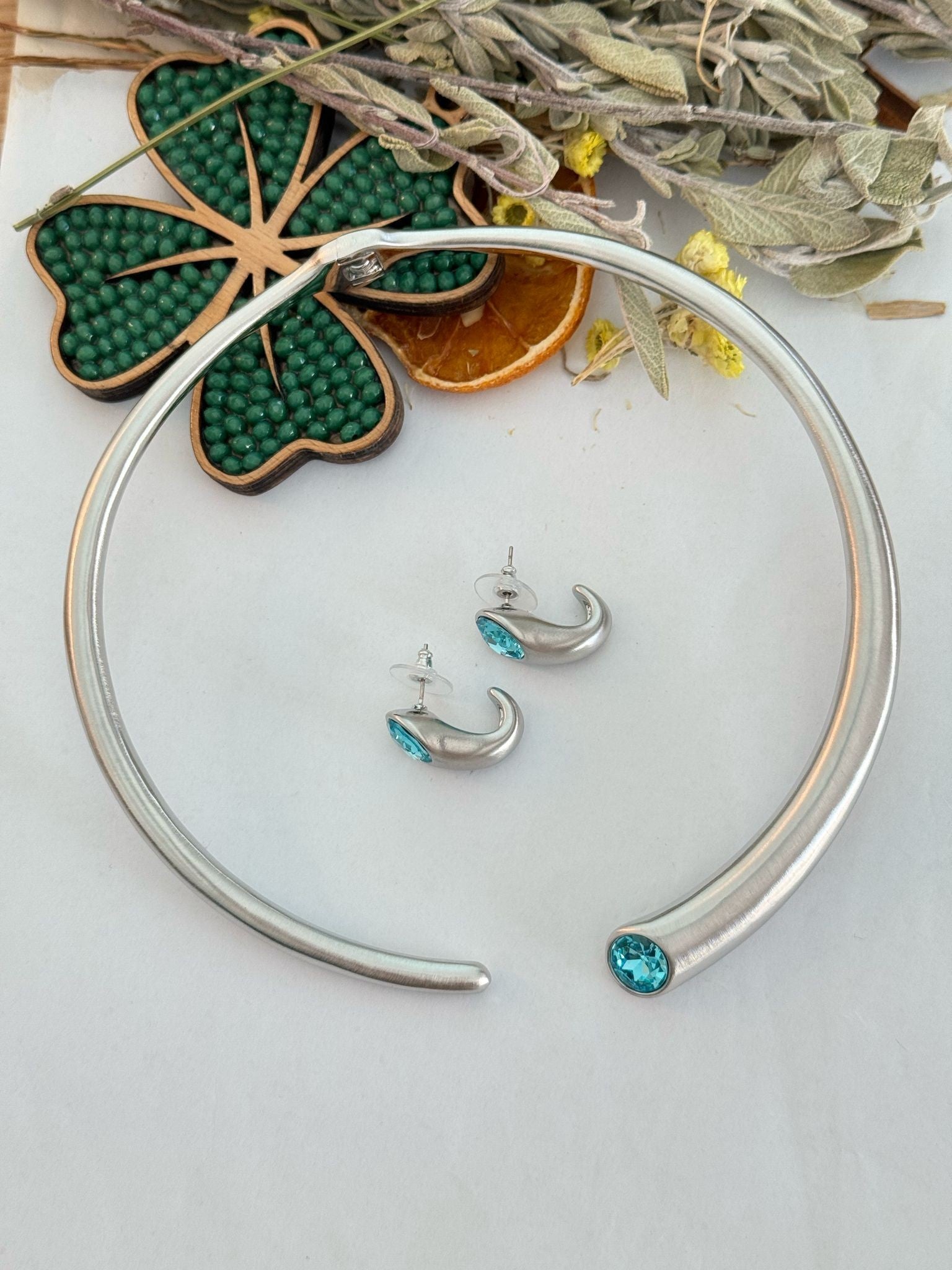 Mavi Kristal Taş Detay Gümüş Kaplama Set Takı