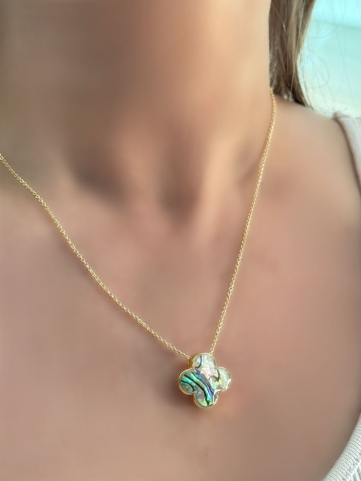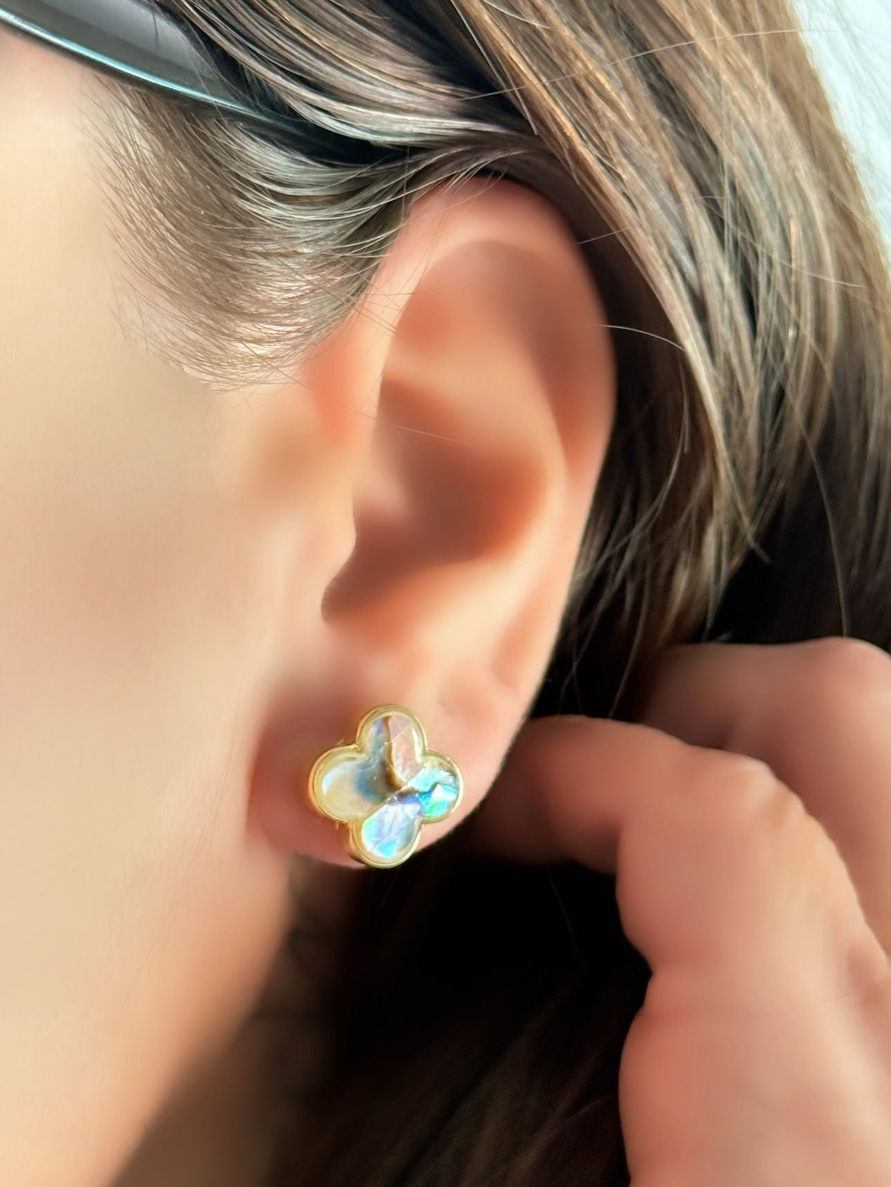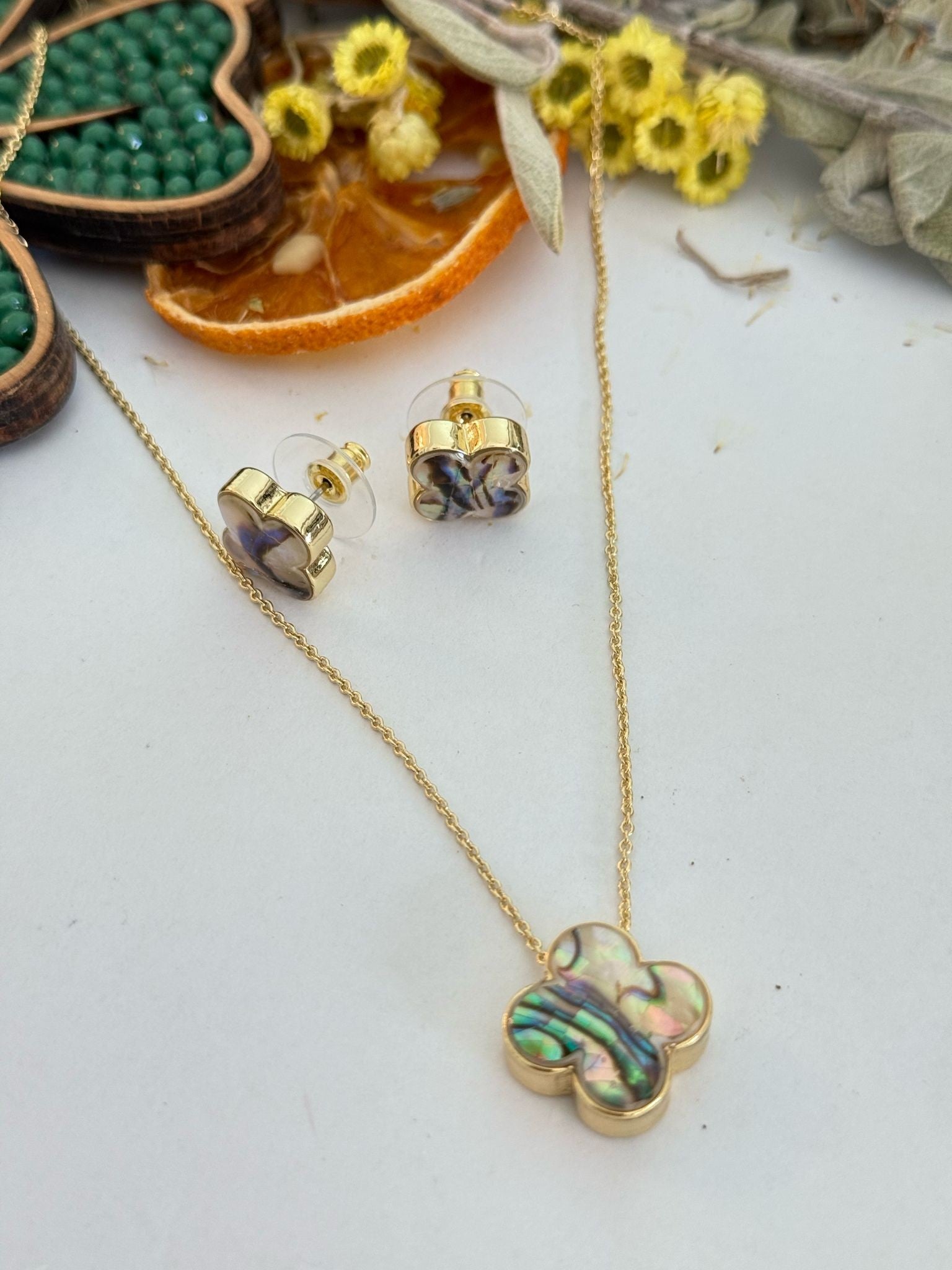 Minimal Hologram Ve Sedef Detay Yonca Set Takı (Çelik)