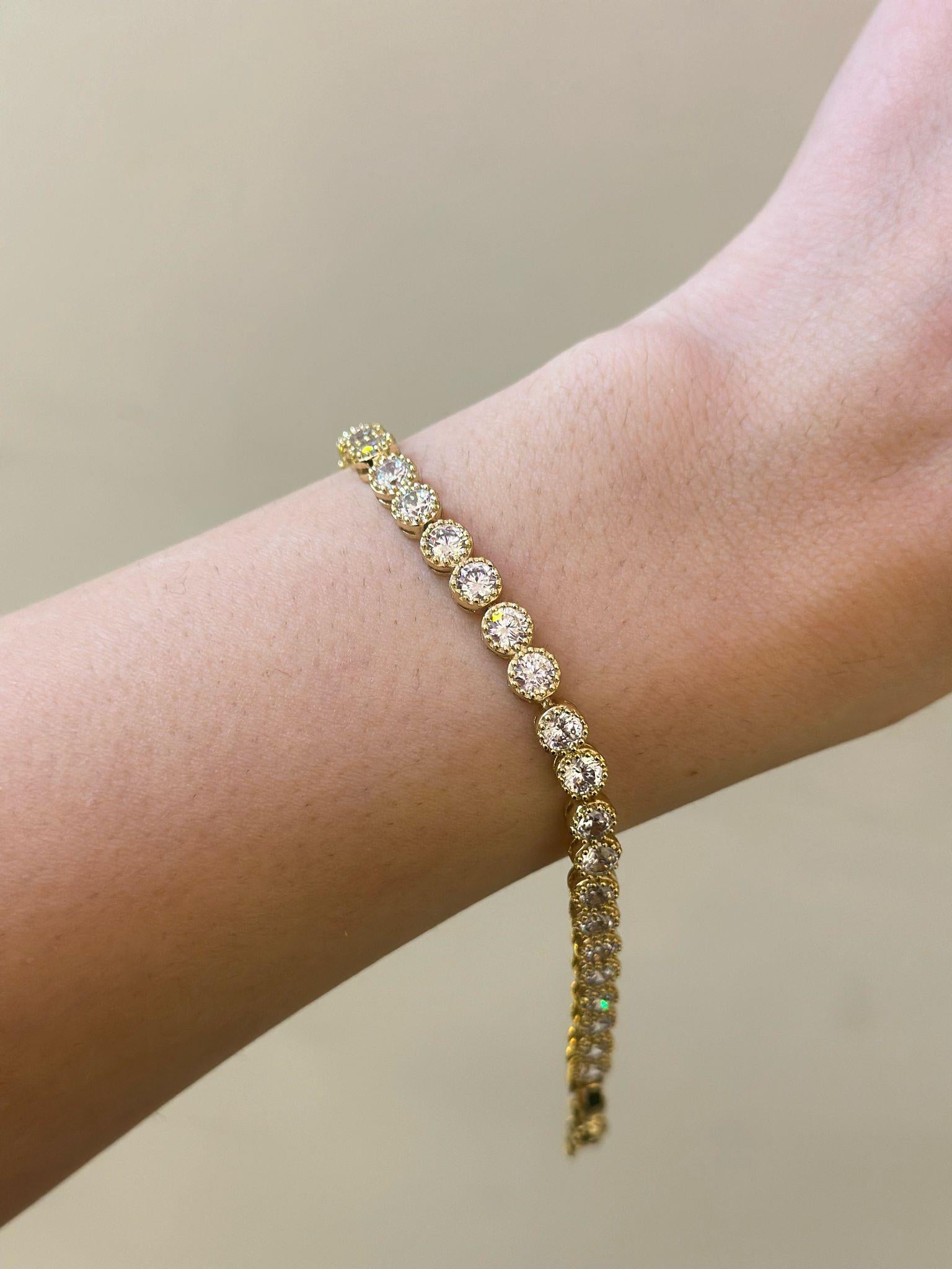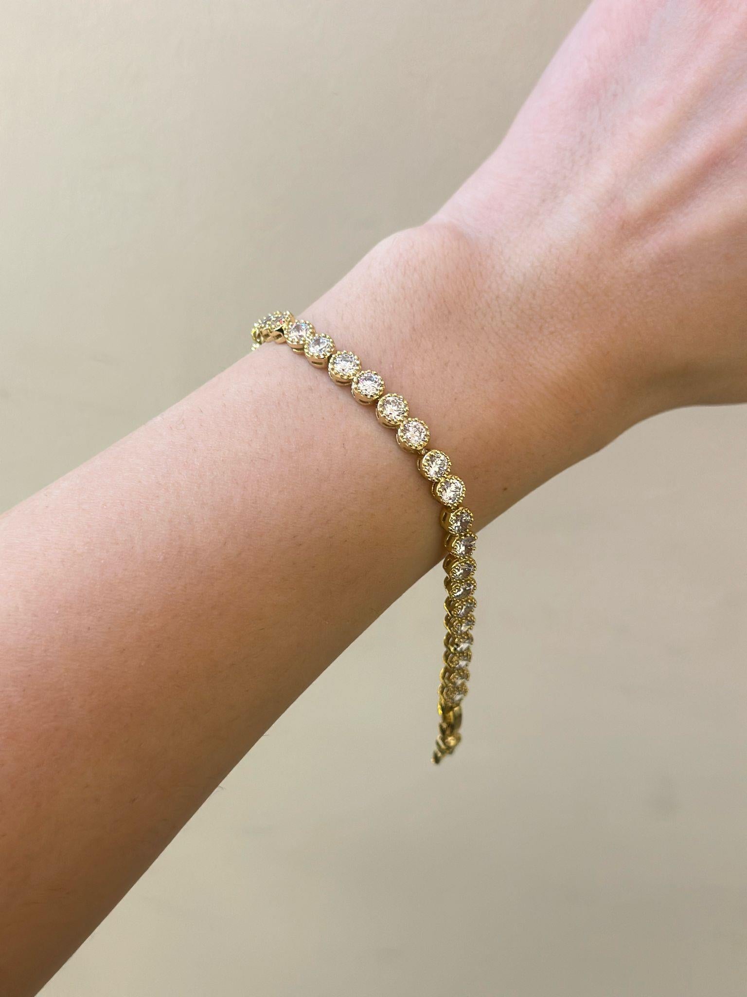 14K Altın Kaplama Sıralı Tek Taş Bileklik